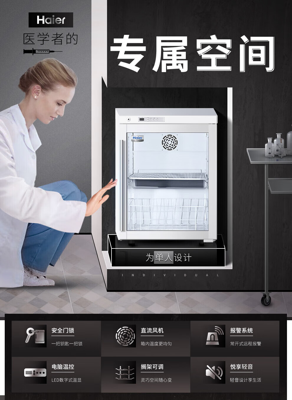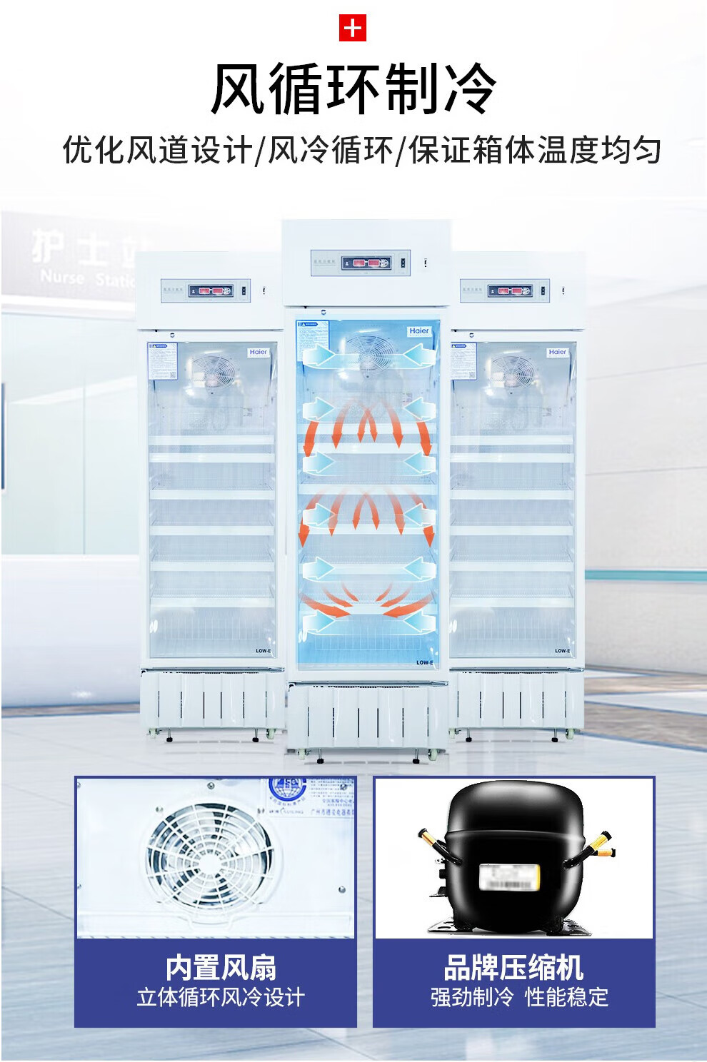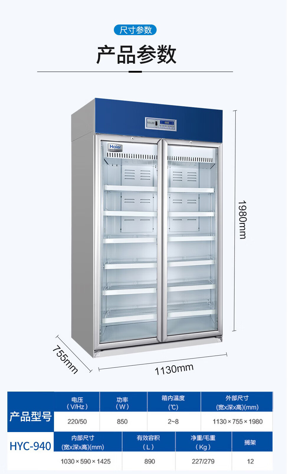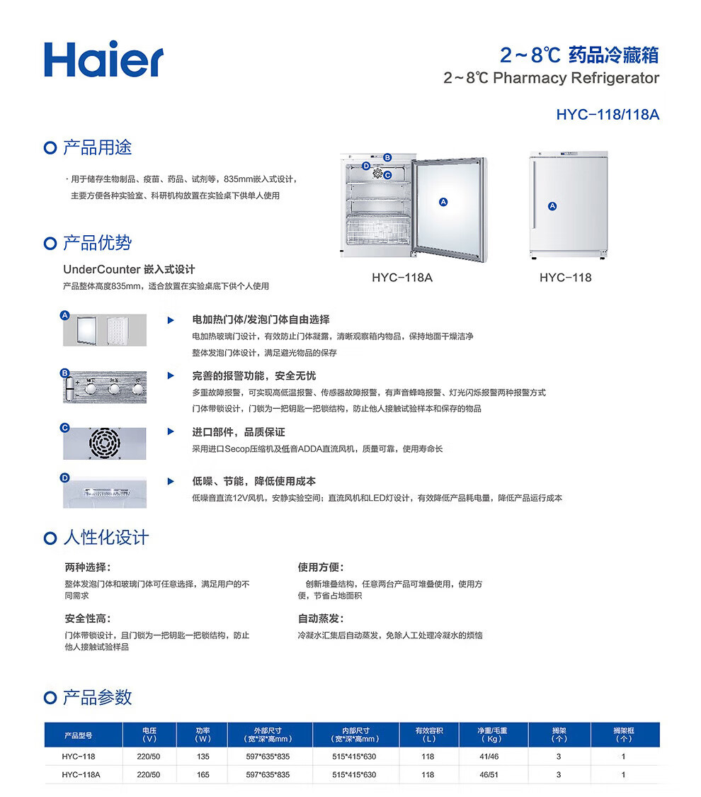 Haier medicine cool cabinet medical refrigerator medical refrigerator pharmacy pharmacy display cabinet vertical refrigerator clinic GSP certified medicine cabinet upper refrigerated lower frozen medicine storage box HYCD-471FD