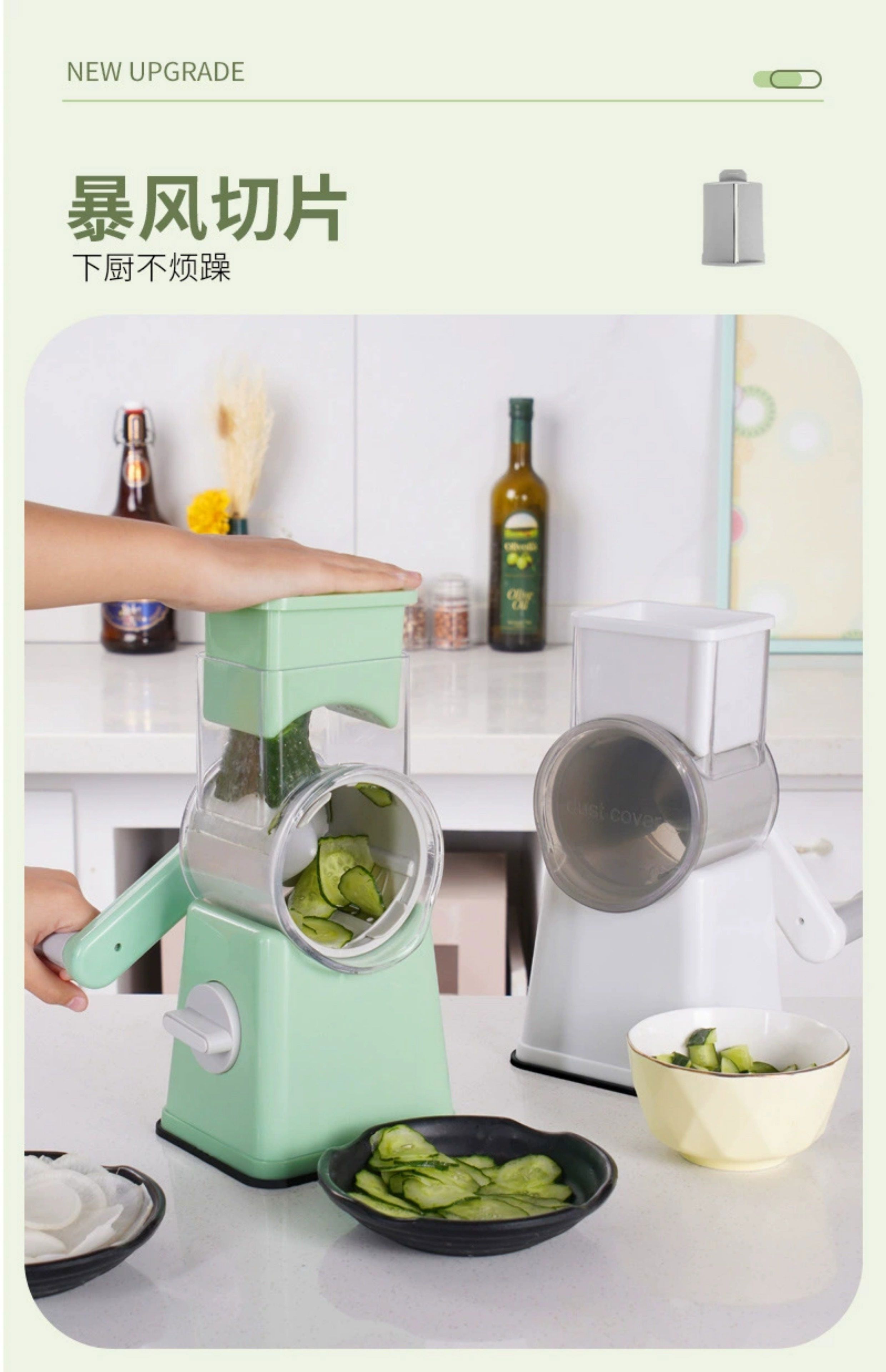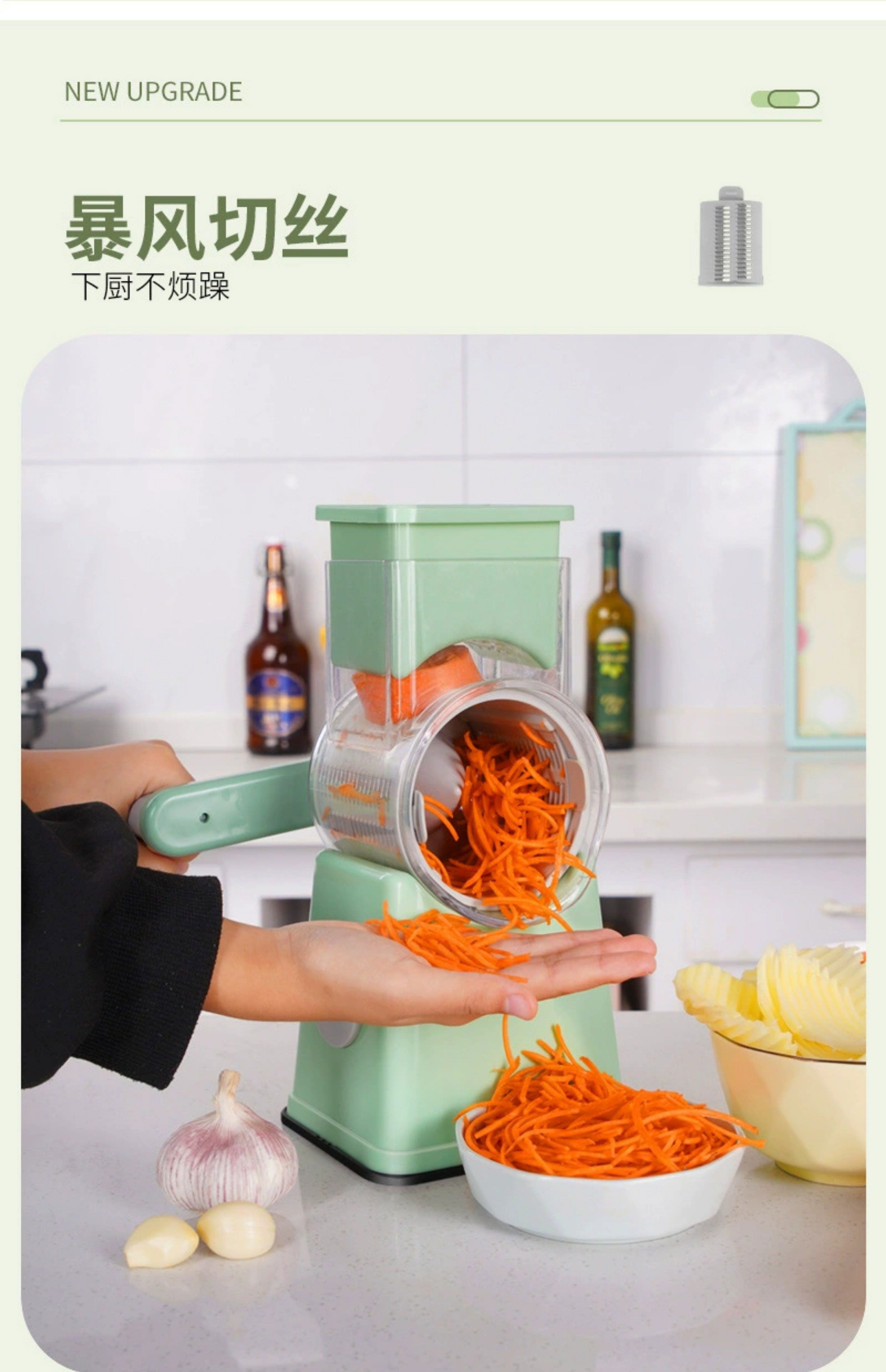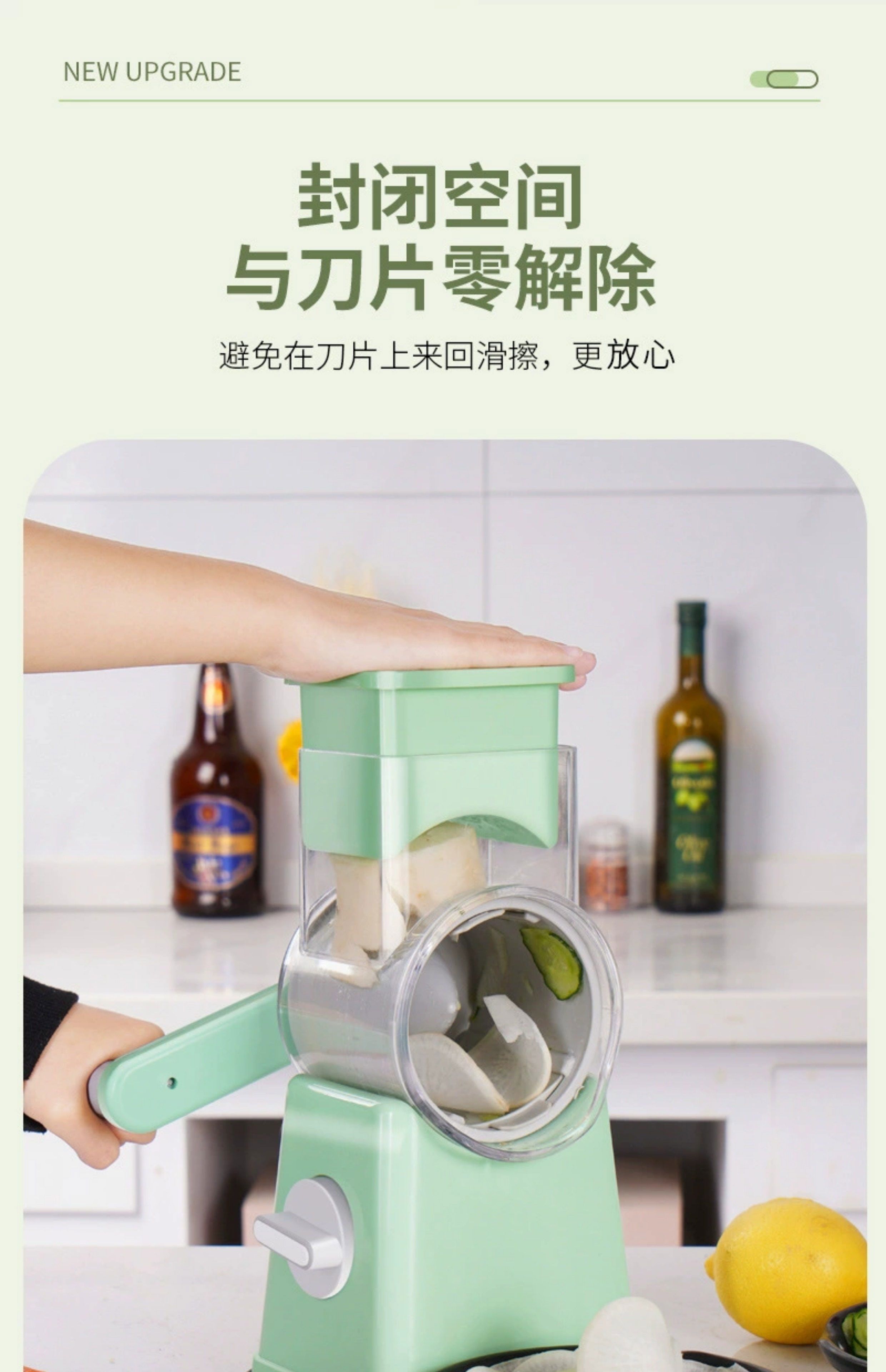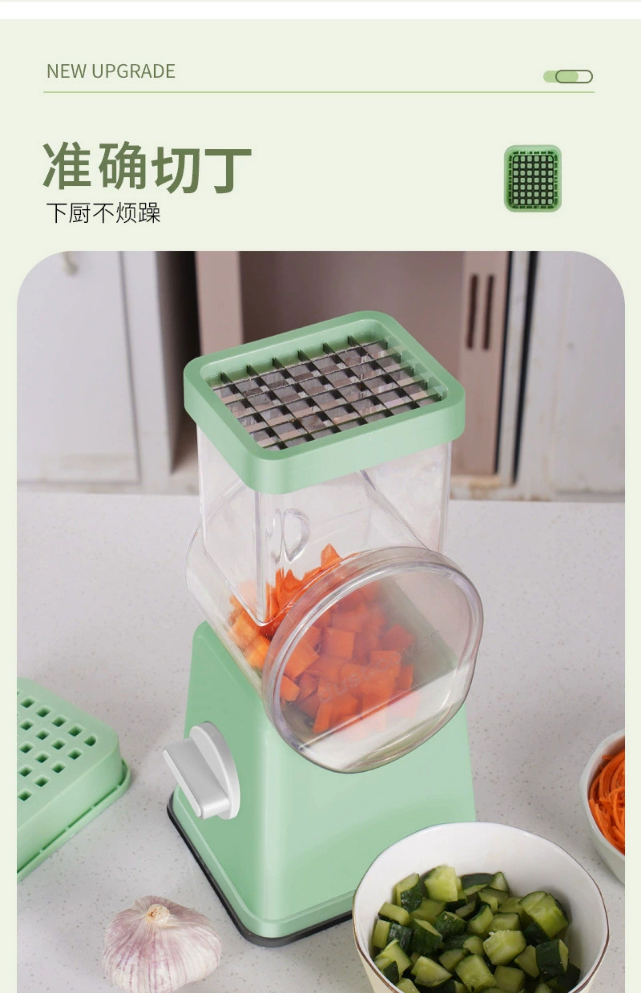 Sanqihu vegetable cutter household hand-cranked automatic roller dicing vegetable cutting machine potato shredder 5 sets * 2 knives green upgrade can be diced