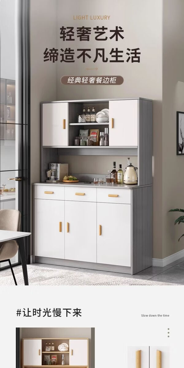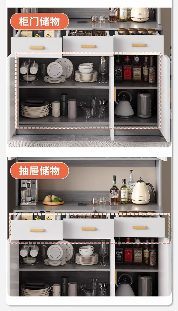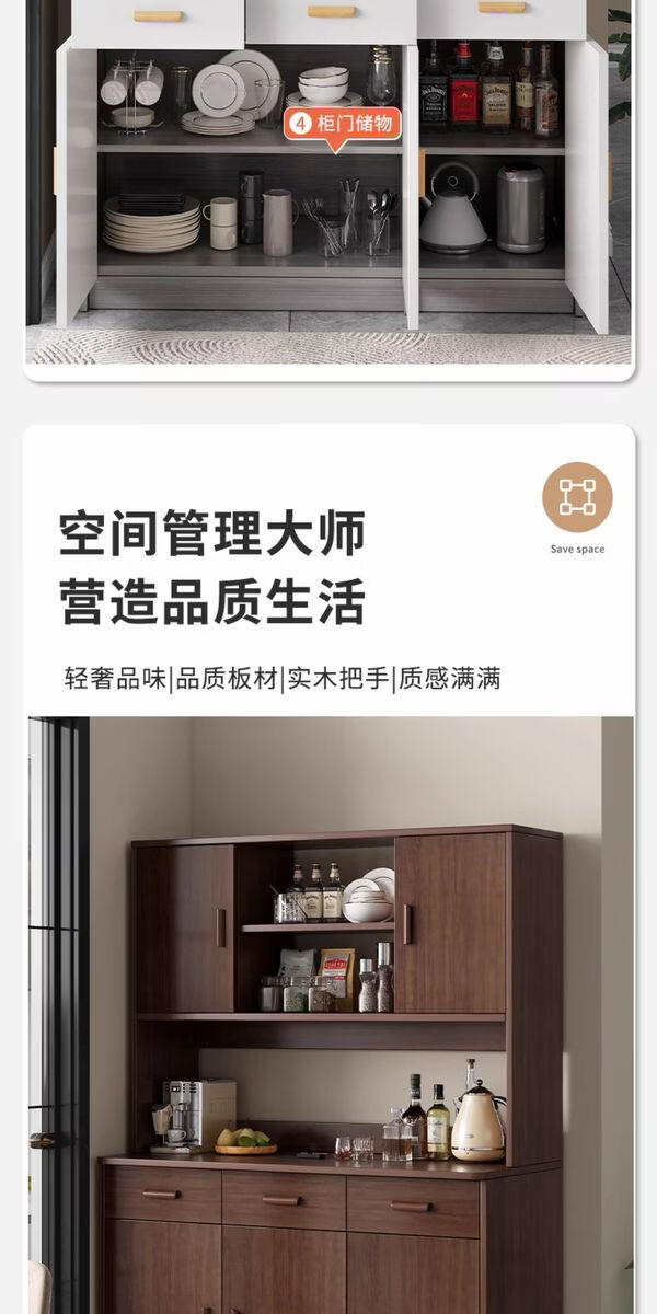 Pupan living room sideboard against the wall integrated small apartment storage cabinet kitchen multi-functional storage rack cabinet wine cabinet tea cabinet Heightened upgrade with shelf version dark walnut 100CM