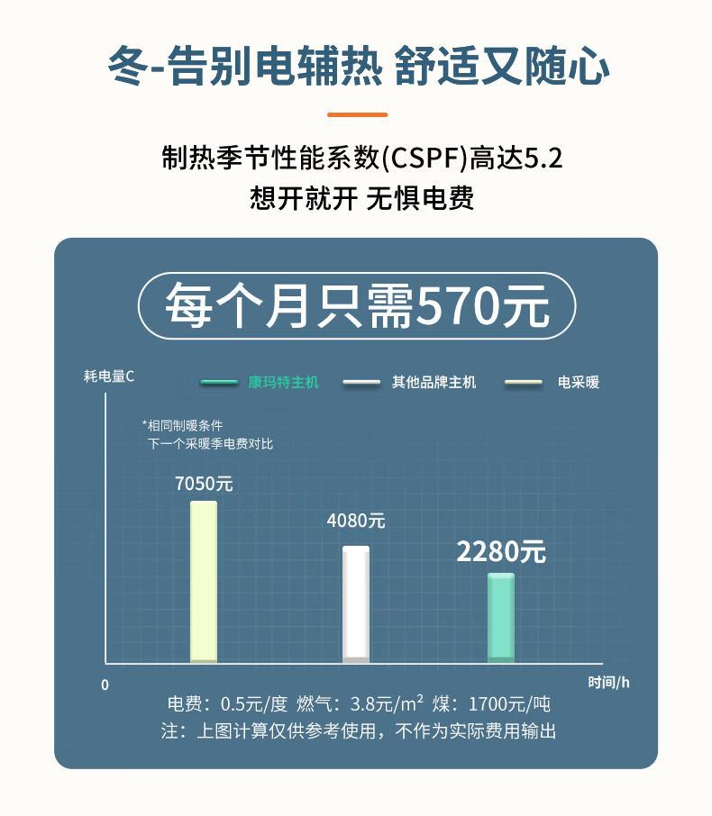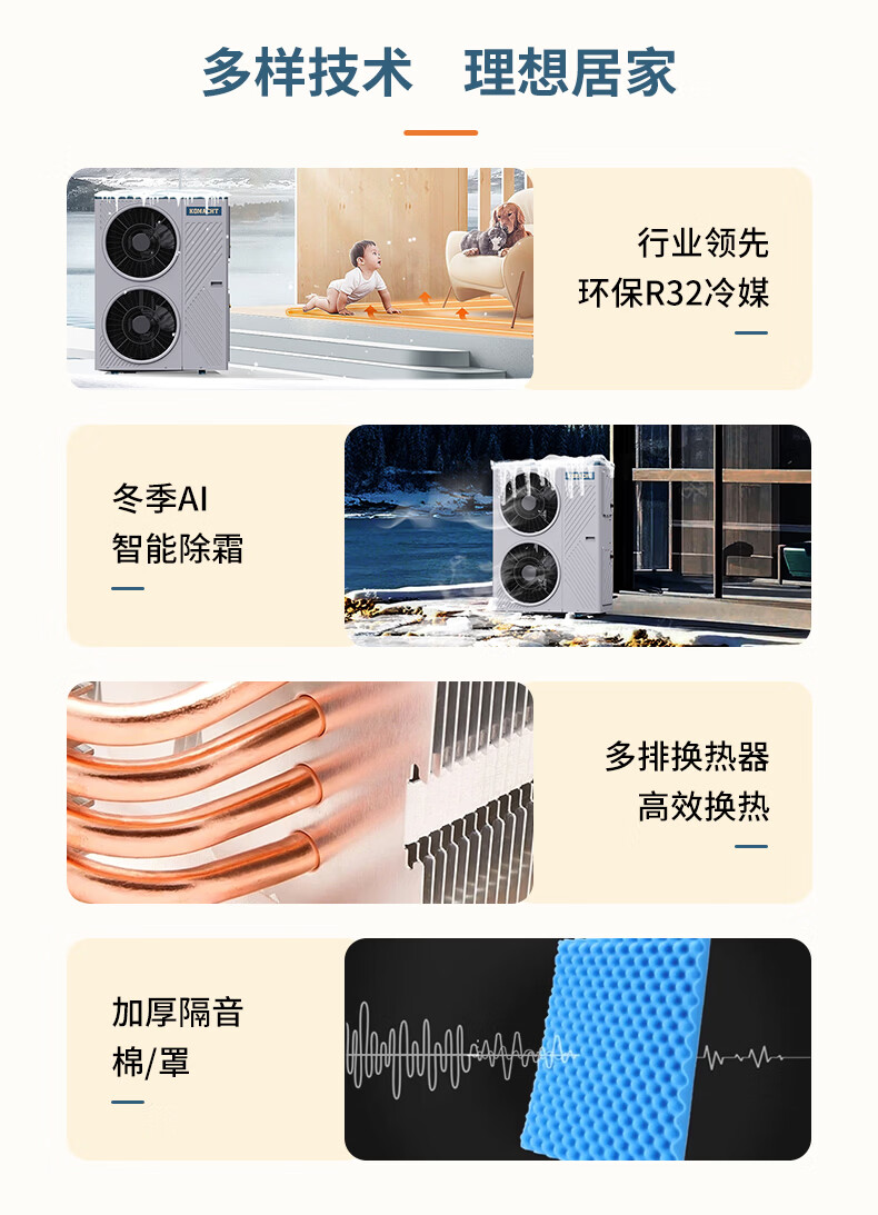 KOMACHT air source heat pump heating machine for home self-built houses and villas with variable frequency first-class energy efficiency and energy saving central air conditioning multi-connection package installation has been connected to Mijia APP, worry-free and all-inclusive, 3 horses, one for three, 60-80