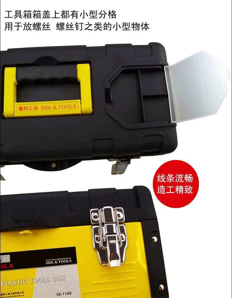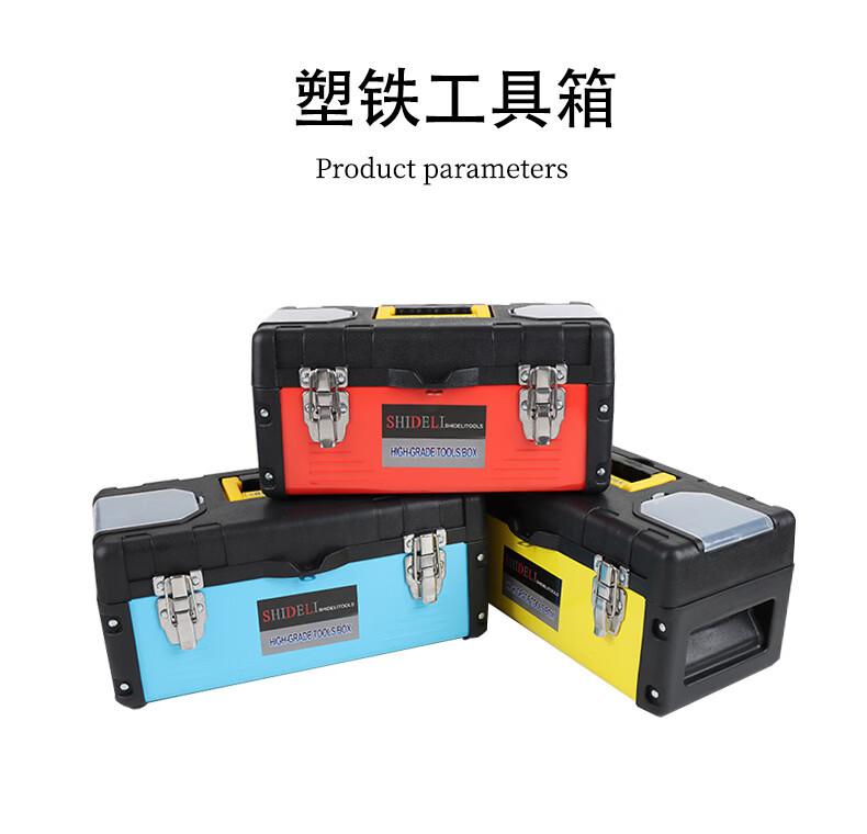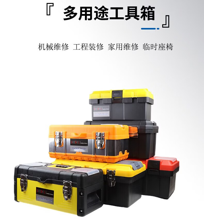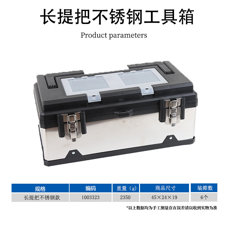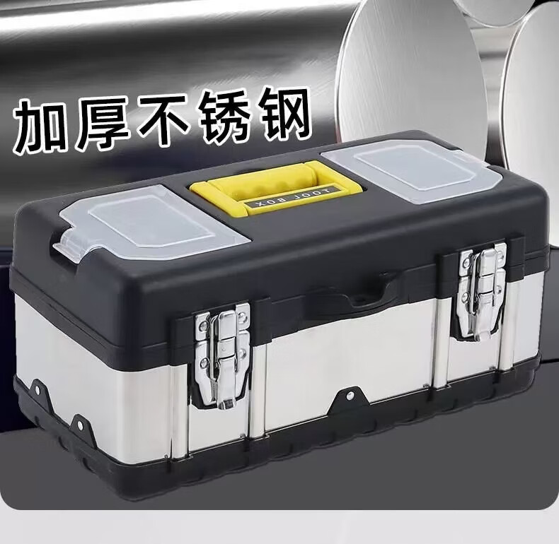 Multi-purpose box suitcase Multi-purpose plastic iron plastic tool box suitcase hardware storage electrician tool box 19-inch stainless steel tool box (black)