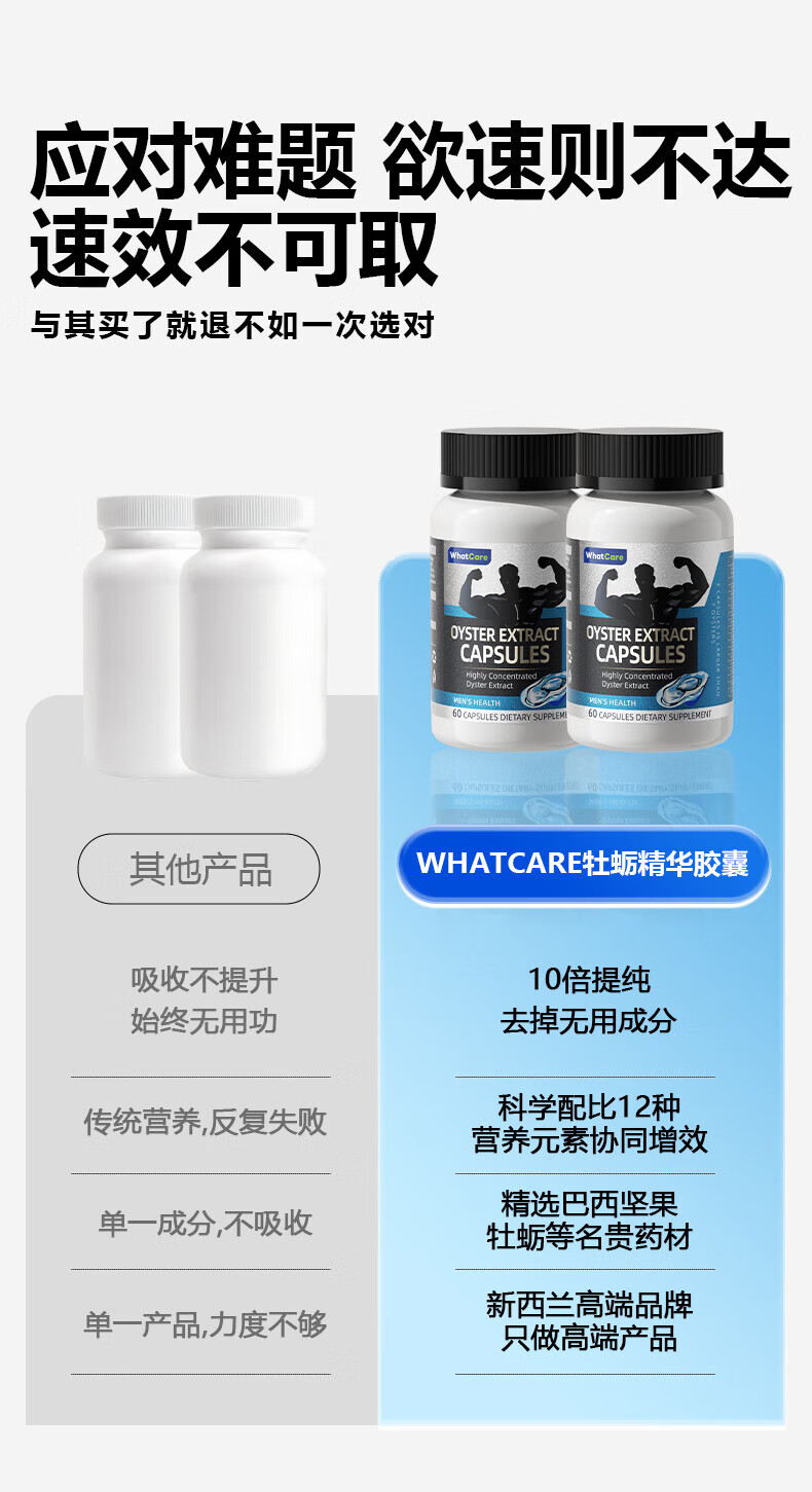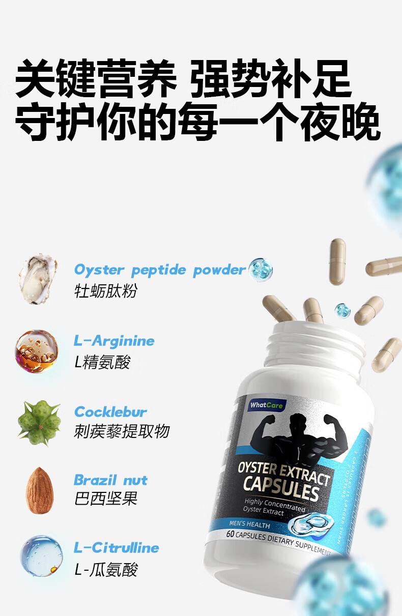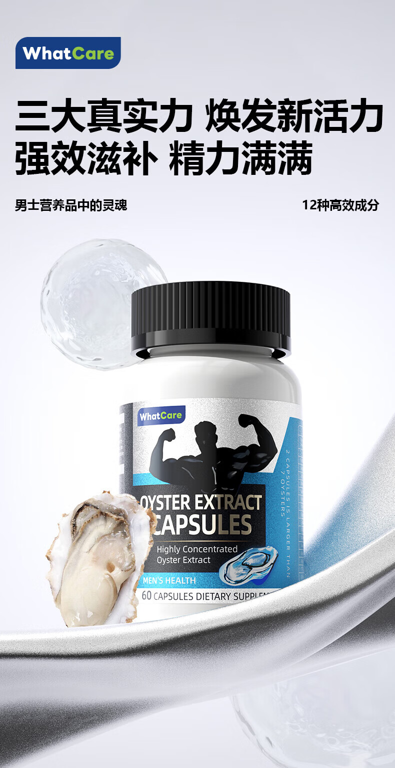 HighQWhatCare Oyster Capsules, Maca, Oyster Essence, Zinc and Selenium Tablets, Raw Oysters, Testosterone Boosting Health Products, Ketogenic Products, 1 Bottle, Trial Pack, 60 Capsules