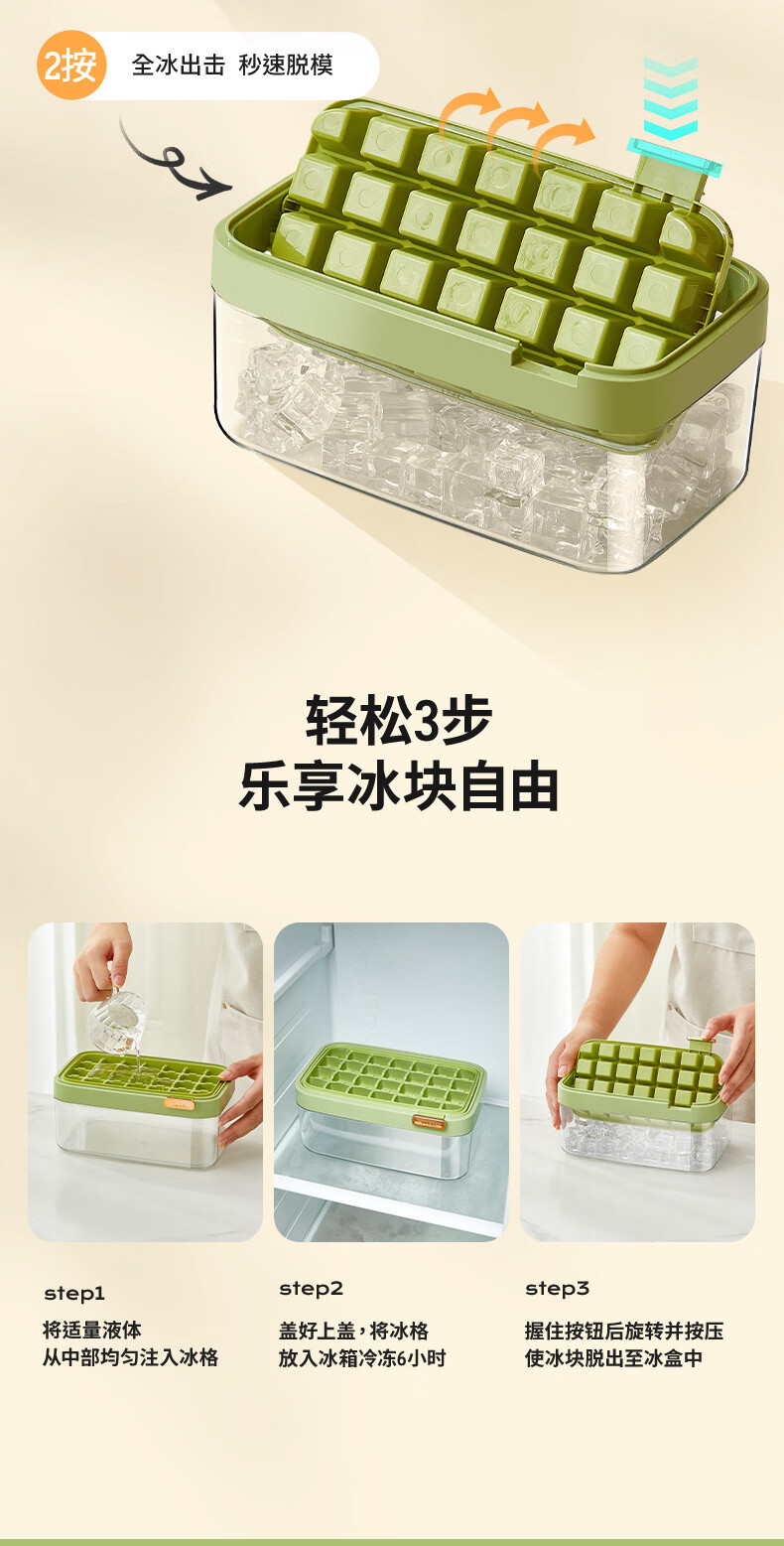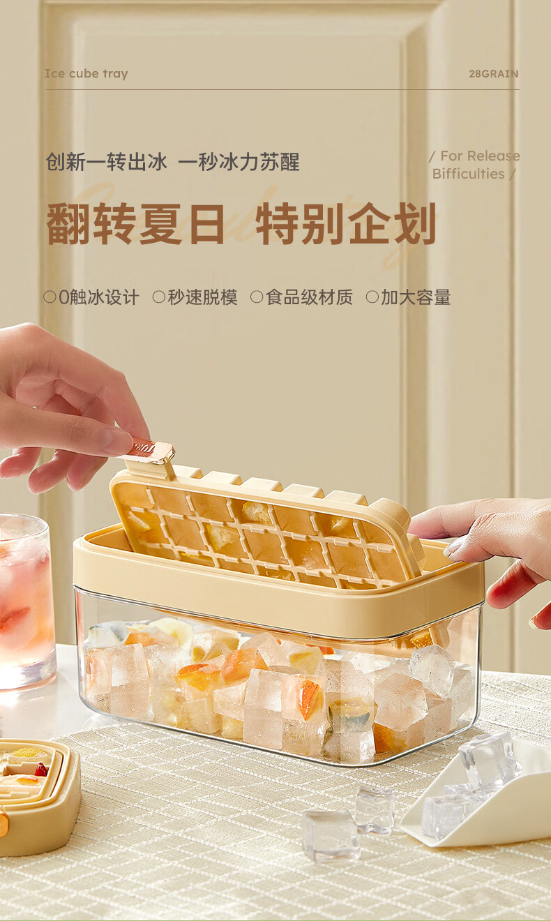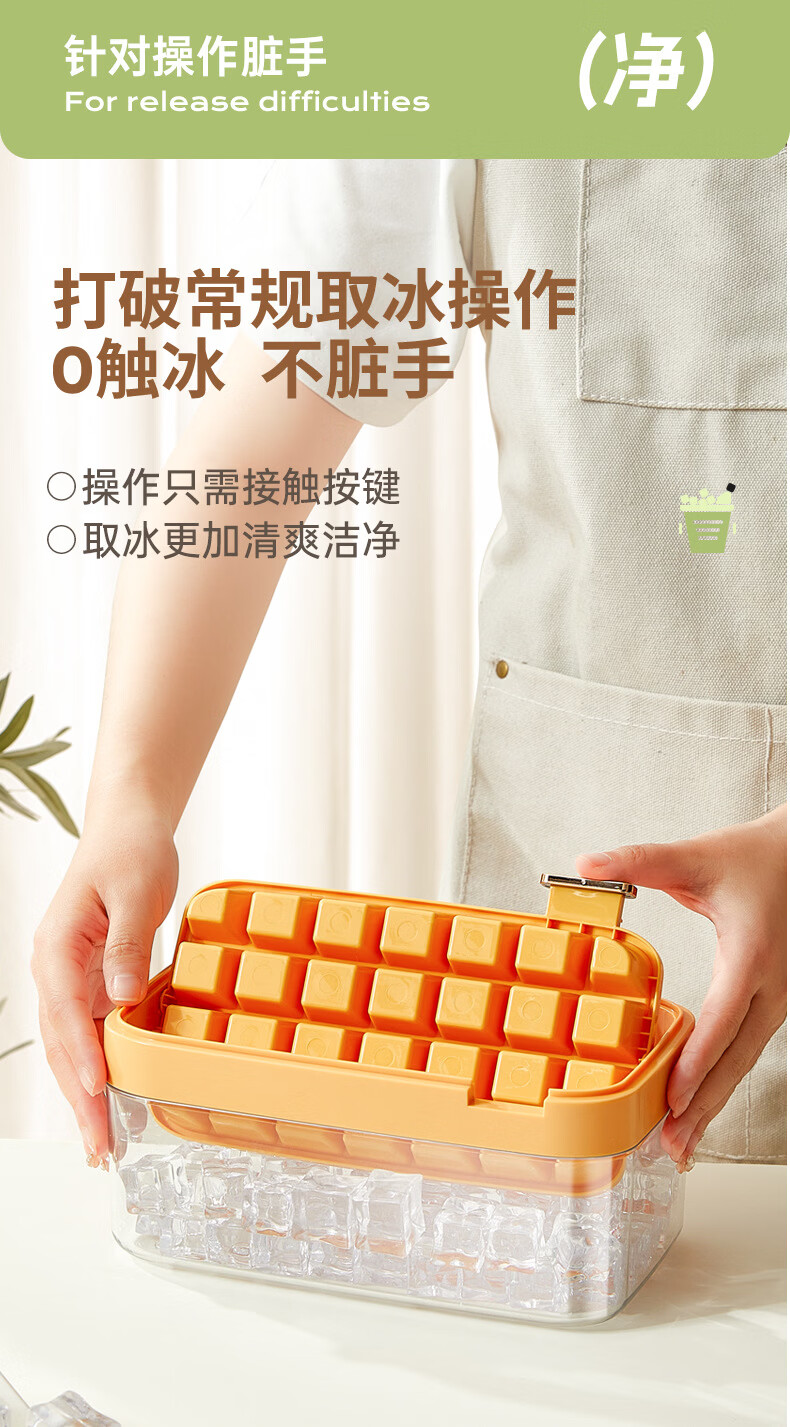 Yingtang refrigerator fully automatic ice box sowe ice cube mold press ice tray household grade household ice making orange single layer ice box set