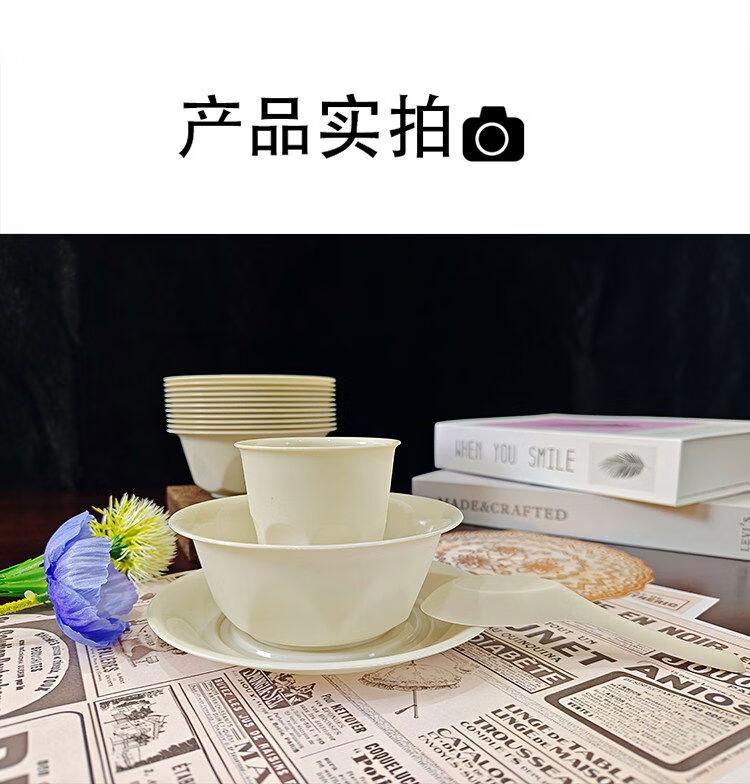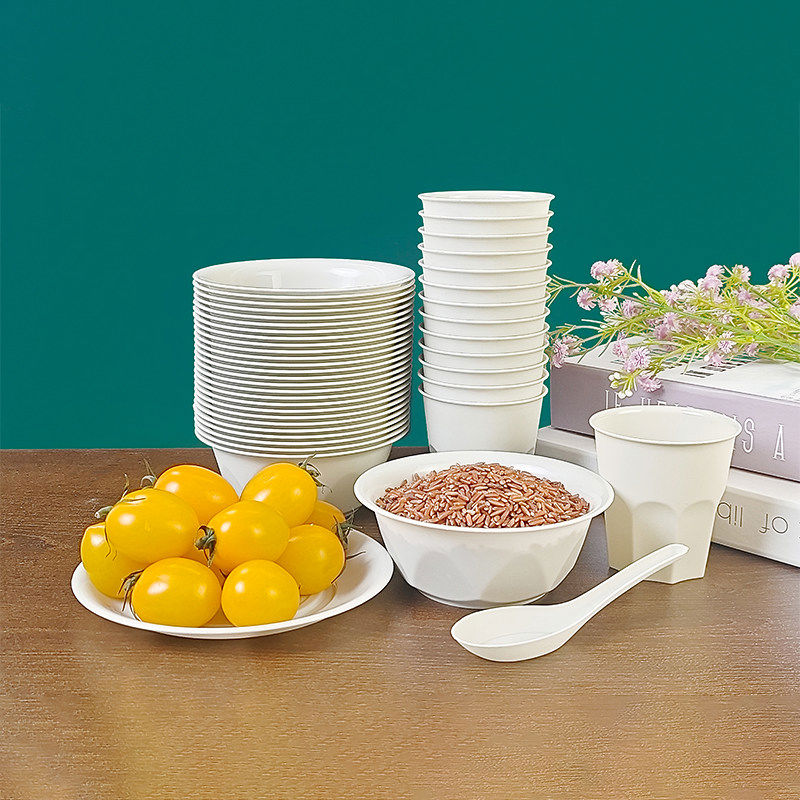 Miaopuledao four-piece disposable tableware set, individually packed, thickened and hardened, cups, dishes, spoons, for banquets and restaurants, individually packed in 5 boxes, 560 sets, with chopsticks included