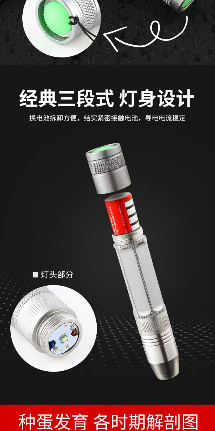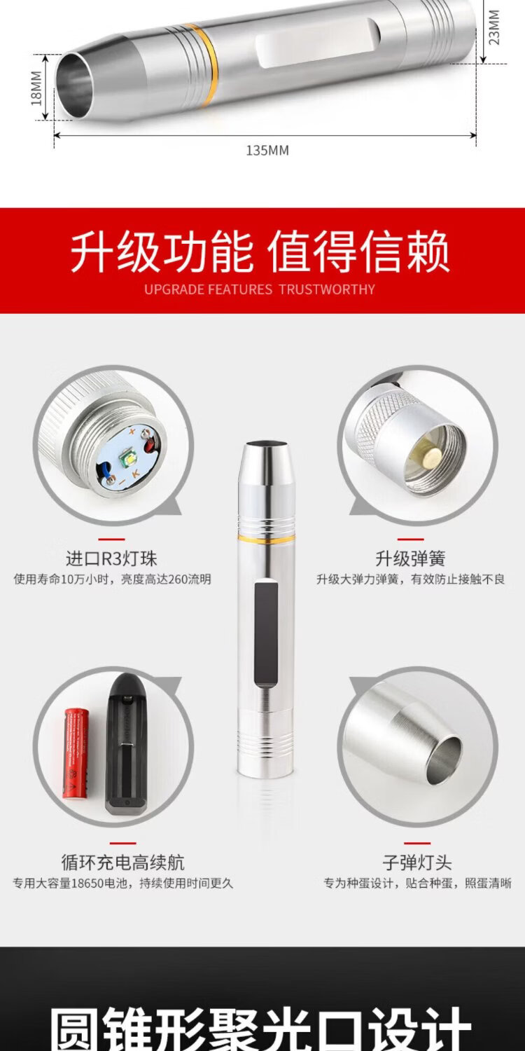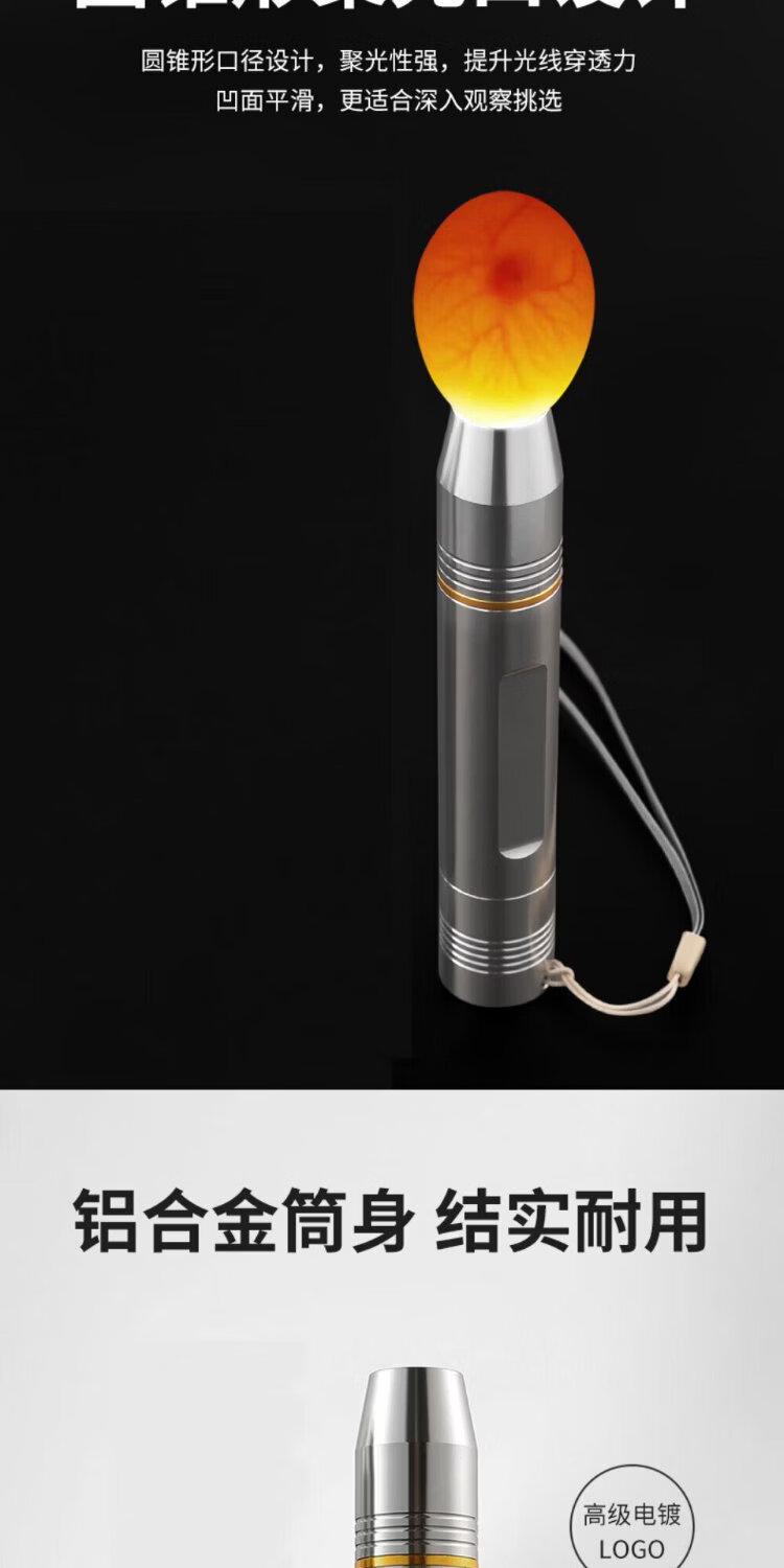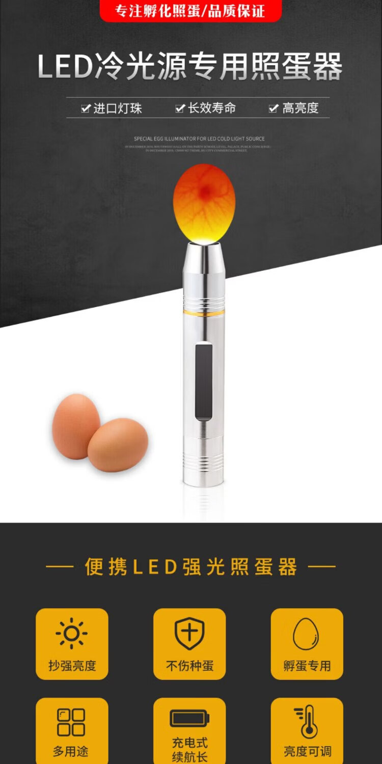 Weiyang egg lighter, egg light, special incubator, egg fertilization flashlight, hatching light, rutin chicken, duck, goose, egg light, aluminum alloy model (with charger + 1 battery), special for hatching/brightness adjustable/cold light irradiation