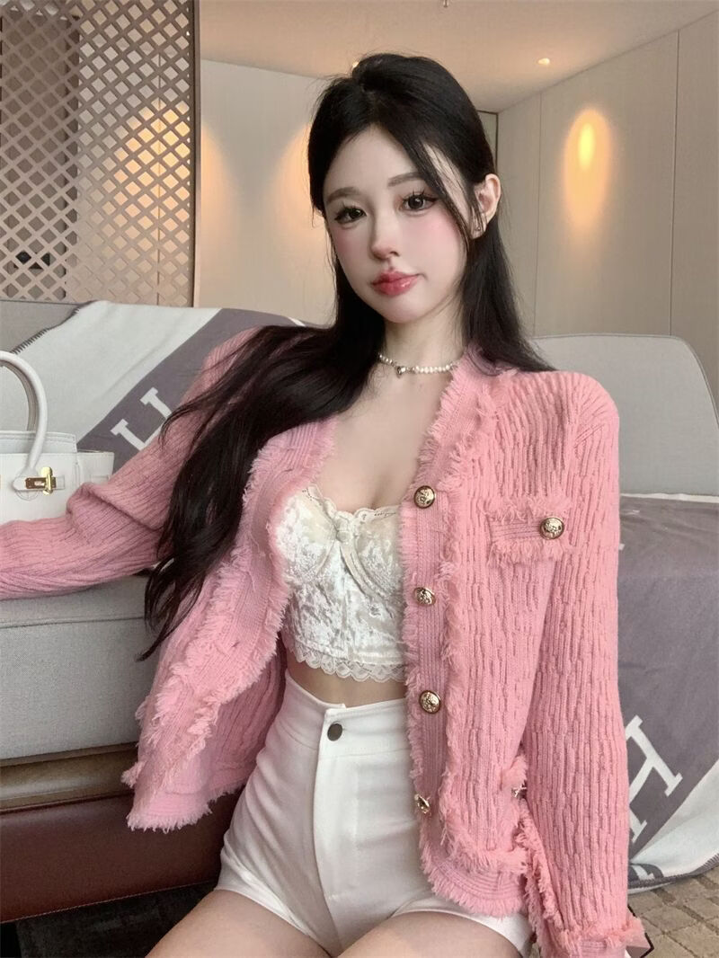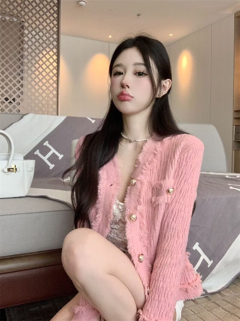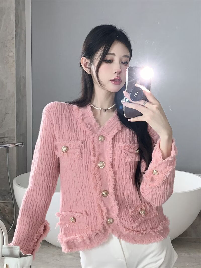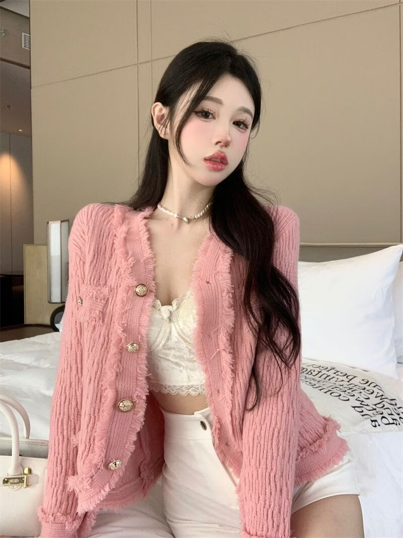 Playboy (PLAYBOY) spring and autumn beautiful sweater small fragrance white long-sleeved cardigan French outer top for women 2026 new early spring official flagship pink S
