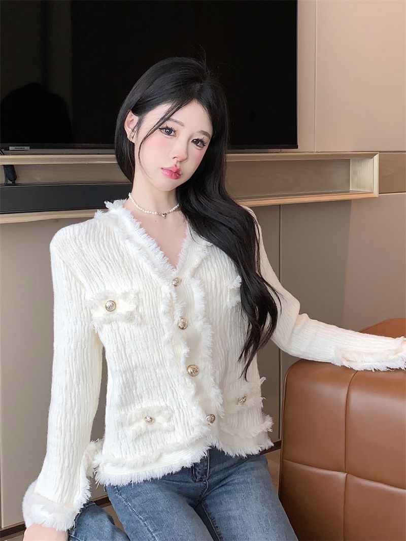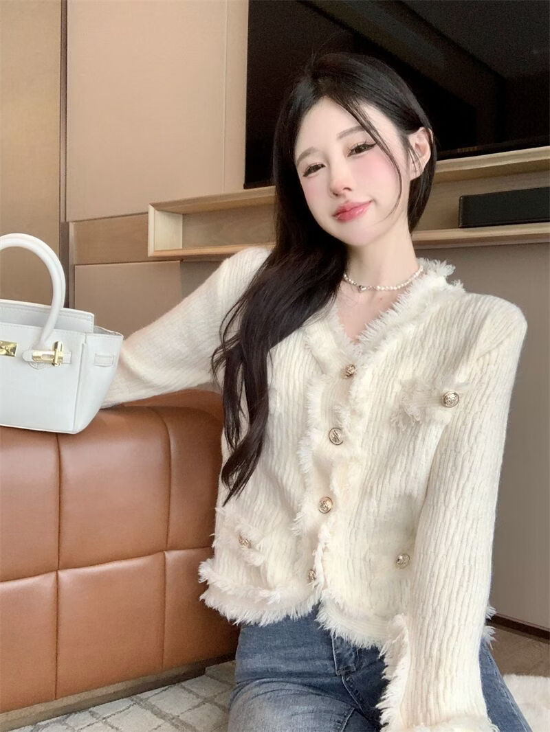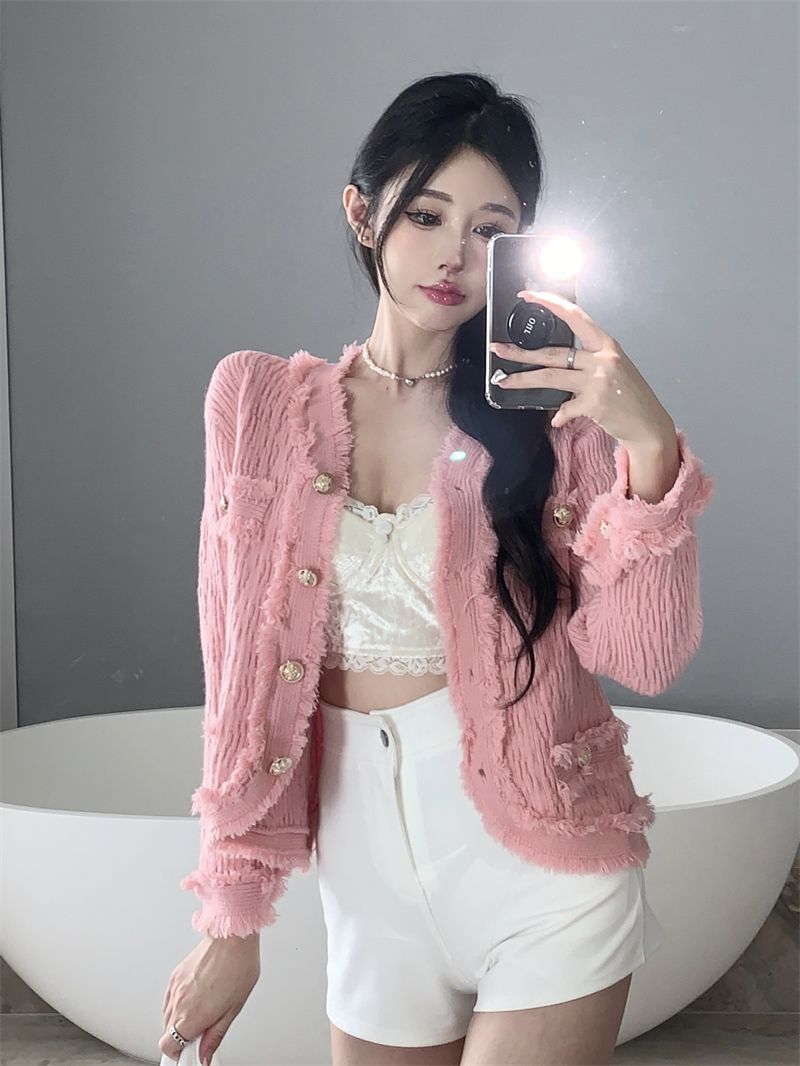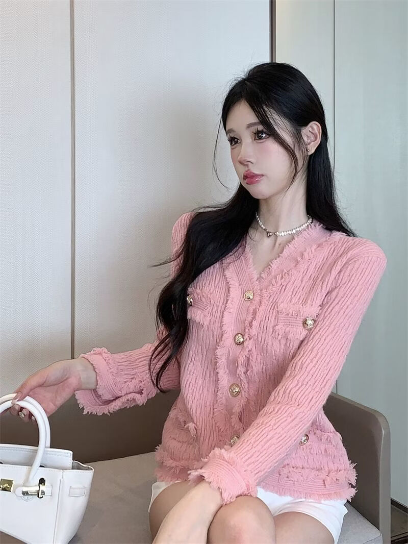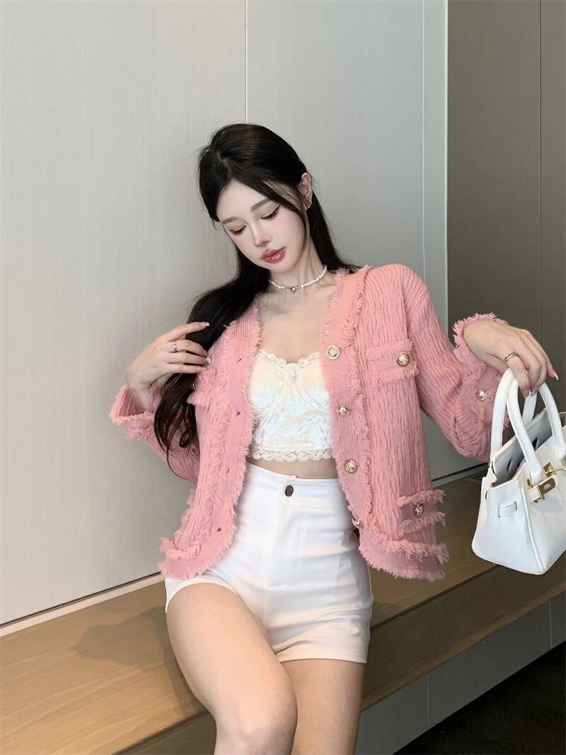 Playboy (PLAYBOY) spring and autumn beautiful sweater small fragrance white long-sleeved cardigan French outer top for women 2026 new early spring official flagship pink S
