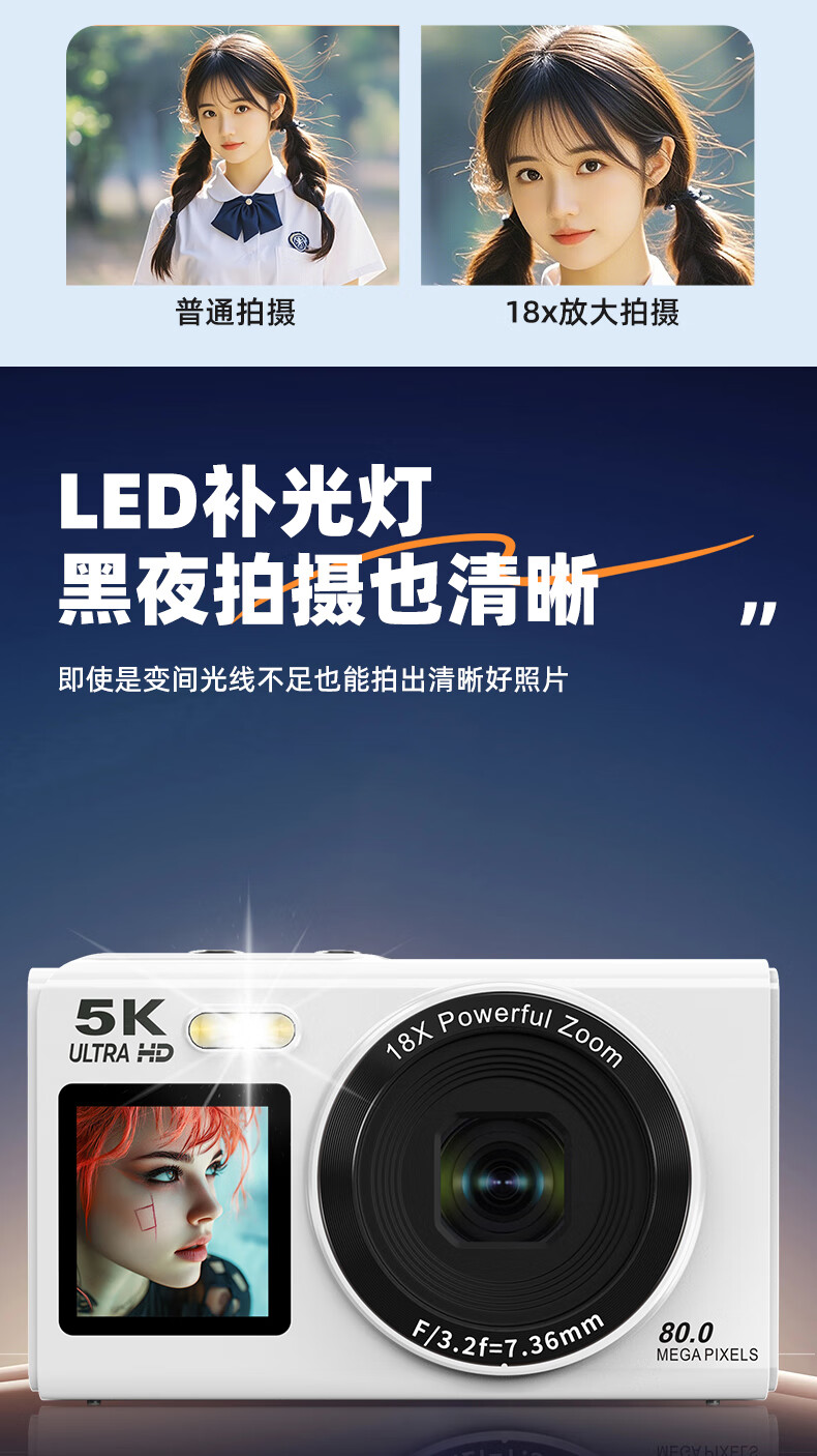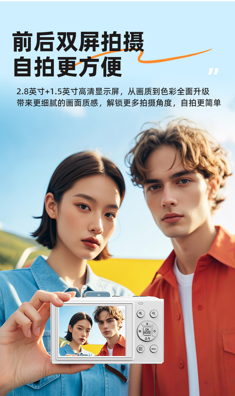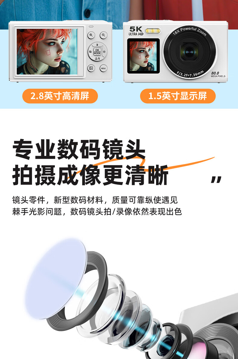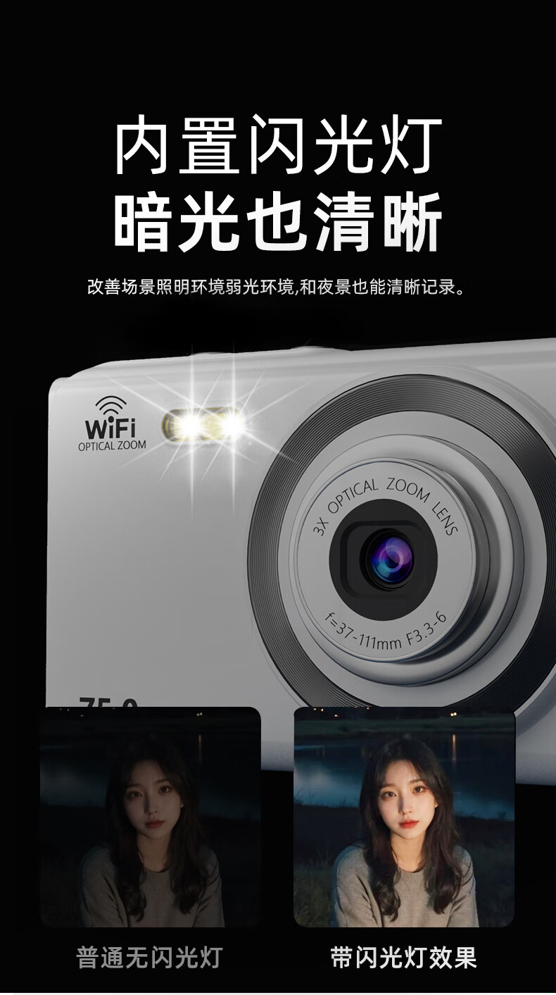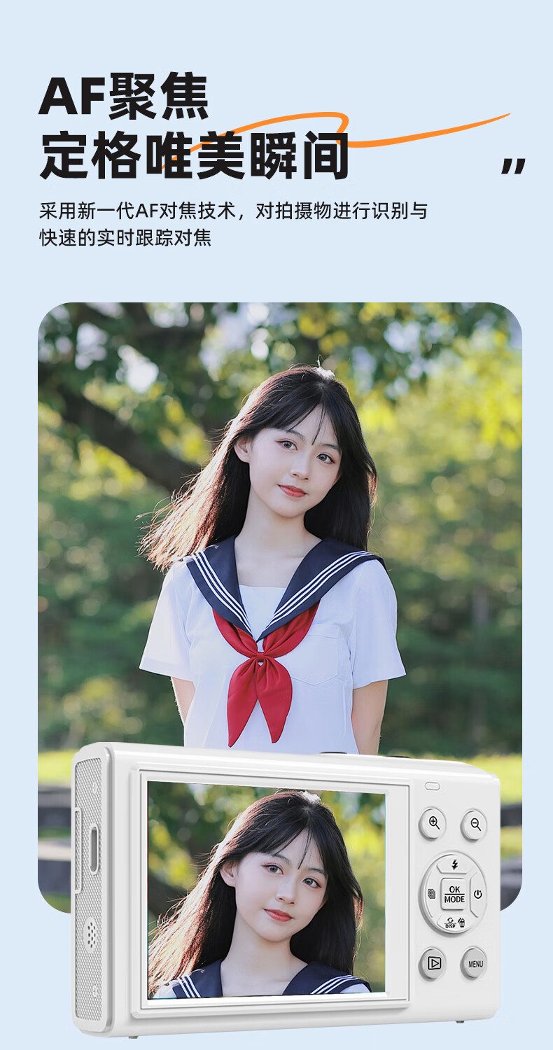 Bansy high-definition mirrorless digital camera CCD replacement student entry-level high-pixel transferable mobile phone wifi campus high school students travel portable vlog small card machine selfie camera dual-screen selfie 128G memory card + wifi image transfer + fill light