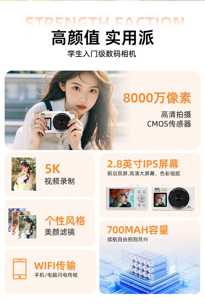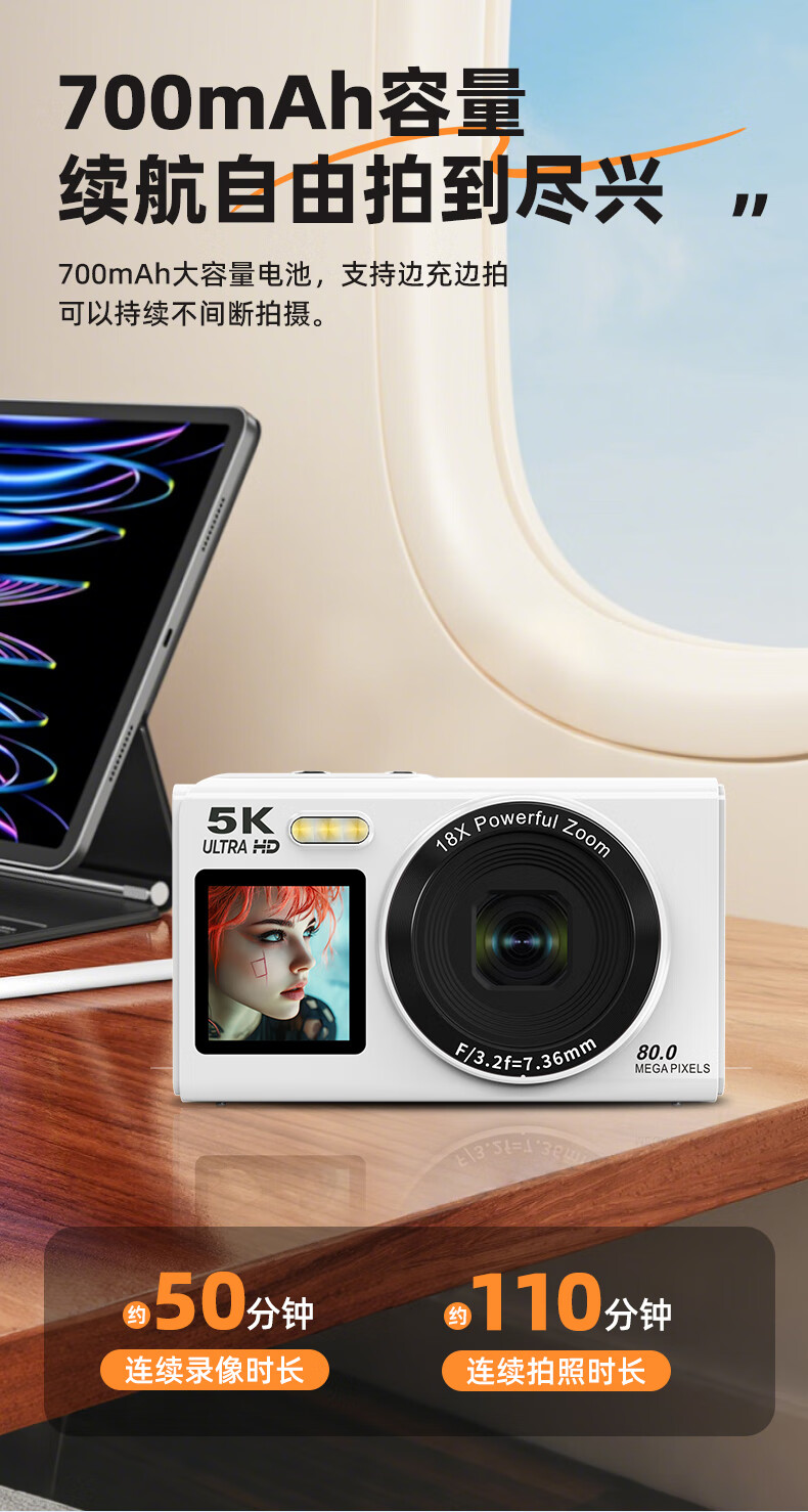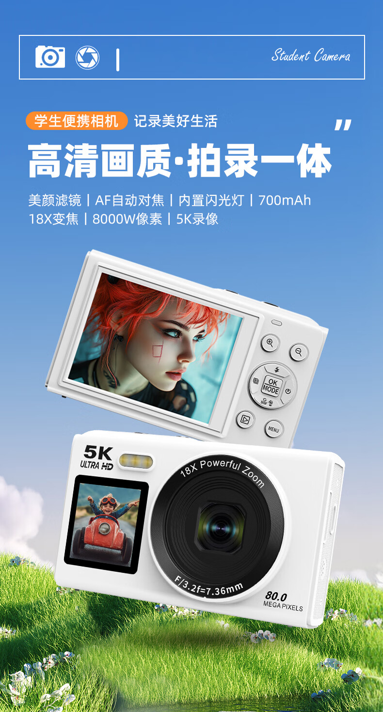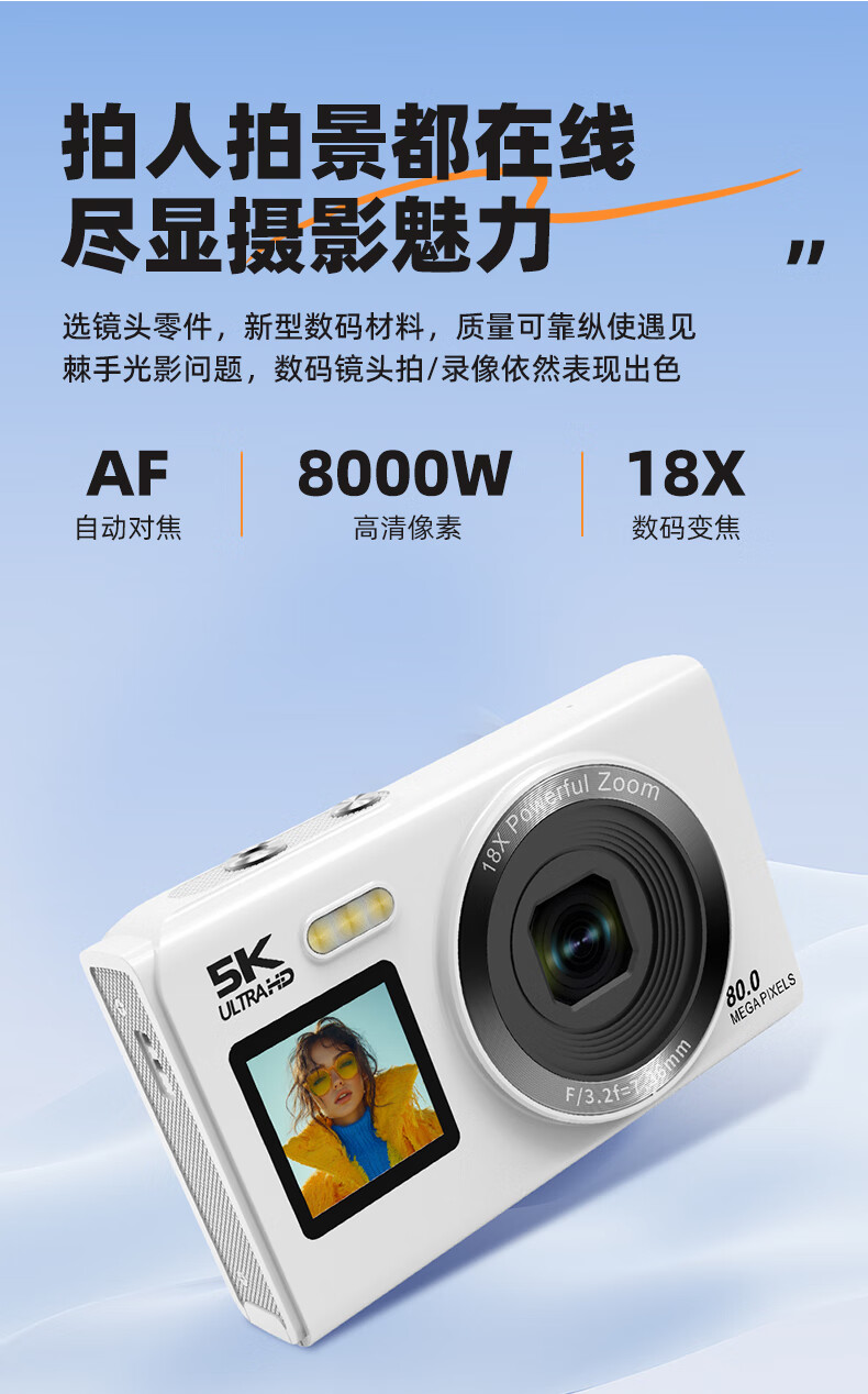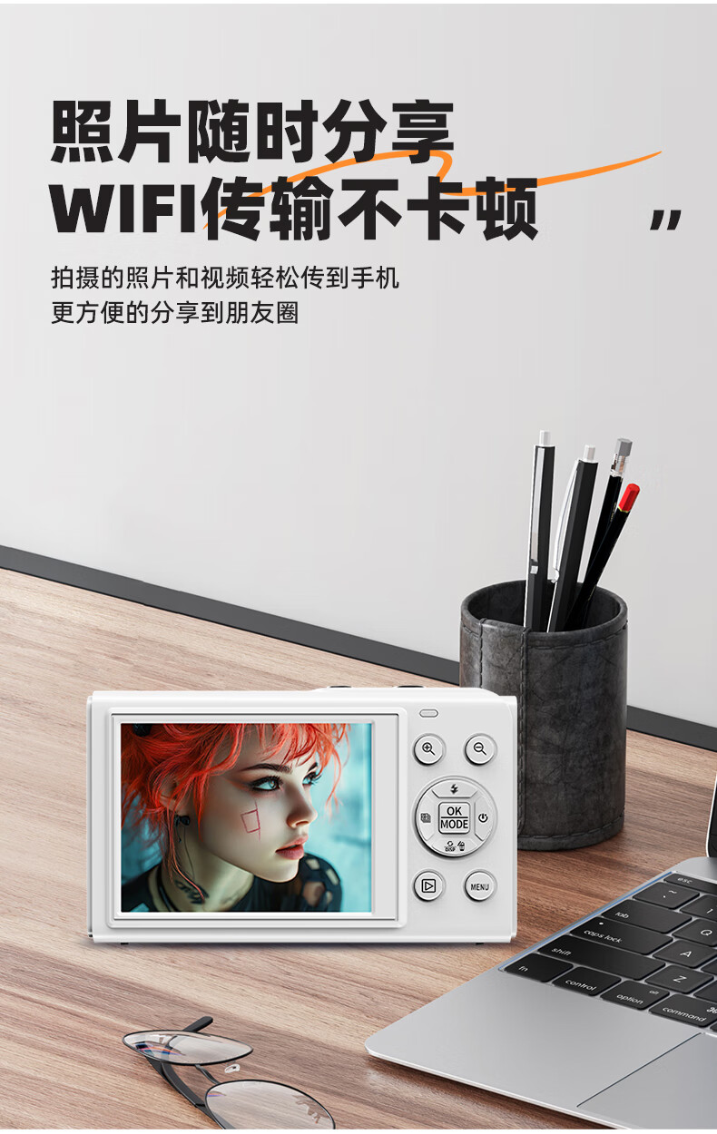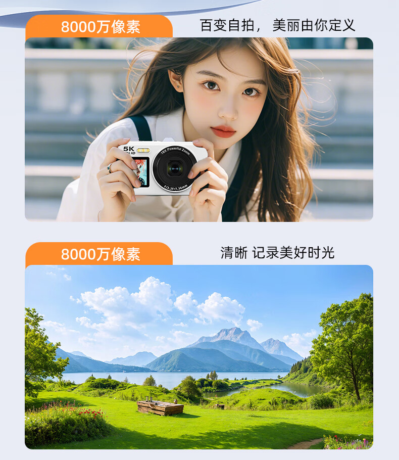 Bansy high-definition mirrorless digital camera CCD replacement student entry-level high-pixel transferable mobile phone wifi campus high school students travel portable vlog small card machine selfie camera dual-screen selfie 128G memory card + wifi image transfer + fill light