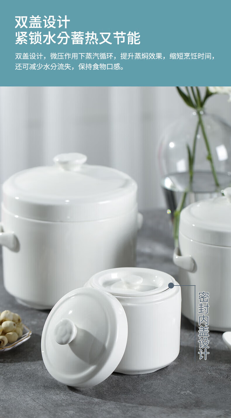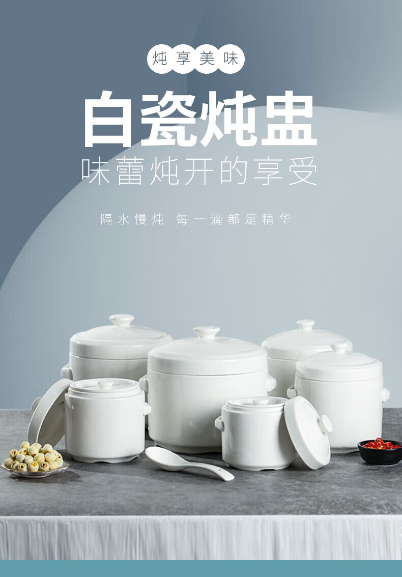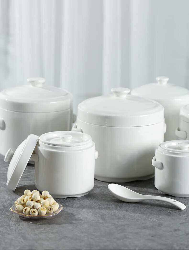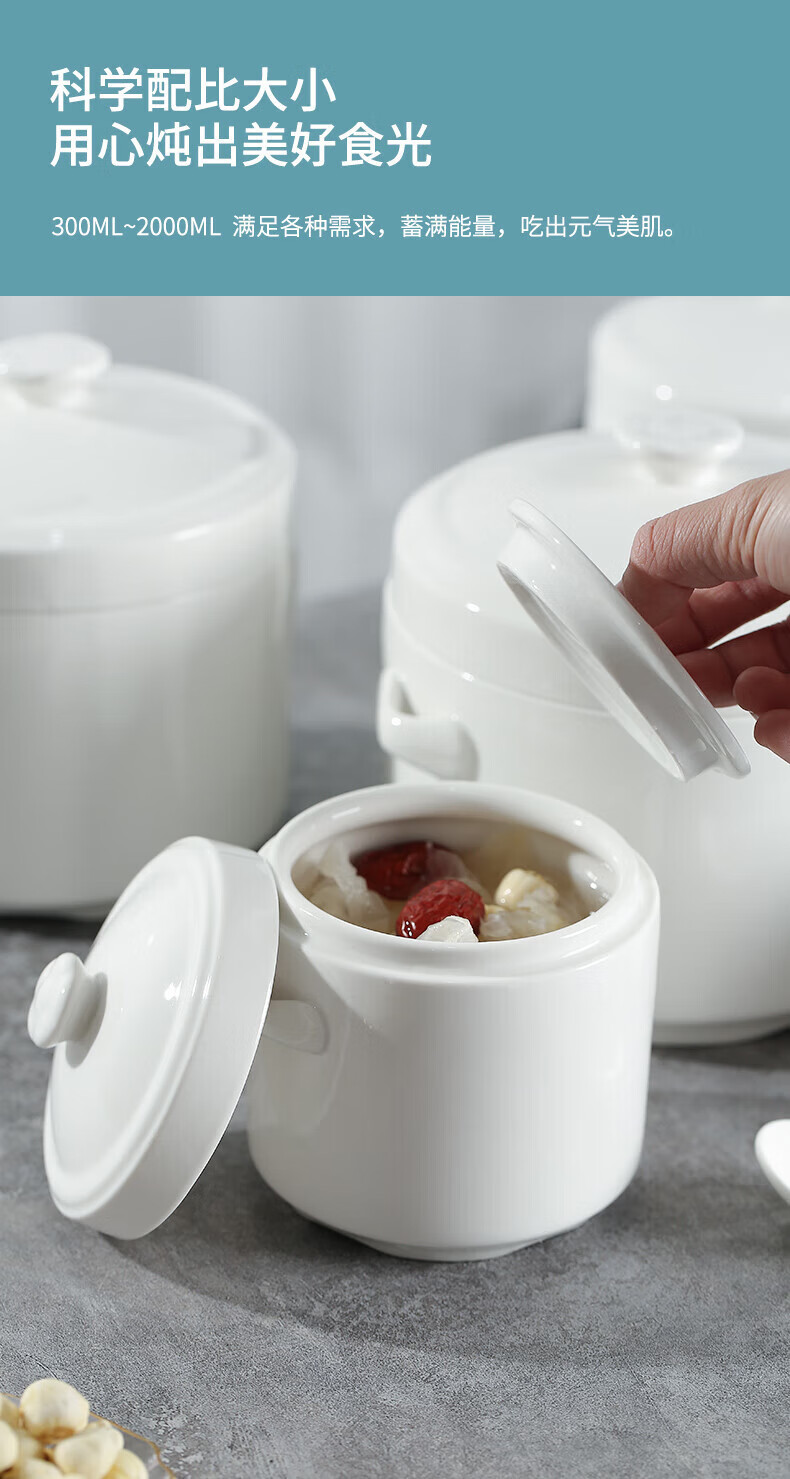 Pupan bone china stew pot, bird's nest stew pot, water-proof ceramic stew pot, double lid crock pot soup stew pot, household bowl with lid, pure white 2000ML