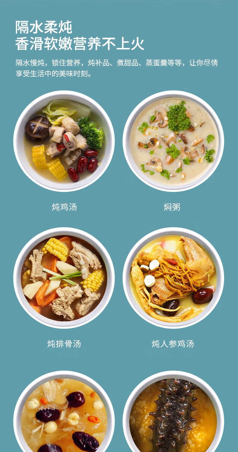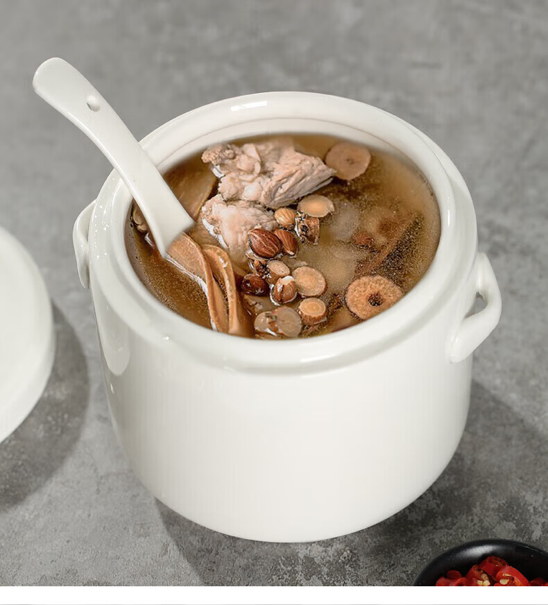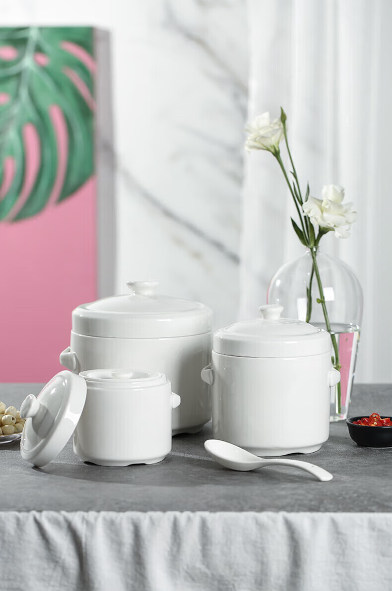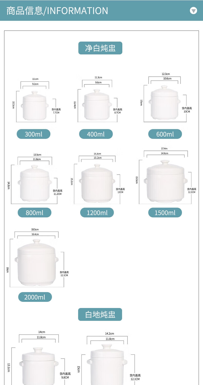 Pupan bone china stew pot, bird's nest stew pot, water-proof ceramic stew pot, double lid crock pot soup stew pot, household bowl with lid, pure white 2000ML