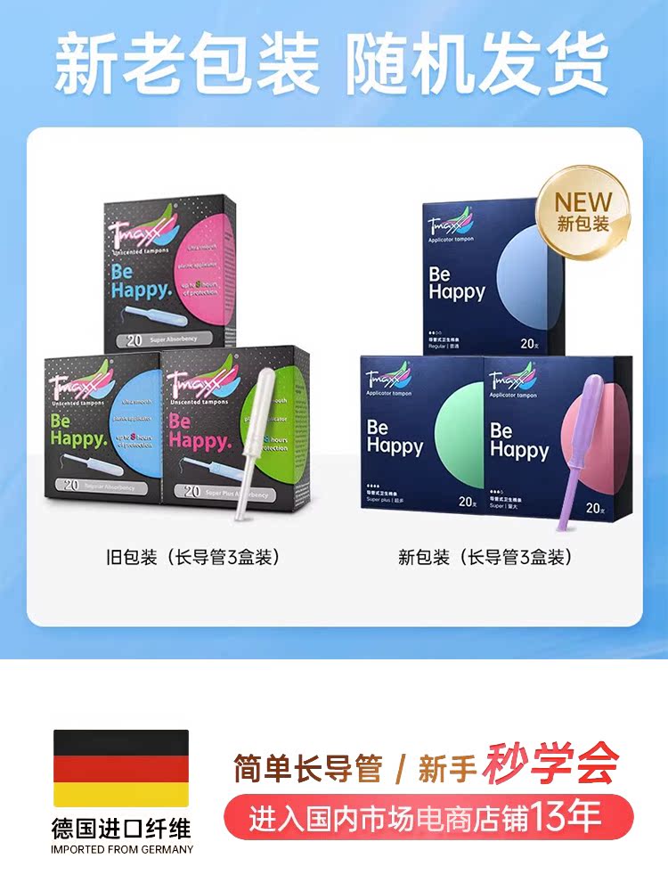1Tmaxx tampon with long catheter, inserted cotton swab, built-in aunt sanitary napkin, 3 boxes of 60 pieces, upgraded model, large quantity of 20 pieces (3 boxes)