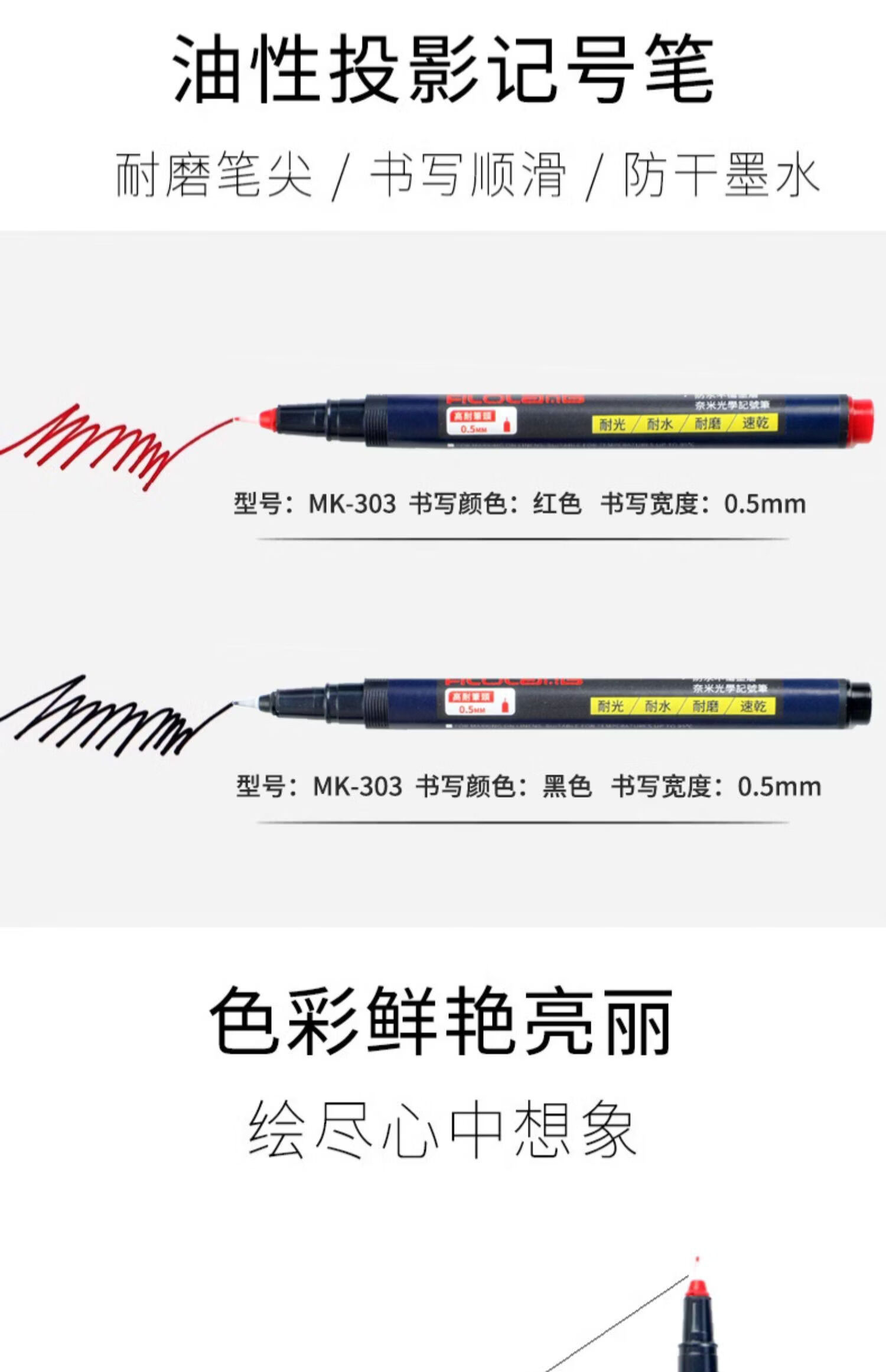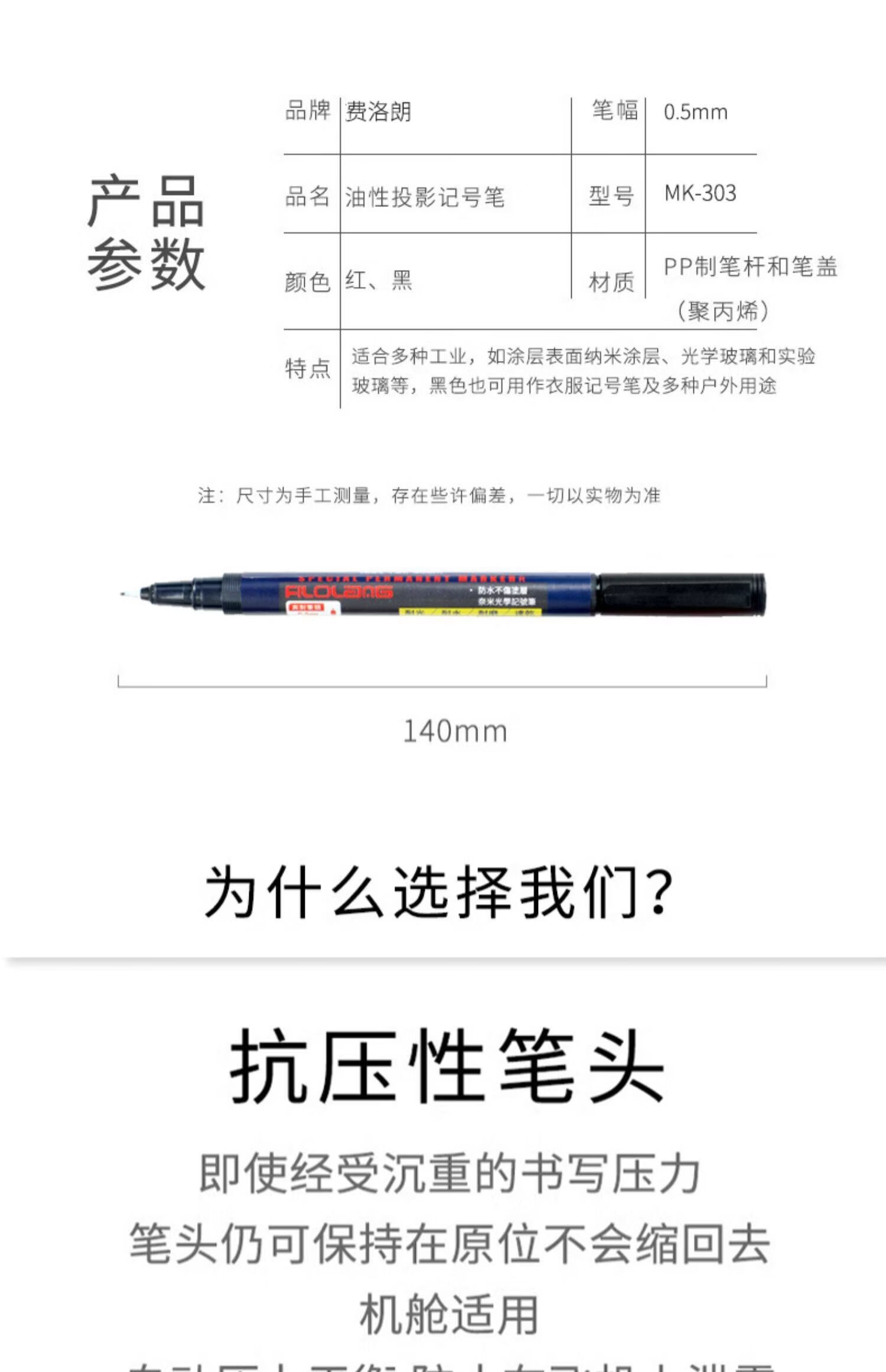 Shantou Lincun Fiang Ferroland MK303 oil-based marker optical mirror CD disc Lin pen industrial laboratory glass 0 point 3mm color nanocoated mirror marker pen
