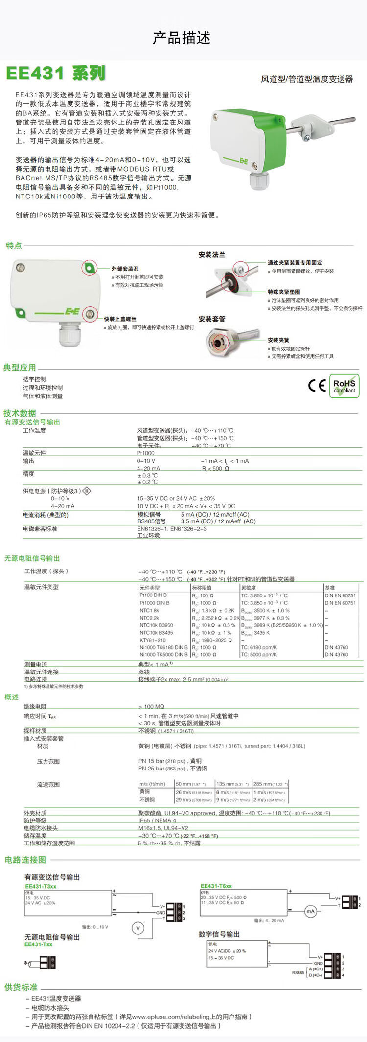 Original Yijiayi EE431-T6XXEPO024M air duct water pipe temperature sensor EE431-M3A6L150 EE431-M3A6L300