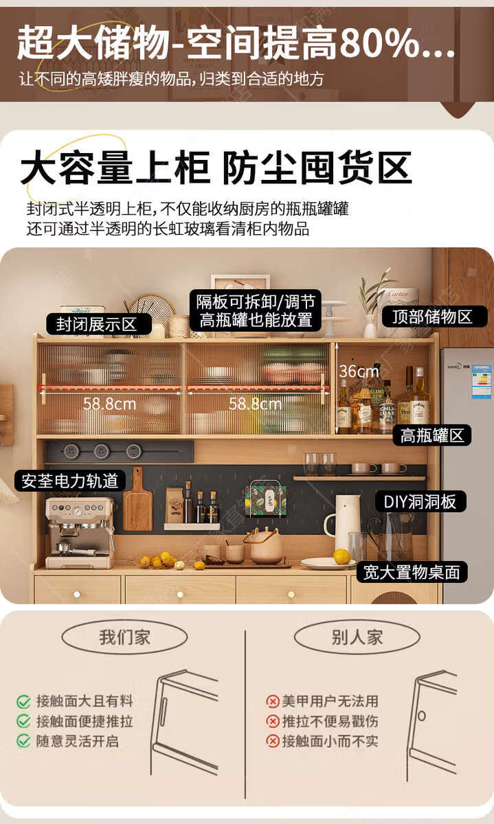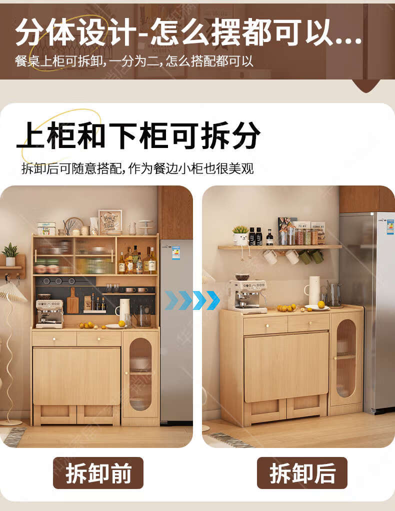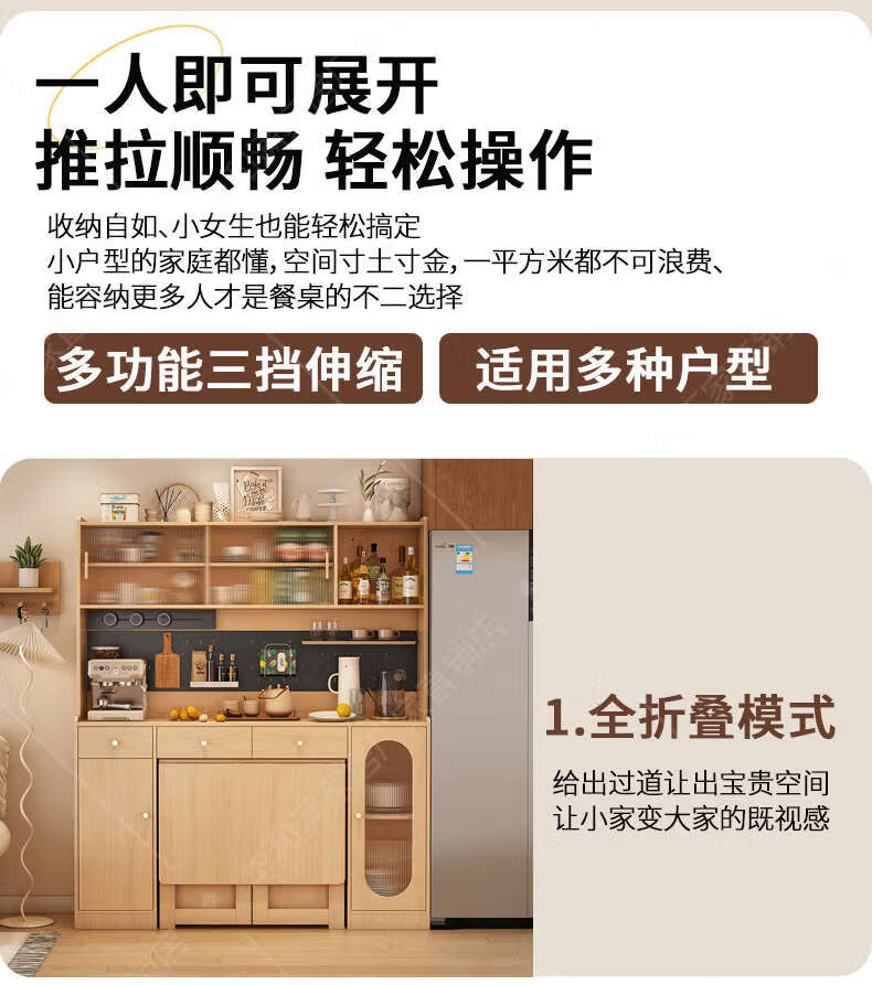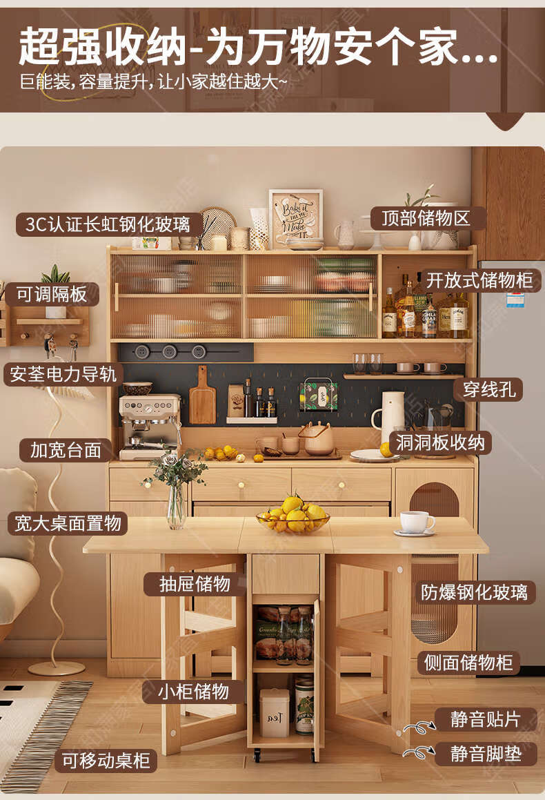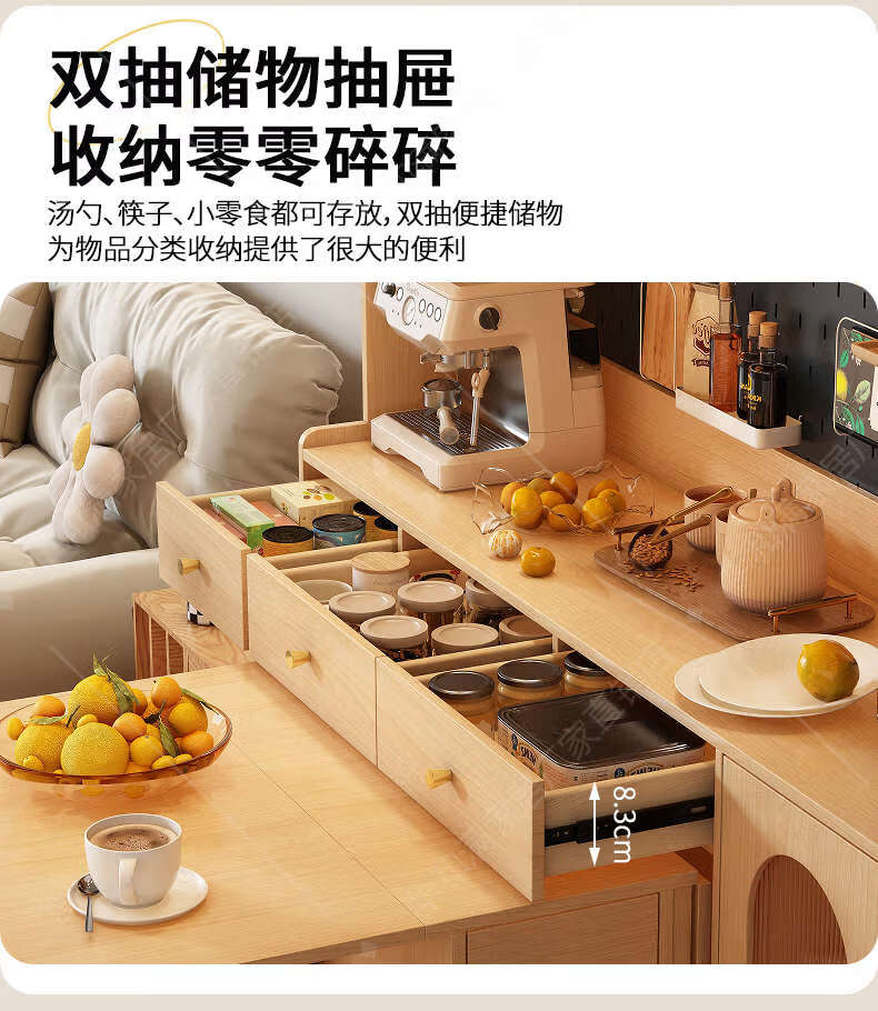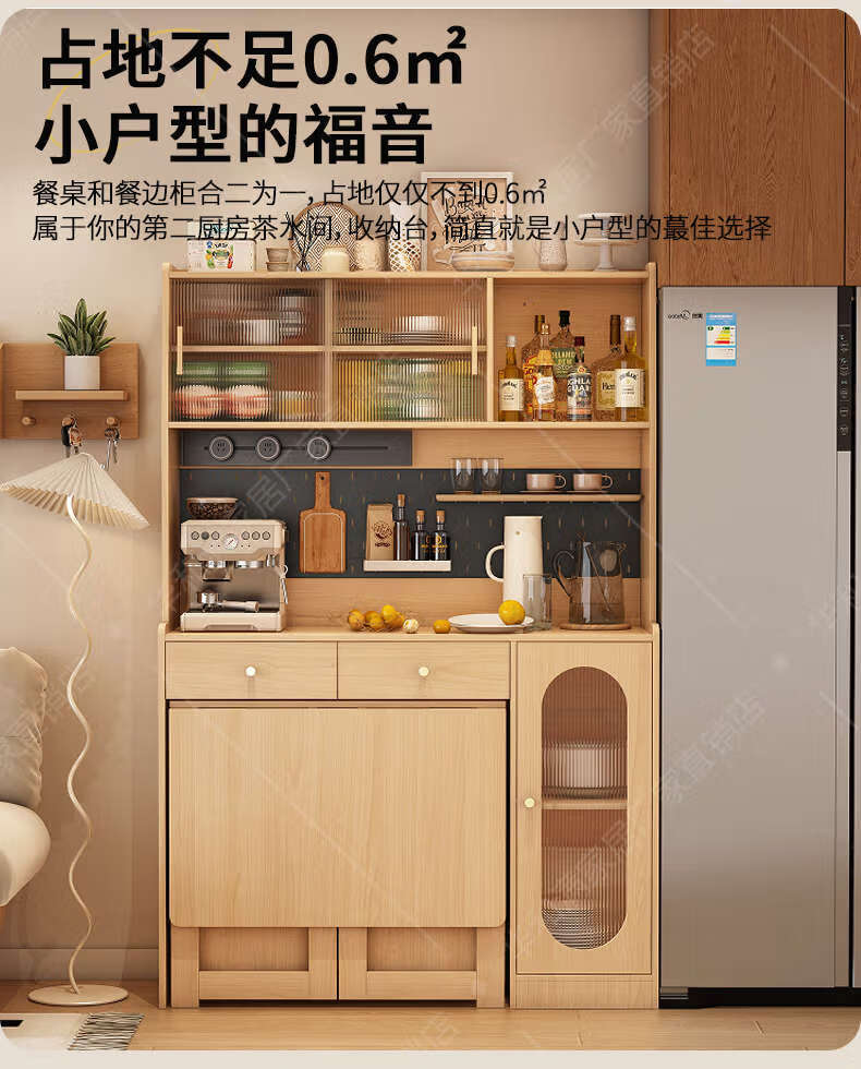 Fantasy sideboard, wall-mounted dining table, integrated storage cabinet, retractable next to living room, master installation + Original x supreme set, 85CM integrated sideboard (including four 2+3 doors)