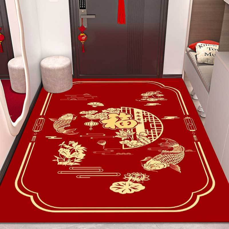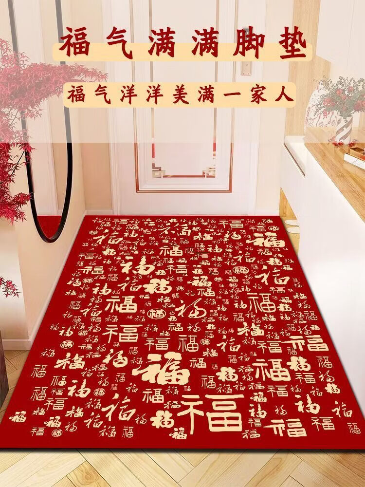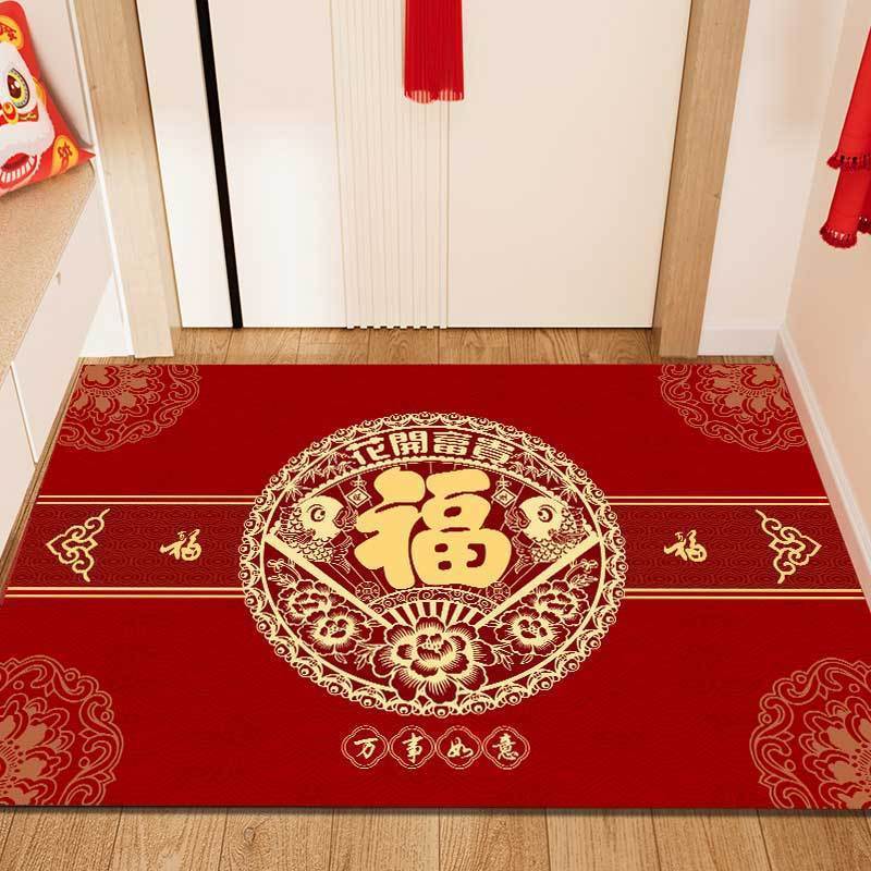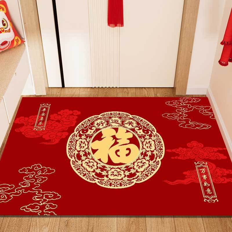 Fantasy New Year Blessings Carpet 2026 Year of the Horse Door Mat Living Room Bedroom Blanket New Year Decoration Wanfu Gathering + Vertical Version Crystal Velvet/40x60CM