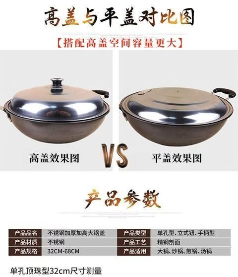 Fantasy large pot lid wok high lid pot lid pot lid soup pot lid steaming 47cm diameter increased pot lid