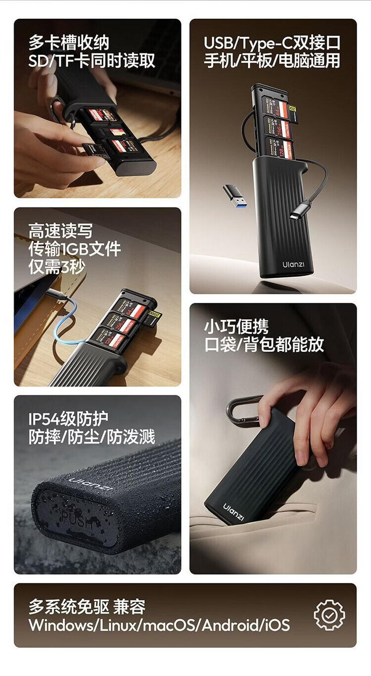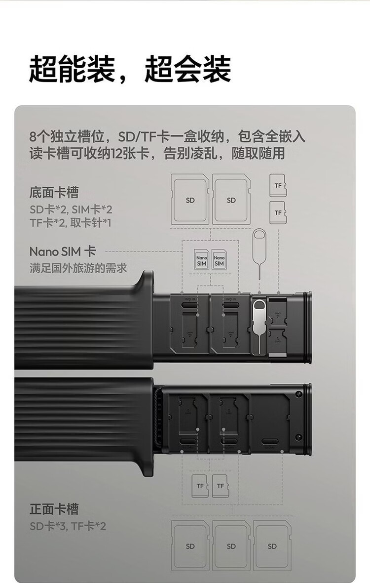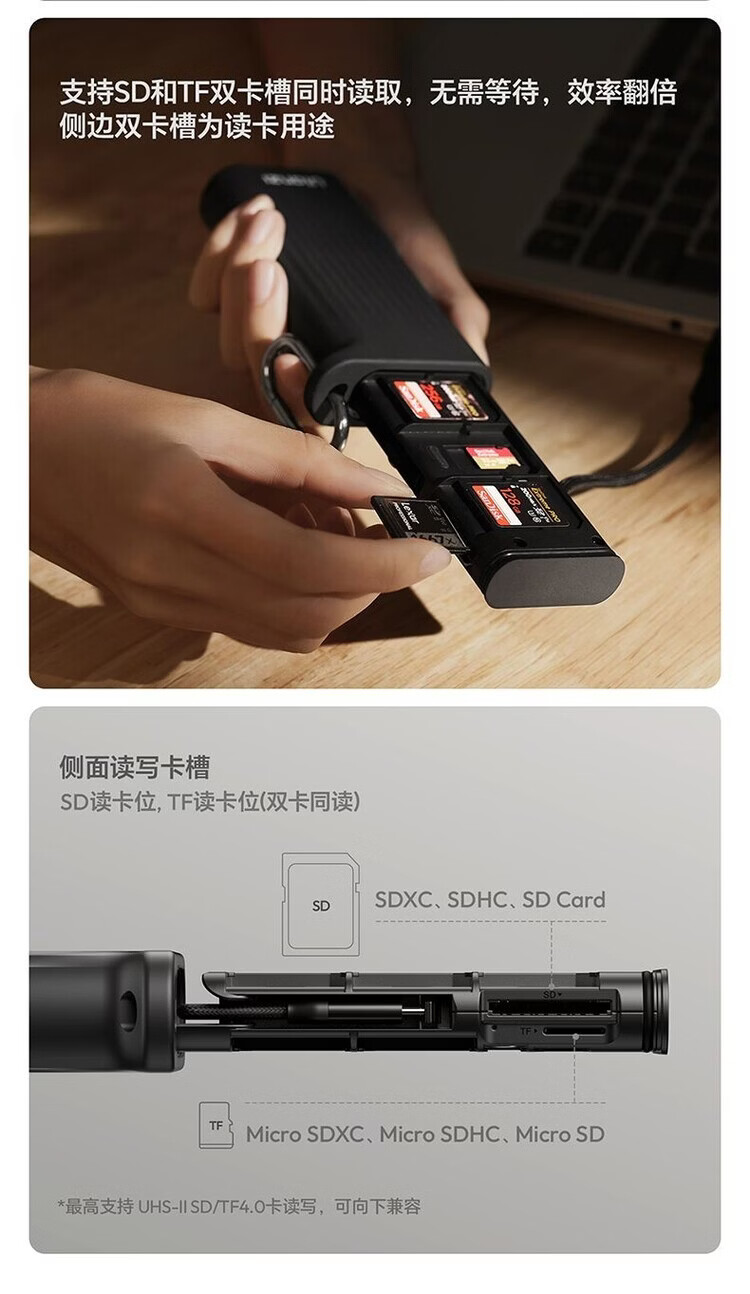 Youbasket card reader CR2-SD flash memory card box SD/TF dual card simultaneous reading high transmission portable card box CR2-SD card box gray