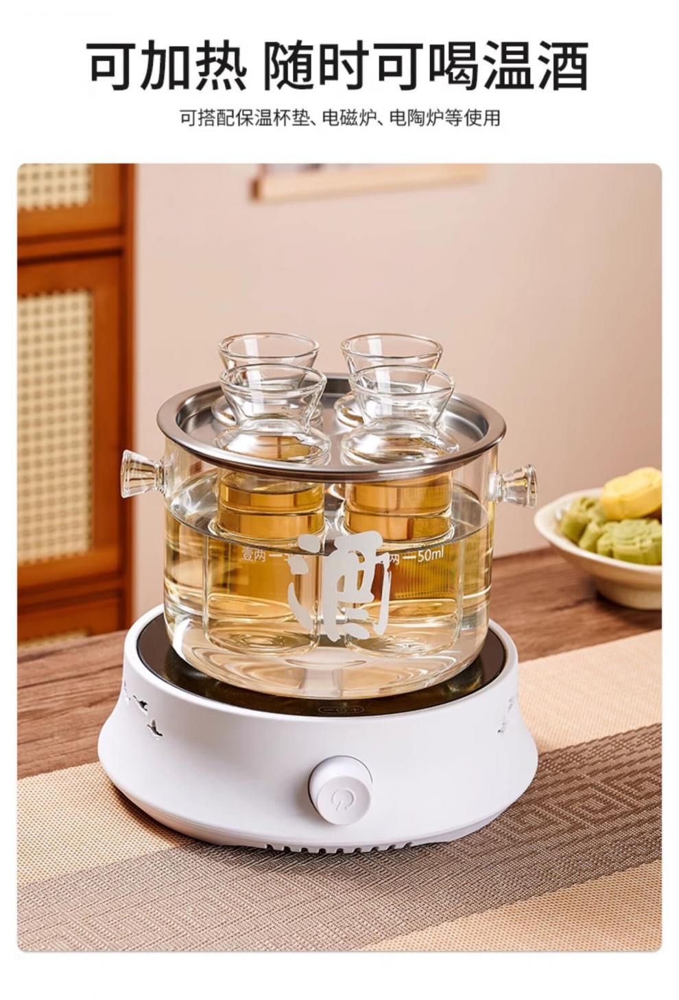 Tuojin German quality wine warmer household Chinese-style liquor cup wine dispenser set winter hot rice wine flower carving special can be added