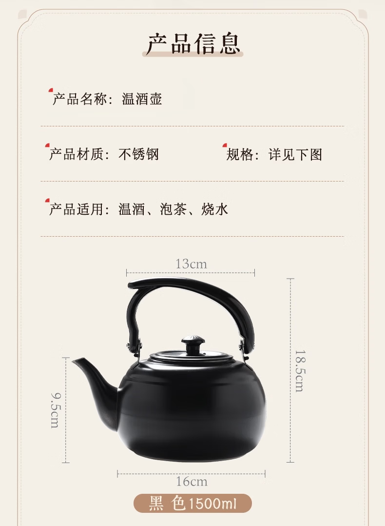 Tuojin German quality wine warmer yellow wine household old-fashioned wine warmer hot wine pot hot wine pot stainless steel wine boiler warm wine wine warmer clear light mirror-1.2L