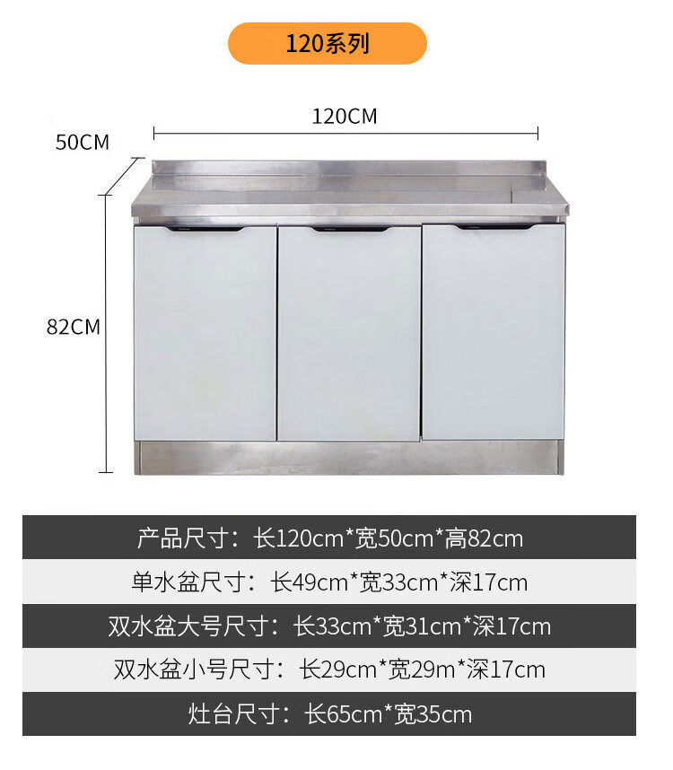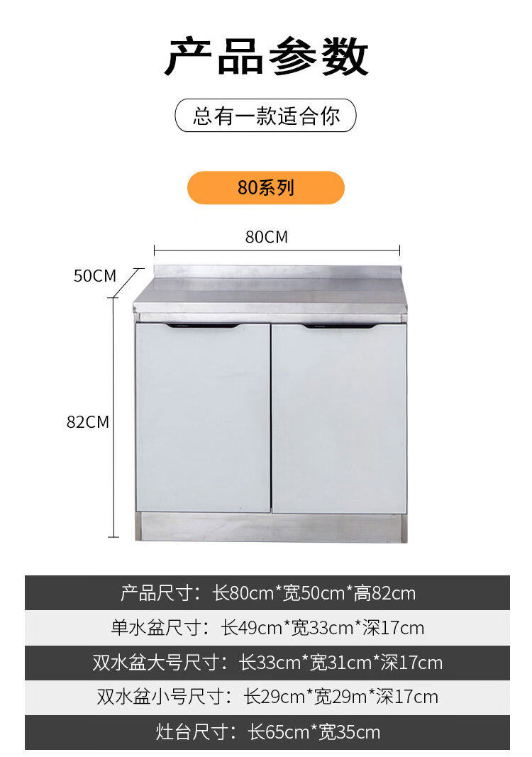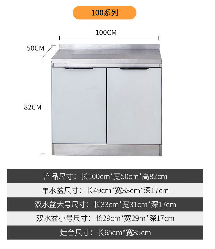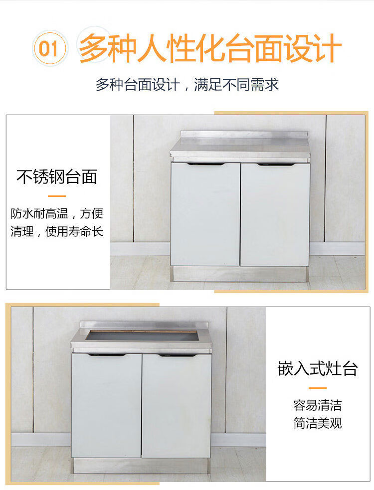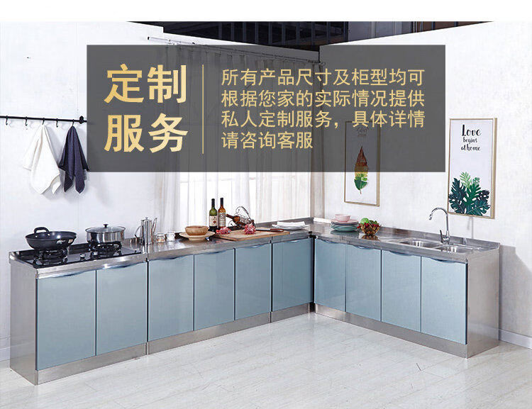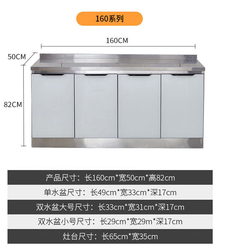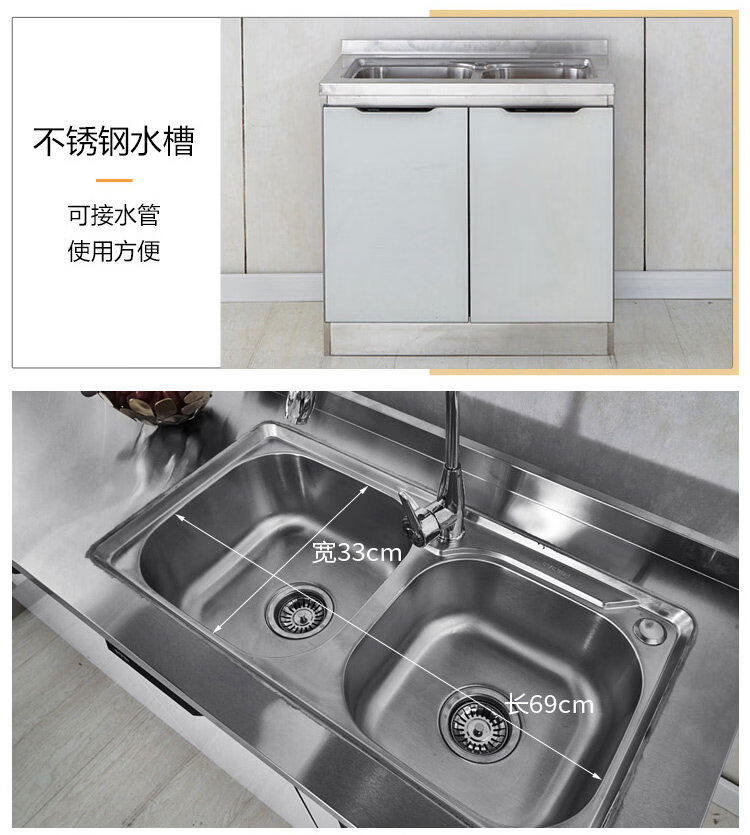 Kitchen cabinets stainless steel stove integrated cabinet cabinet assembly economical all-steel cupboard simple cabinet rental for 80 double door right single basin double door
