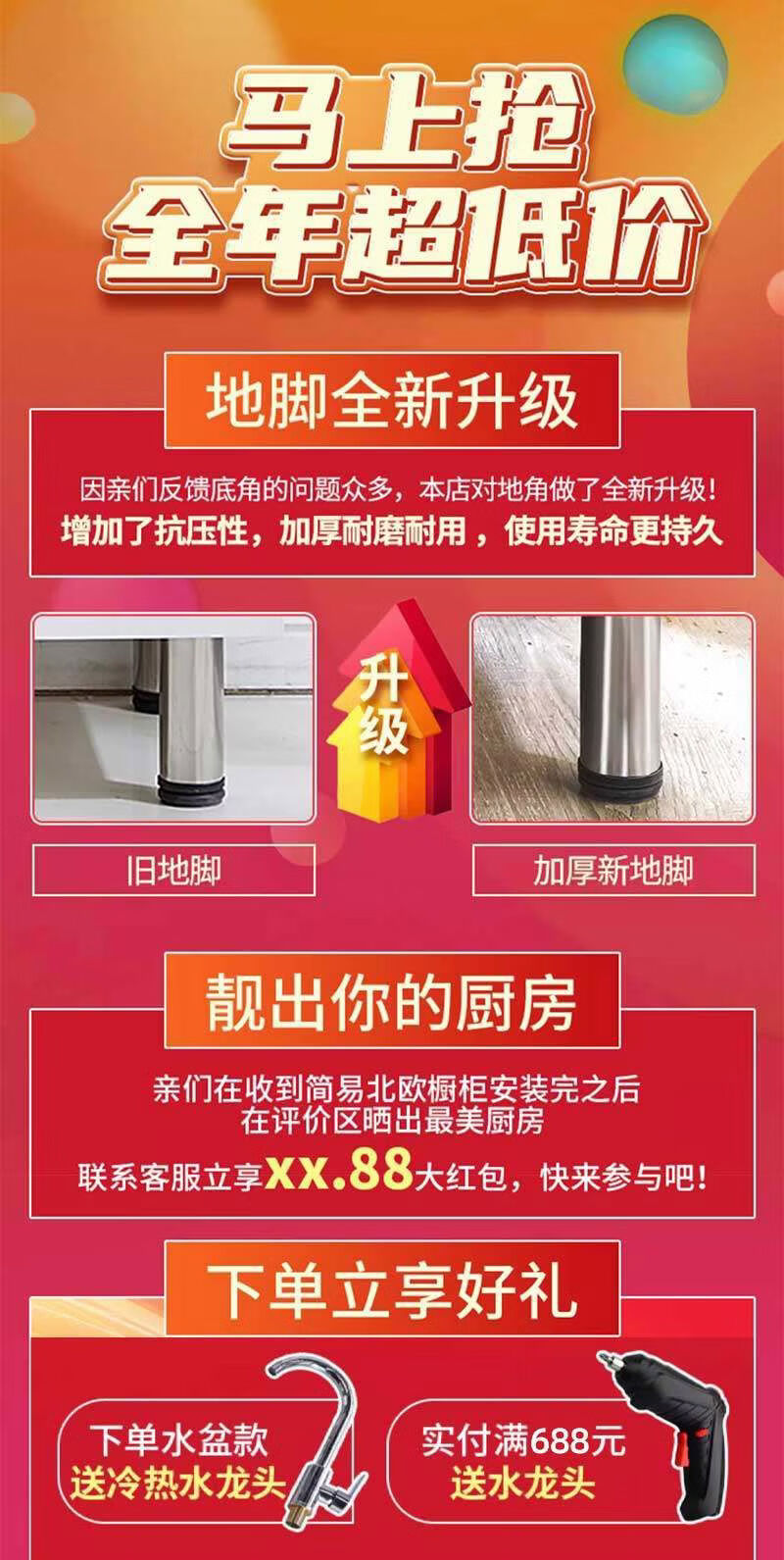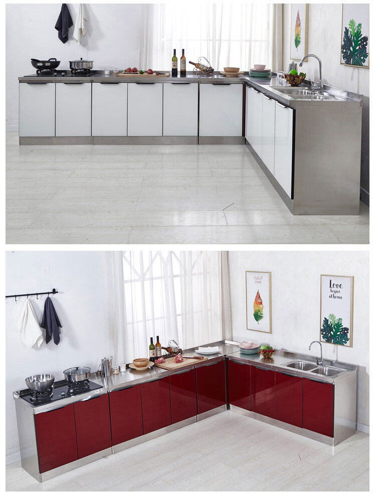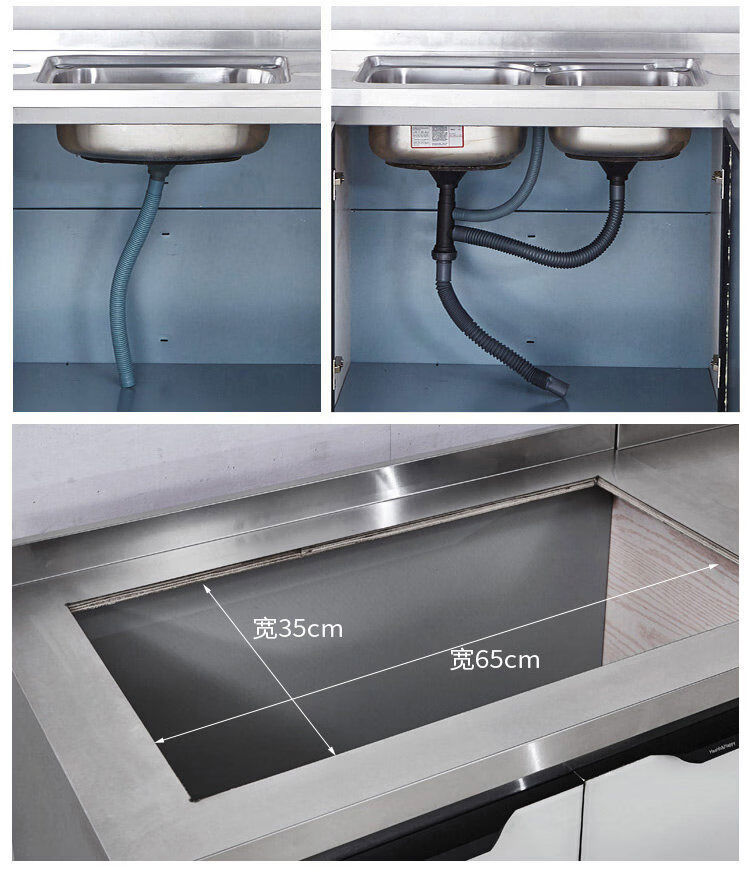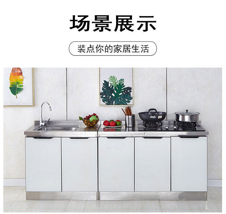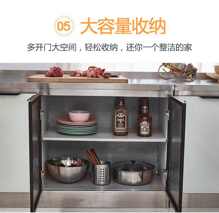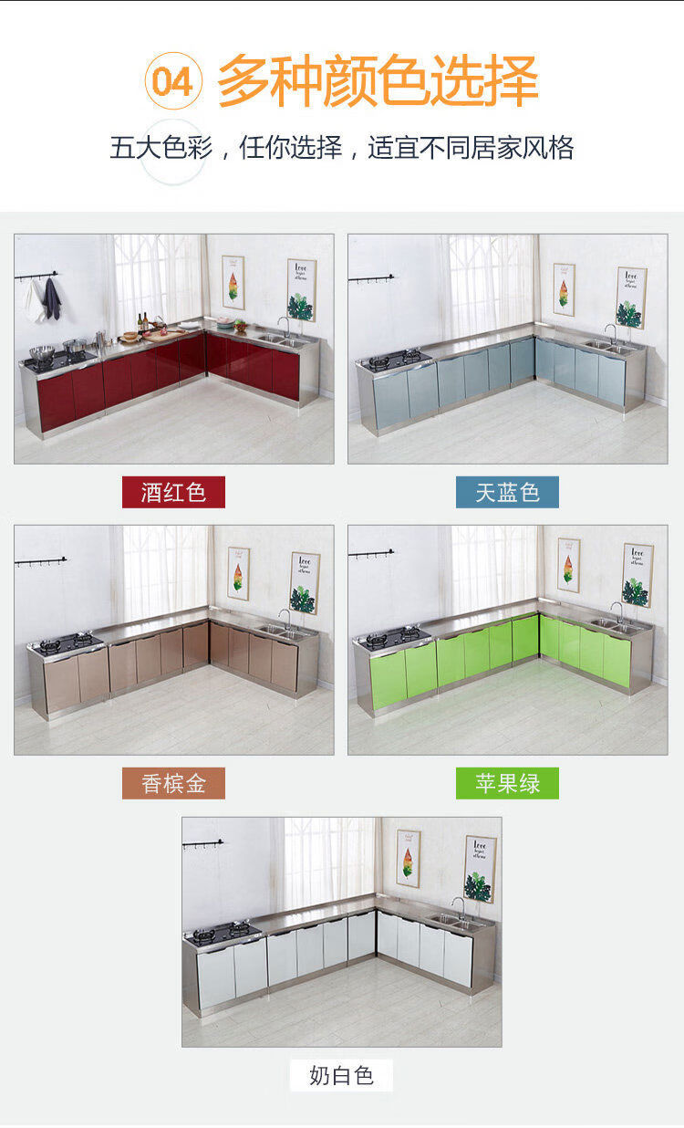 Kitchen cabinets stainless steel stove integrated cabinet cabinet assembly economical all-steel cupboard simple cabinet rental for 80 double door right single basin double door