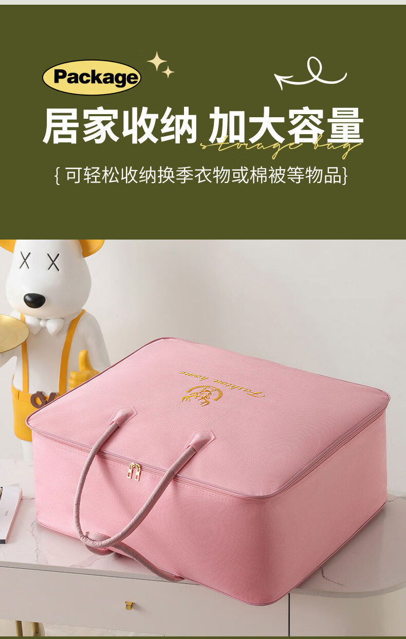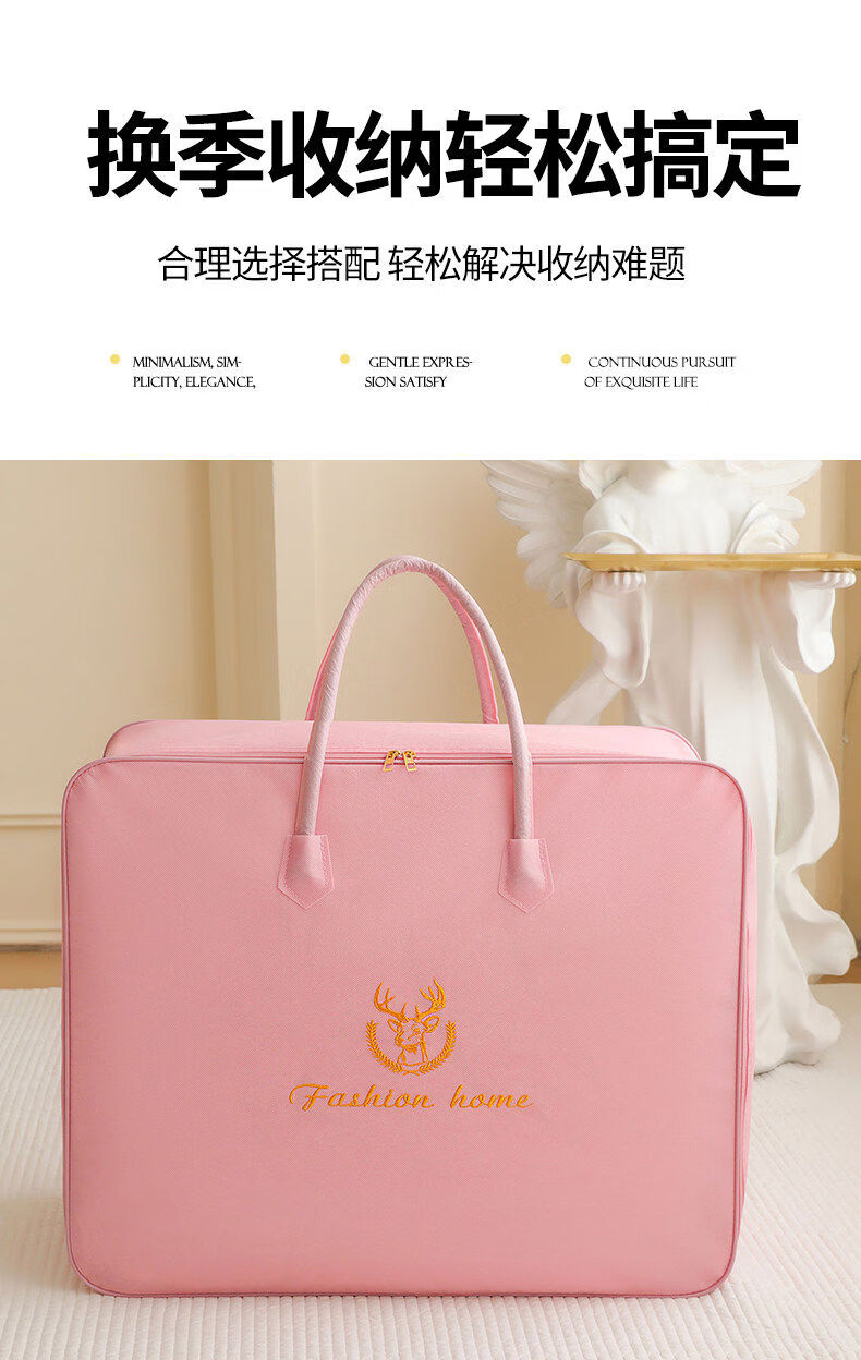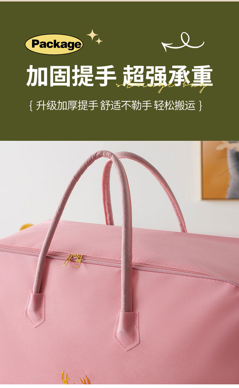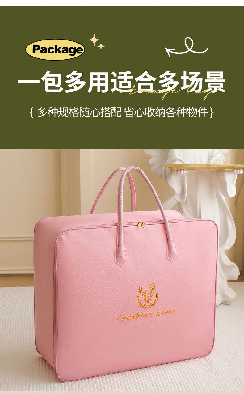 Clothes and quilt storage bag capacity, moving bagging, student dormitory luggage storage bag, waterproof and moisture-proof, small size suitable for 12 catties thin quilt, Lucky Deer Pink Steel Style