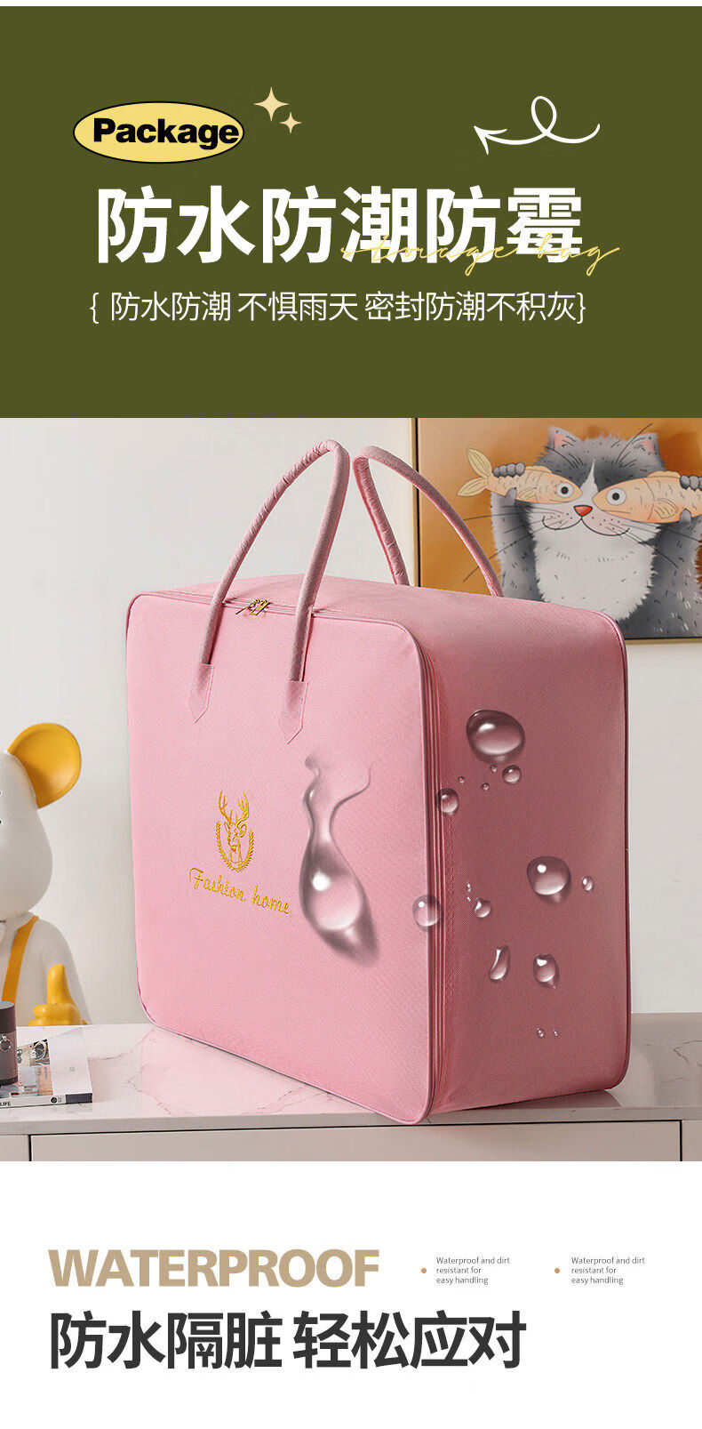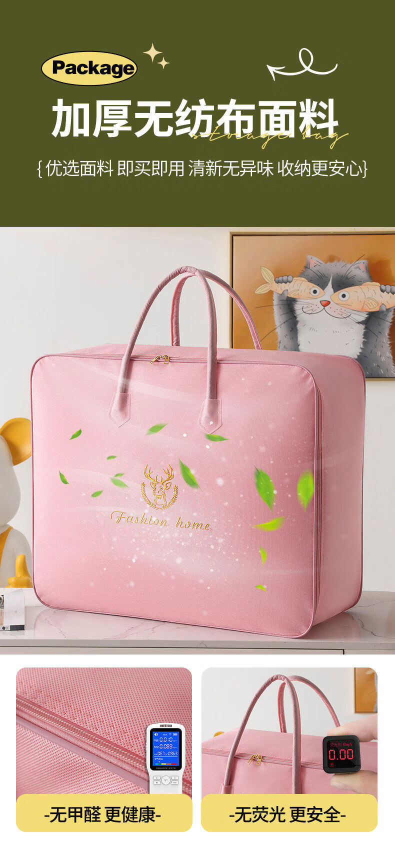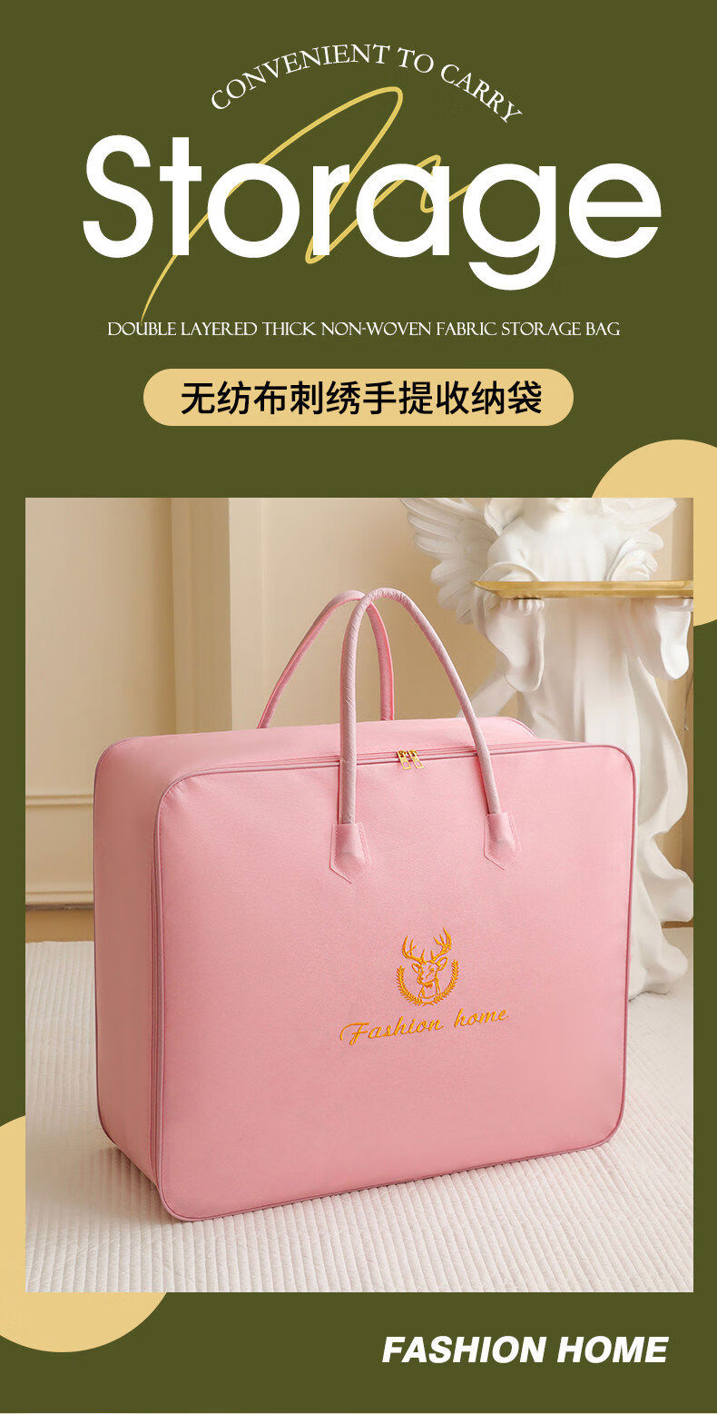 Clothes and quilt storage bag capacity, moving bagging, student dormitory luggage storage bag, waterproof and moisture-proof, small size suitable for 12 catties thin quilt, Lucky Deer Pink Steel Style