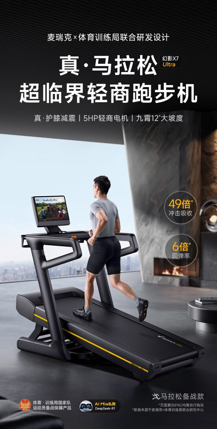 MERACH commercial grade Phantom X7Ultra treadmill intelligent variable speed super fat burning Tai Chi shock absorption black color screen model