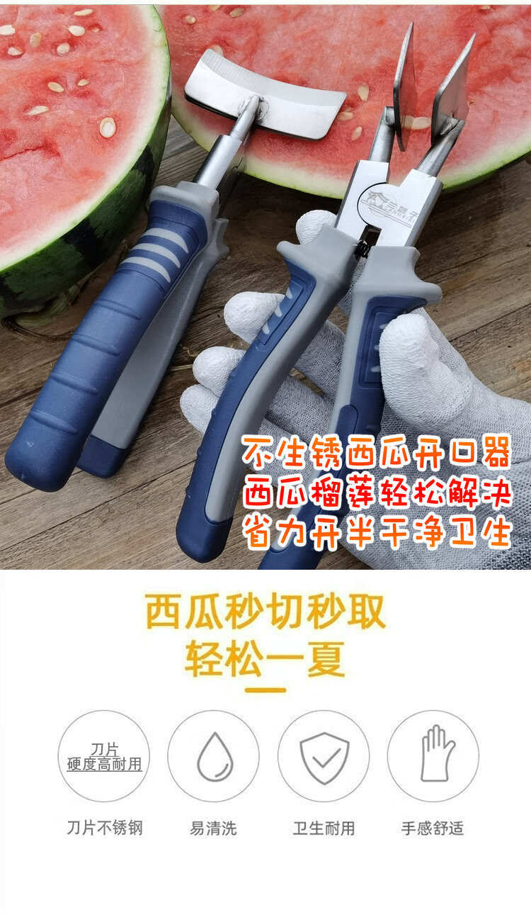 Cat melon opener, melon breaker tool, melon opener, melon clip, melon cutter, melon breaker, nickel-plated melon opener, gray long handle model 1