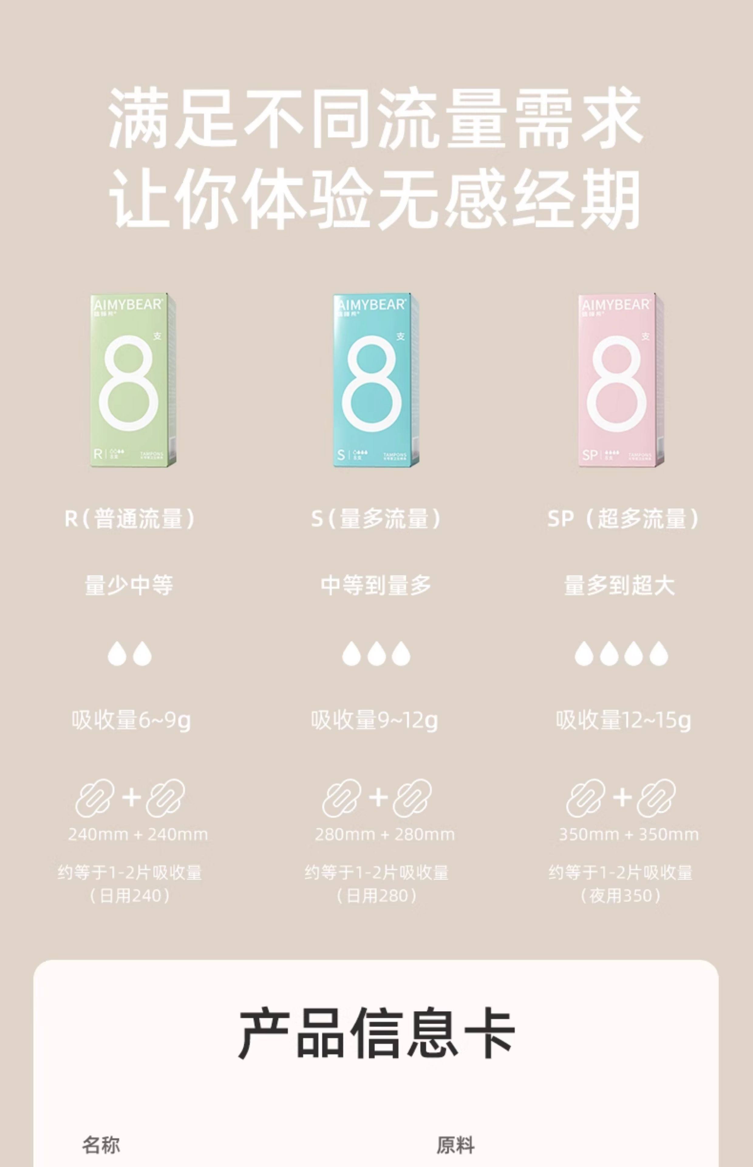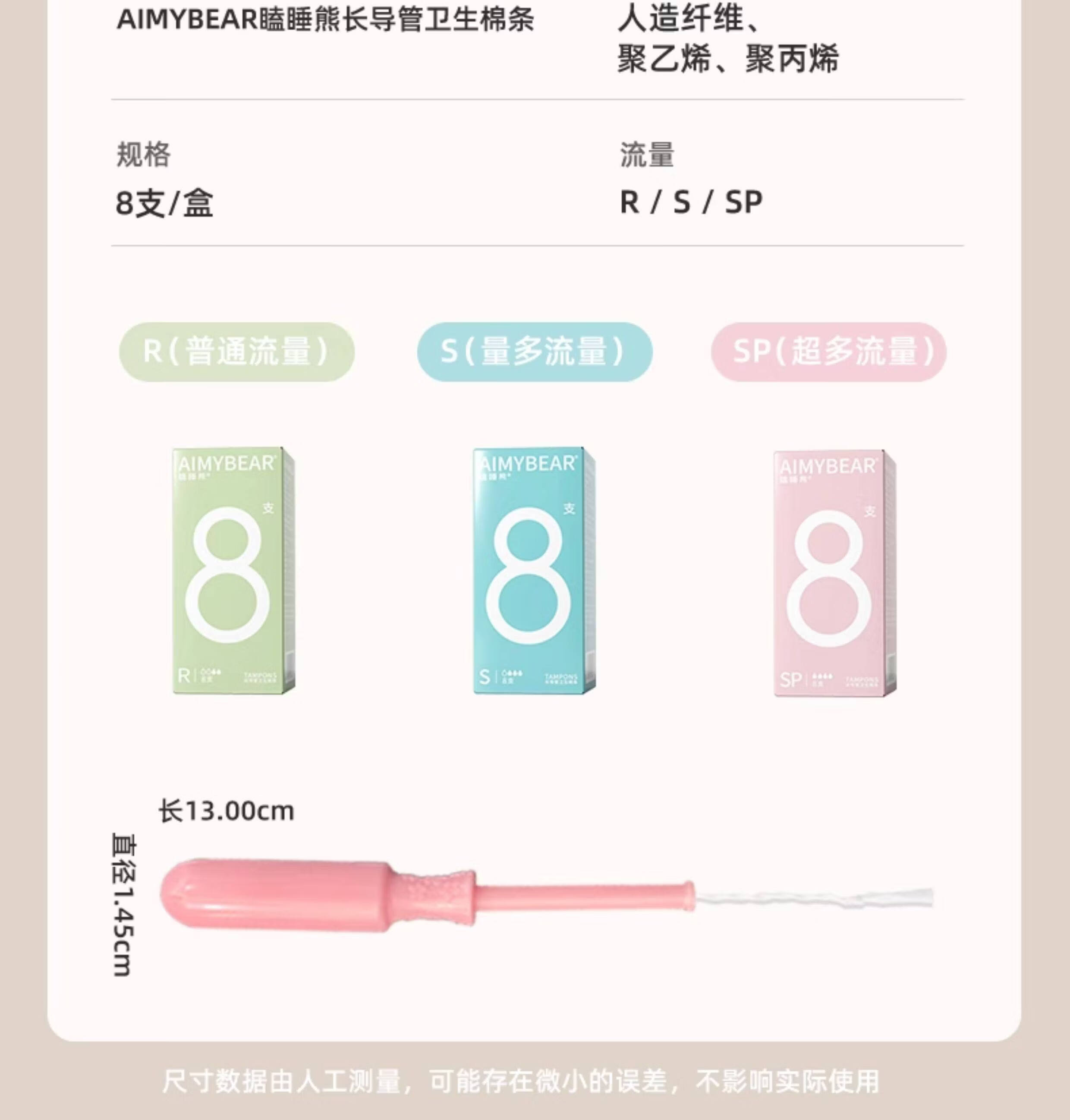 Sleepy Bear AIMYBEAR long duct tampon with built-in sanitary napkin, non-sensory and easy to push long duct 32 pieces combination upgrade 32 pieces normal 1+large 1+extra large 2 R8+S8+S7 others
