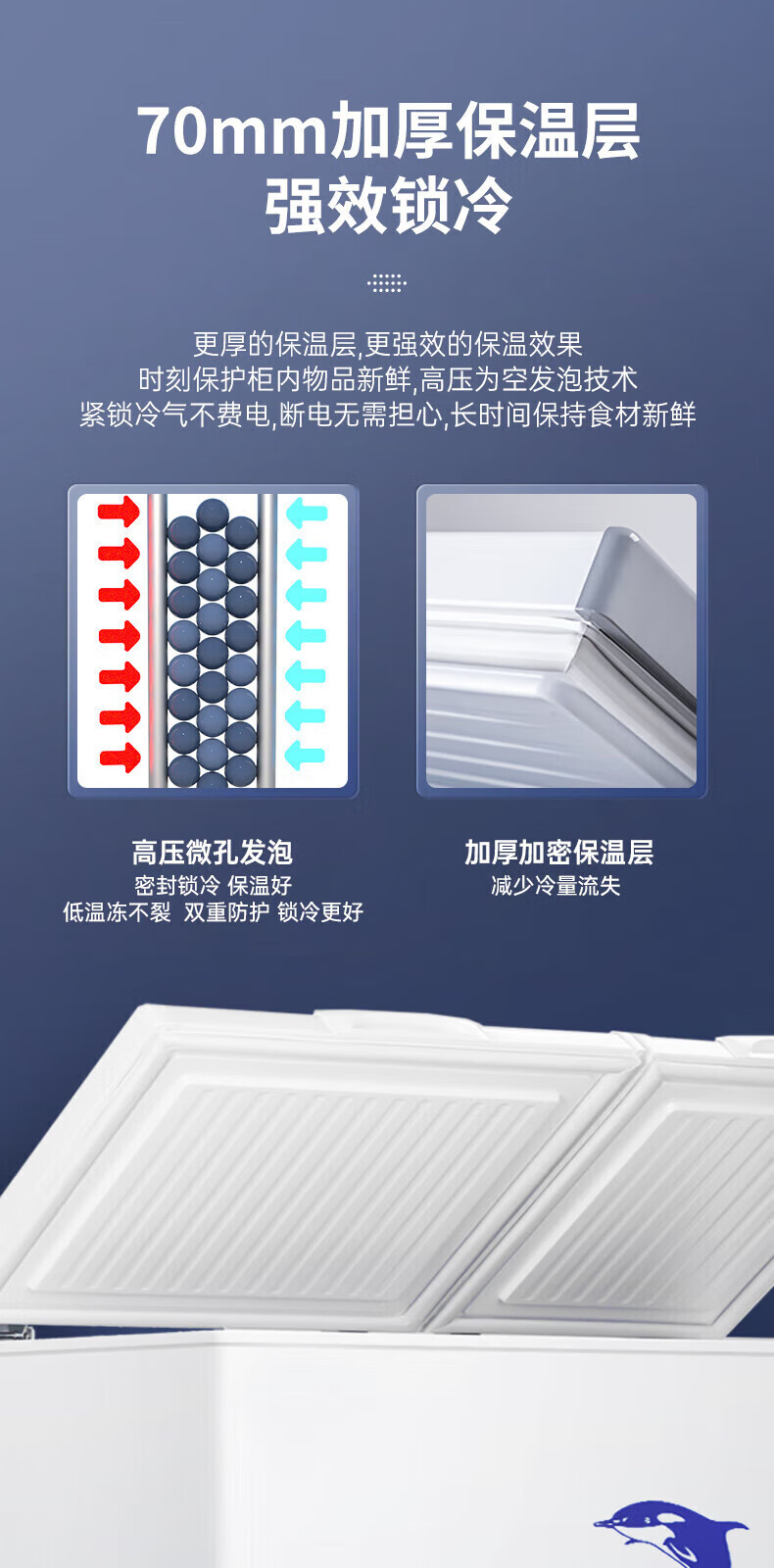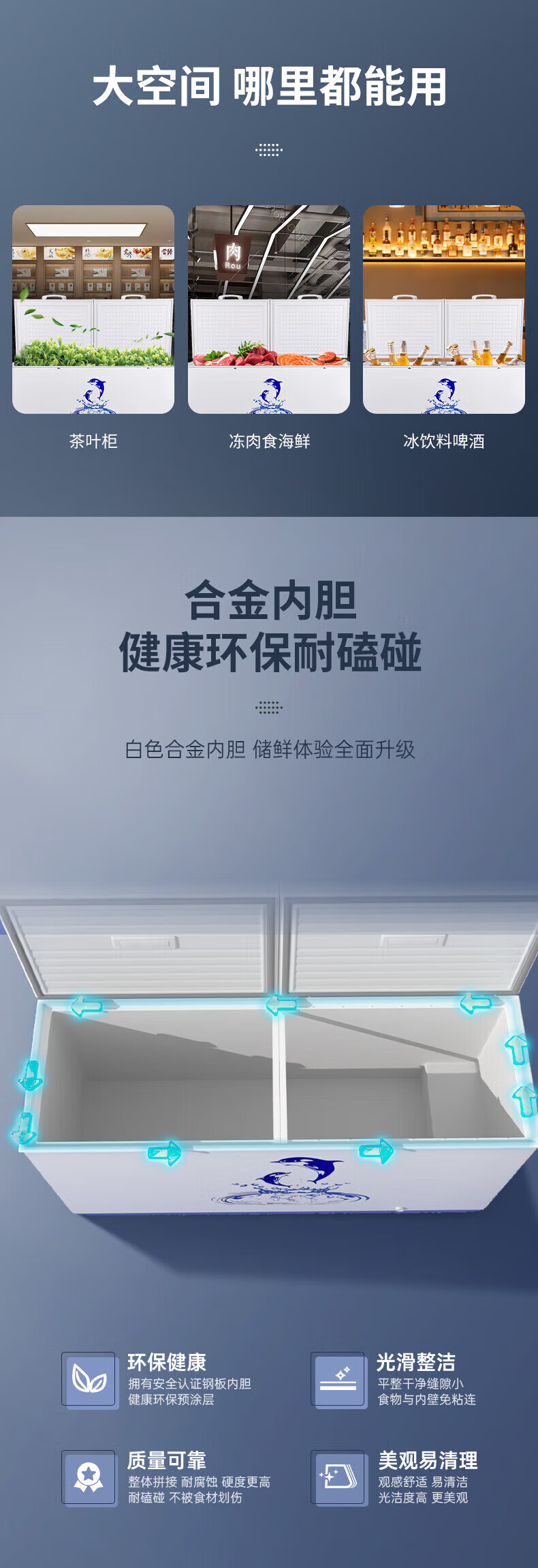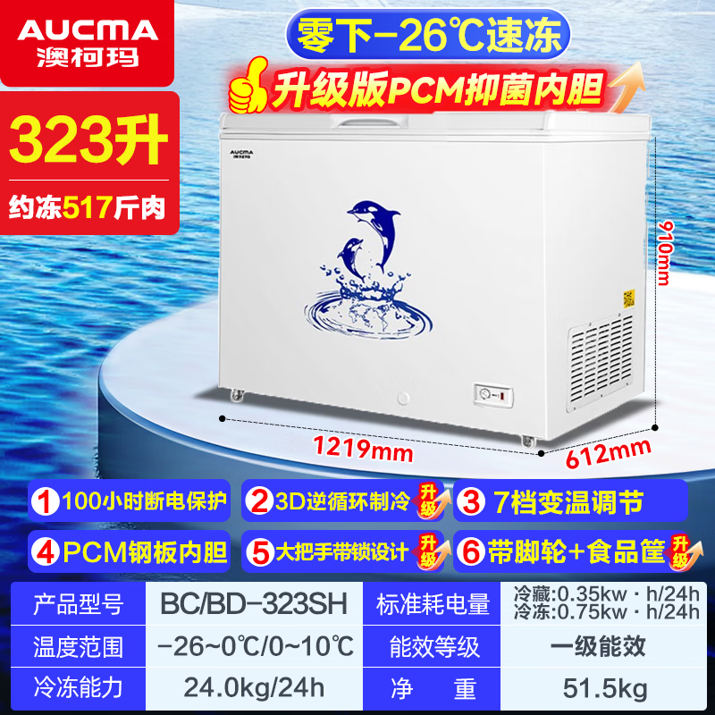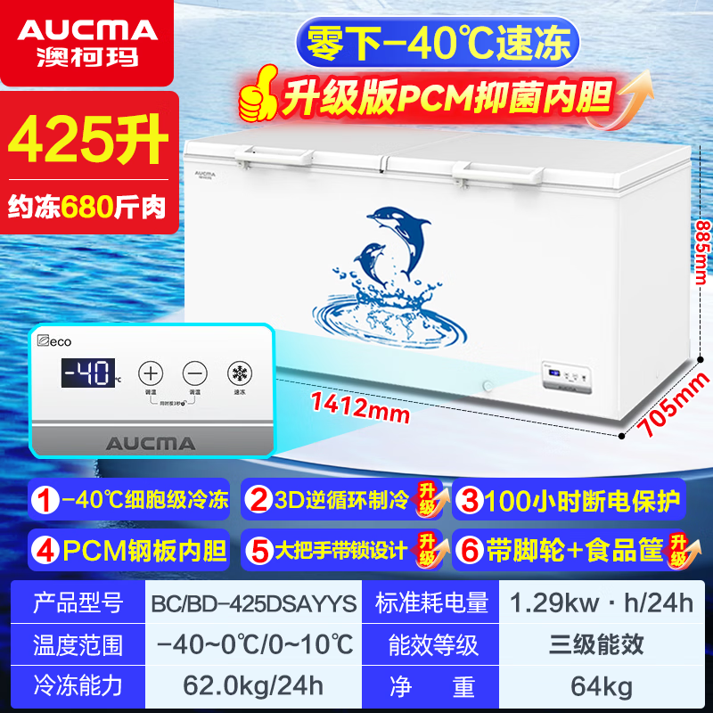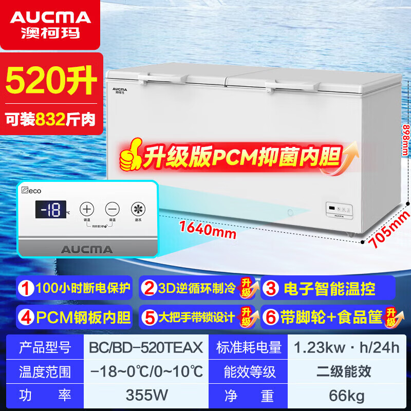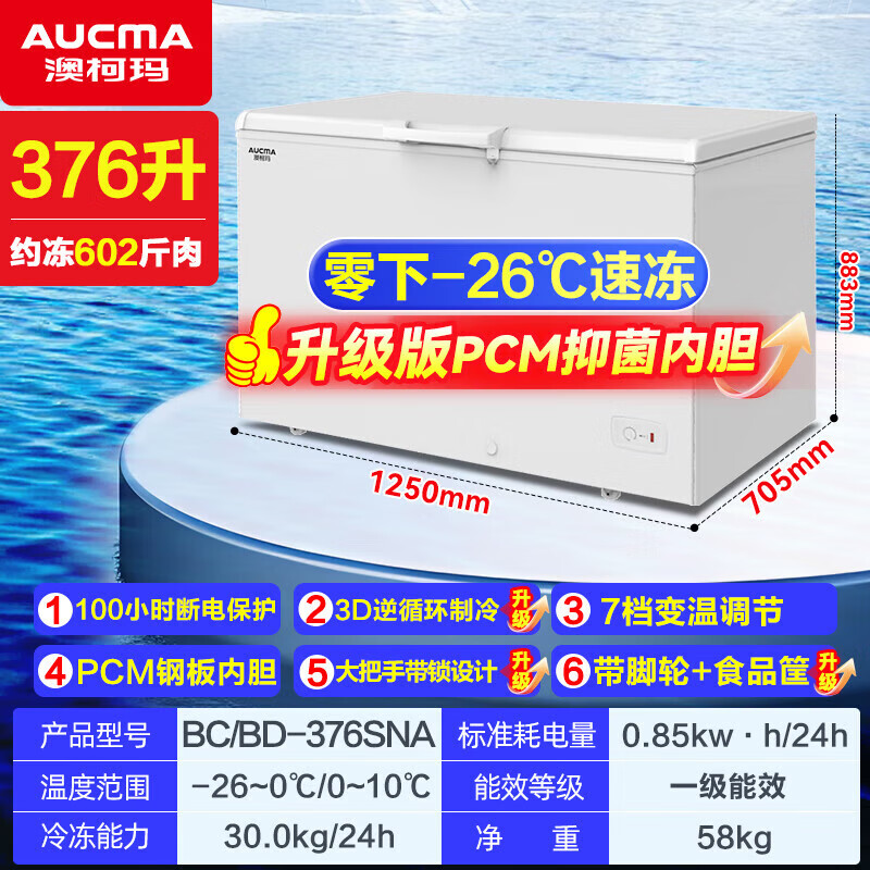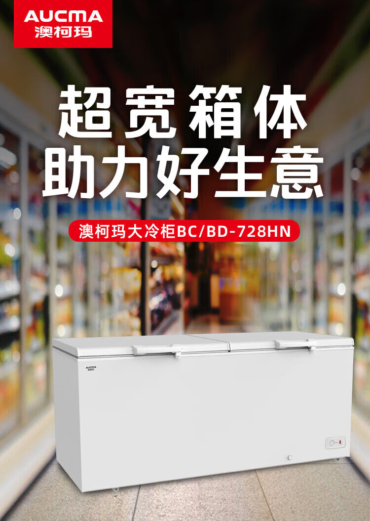 AUCMA Freezer Commercial Large Capacity 518 liters or more Single Temperature Refrigerated Freezer Dual-Purpose Freezer Double Door Horizontal Refrigerator Ice Cream Cabinet Supermarket Convenience Store Supply and Sales -40 Deep Freezing Quick Freezing Air Cooling Frost-free Level 1 Energy Efficiency 306 Liters