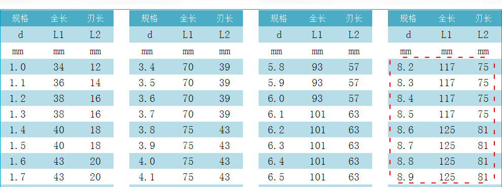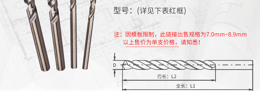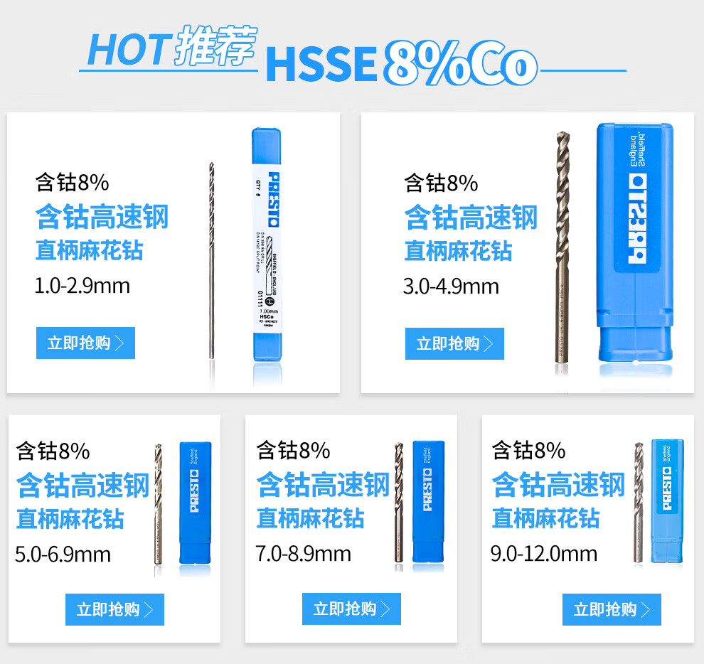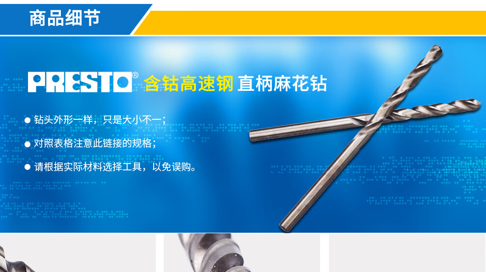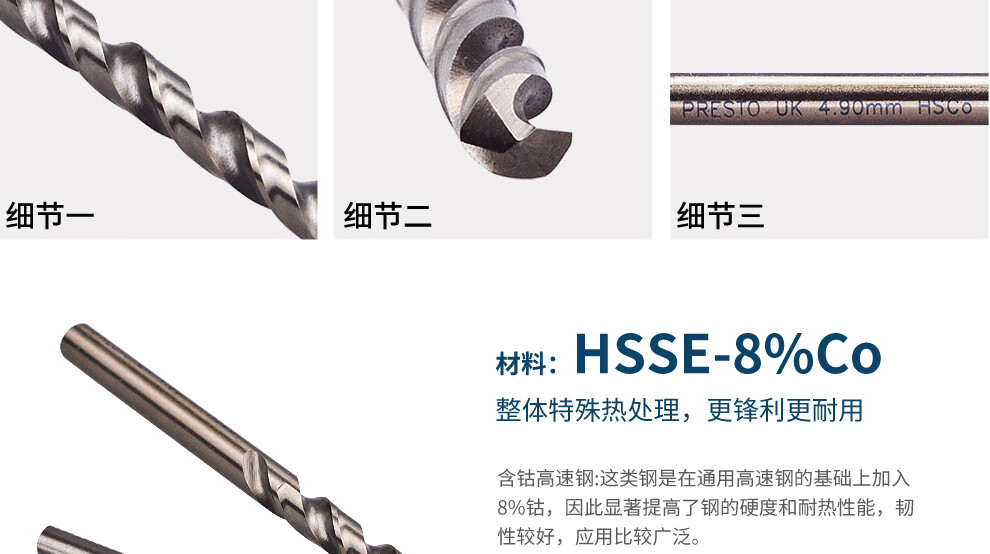 PRESTO drill bit Cobalt-containing high-speed steel straight shank twist drill 7.0~8.9mm drill tip 01111 8.0mm (single pack)
