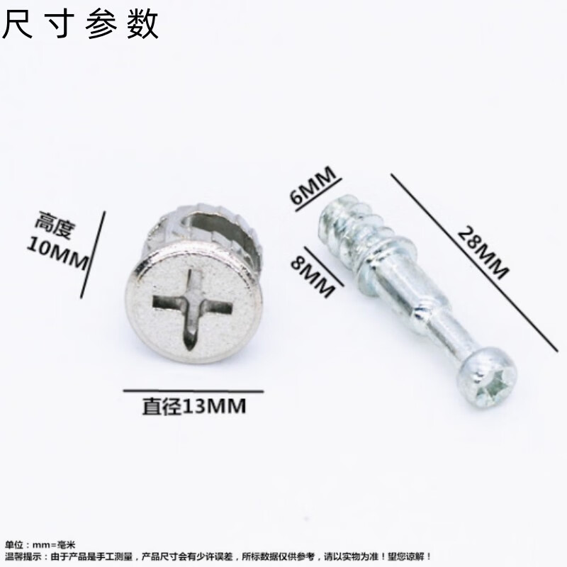 Phil solid thickened two-in-one connecting piece furniture hardware bedclothes cabinet fastening eccentric wheel self-tapping iron rod nut assembly self-tapping rod + diameter 13 eccentric wheel = 10 sets quantity