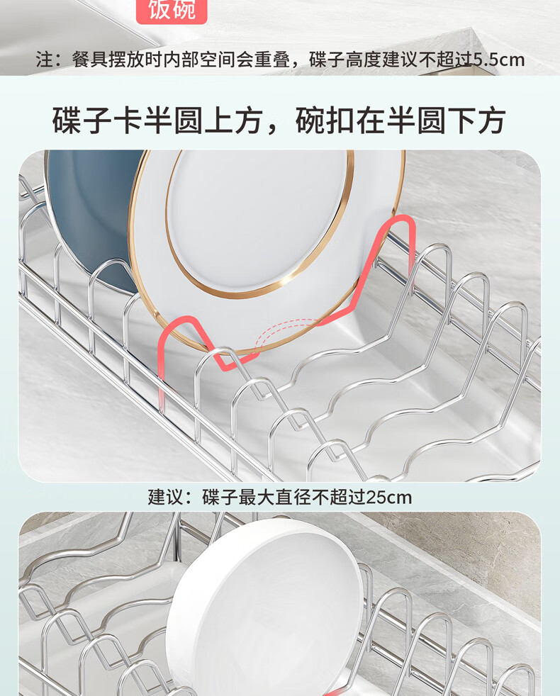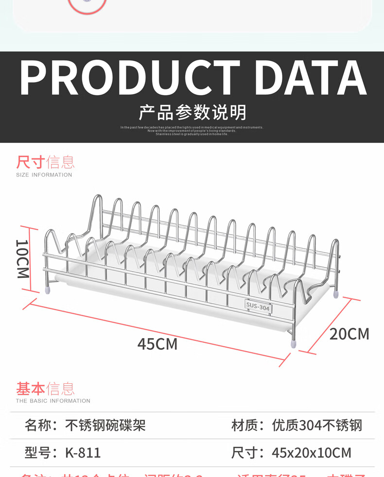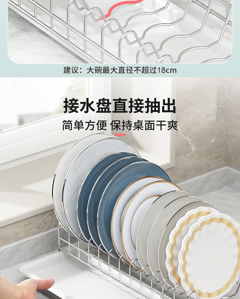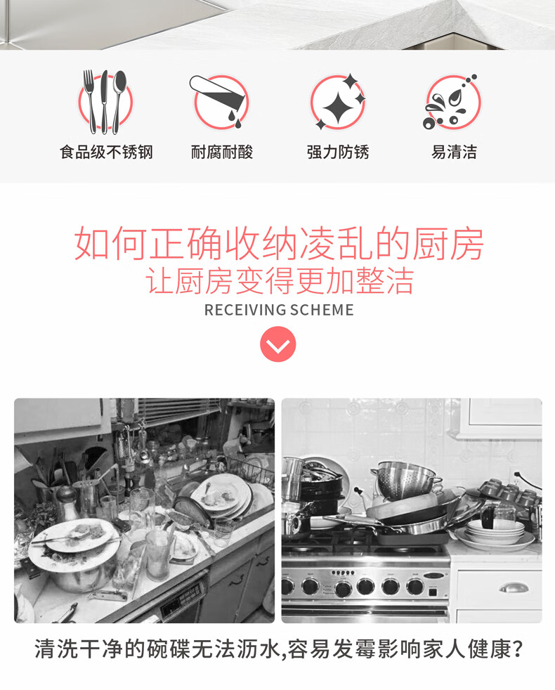 DELWINS dish rack single layer dish rack drain rack 304 stainless steel kitchen storage rack storage dish rack dish rack drain basket