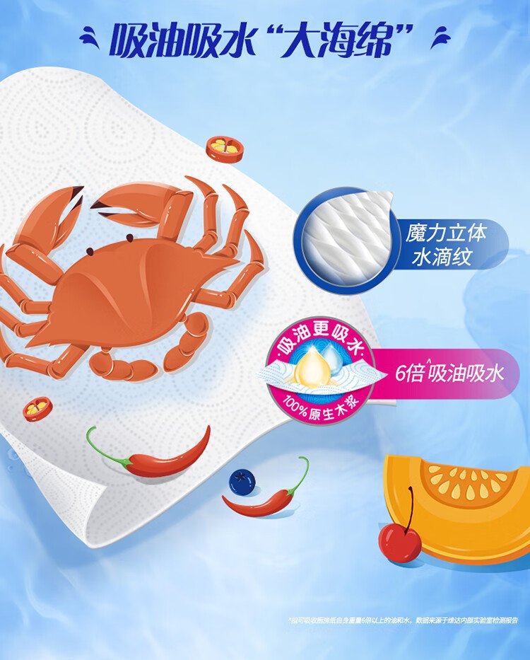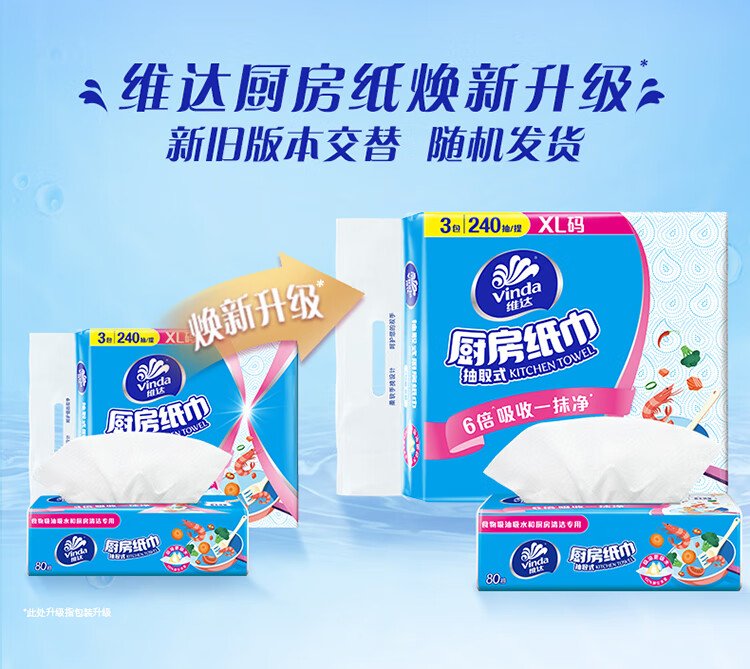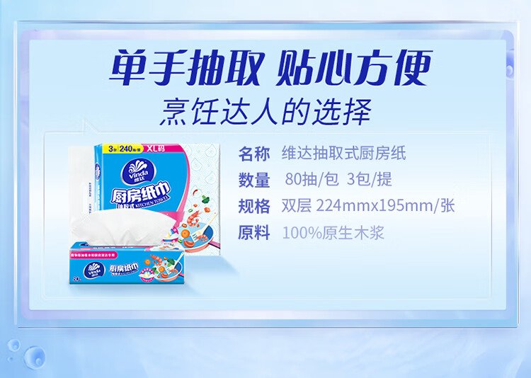 Vinda kitchen paper 80 paper towels * 3 packs 6 times oil and water absorption kitchen paper lazy rag oil absorbing paper towels