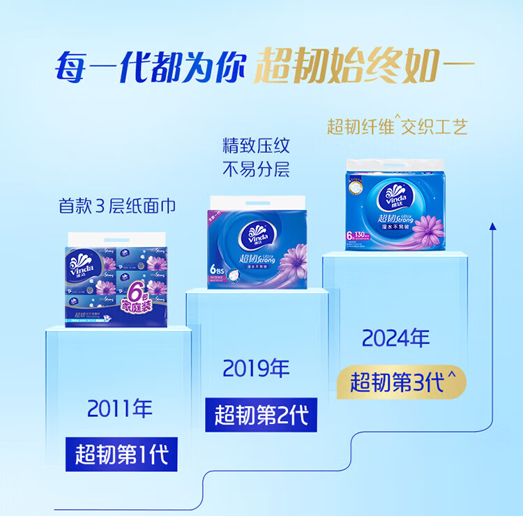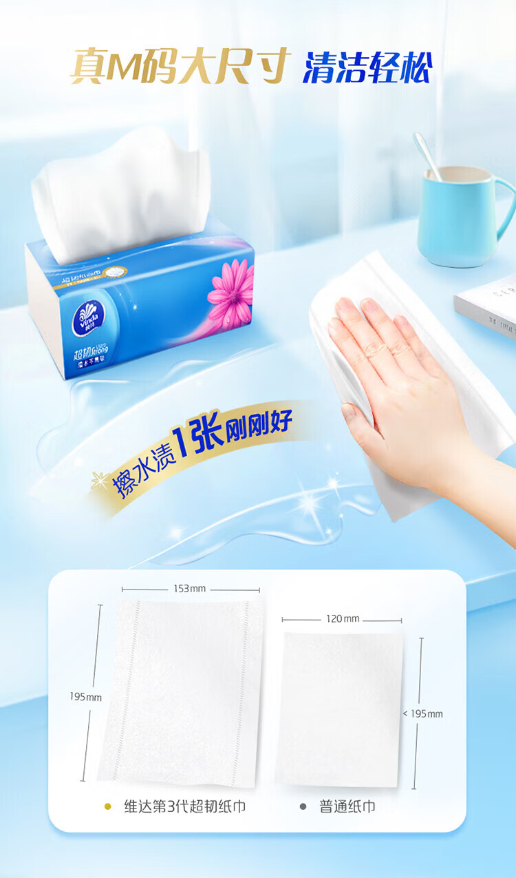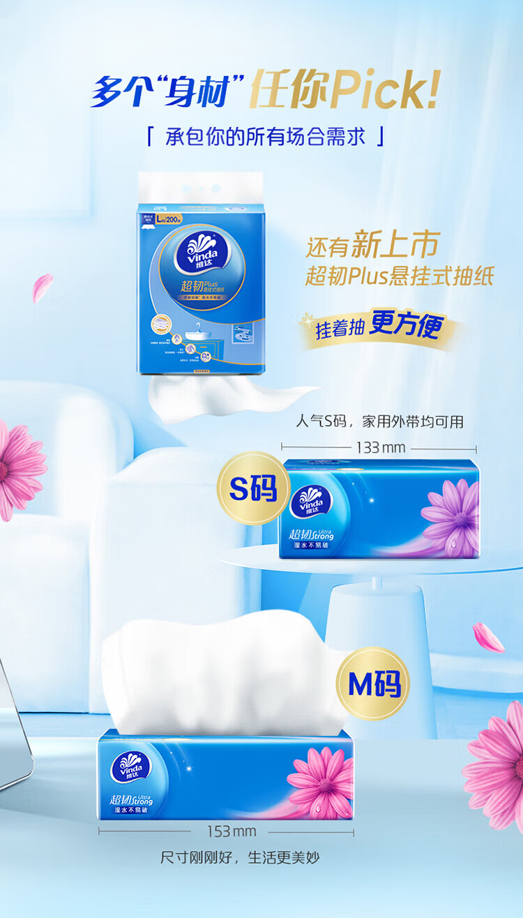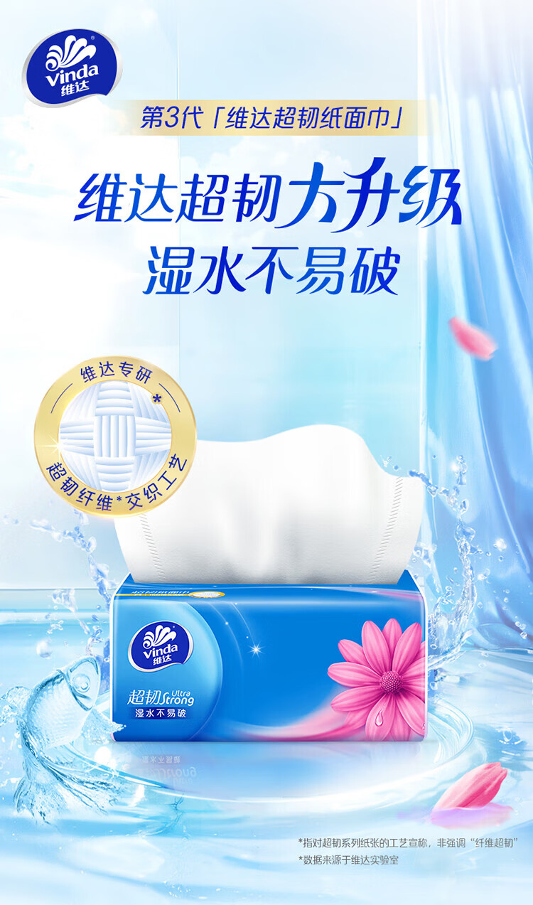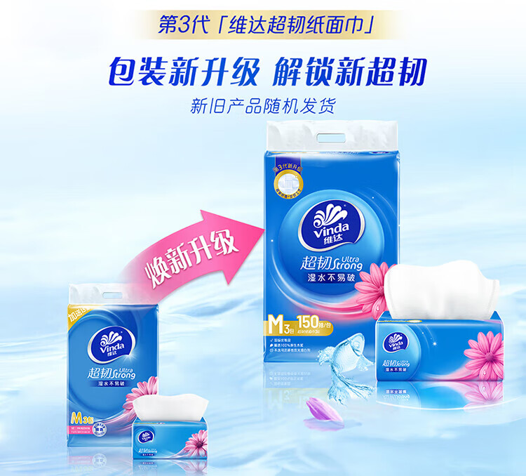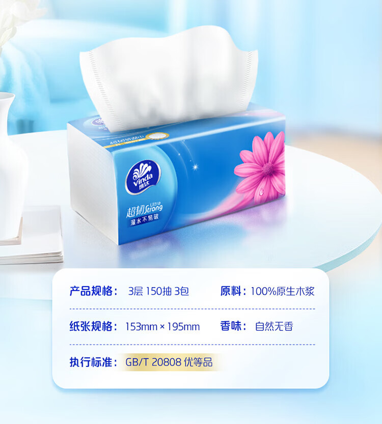 Vinda tissue paper, super tough 3-layer 150 tissue*3 pack M size, not easy to break when wet, toilet paper, paper towel, napkin, paper tissue