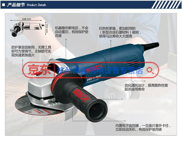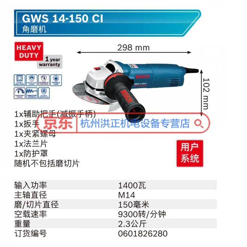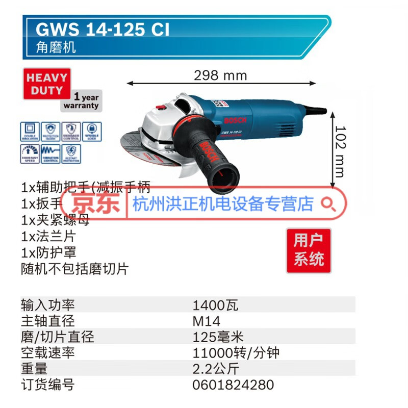 Bosch (BOSCH) industrial grade large angle grinder large diameter polisher GWS14-125CI/14-150C high power cutting polisher GWS14-125CI 125mm 1400W