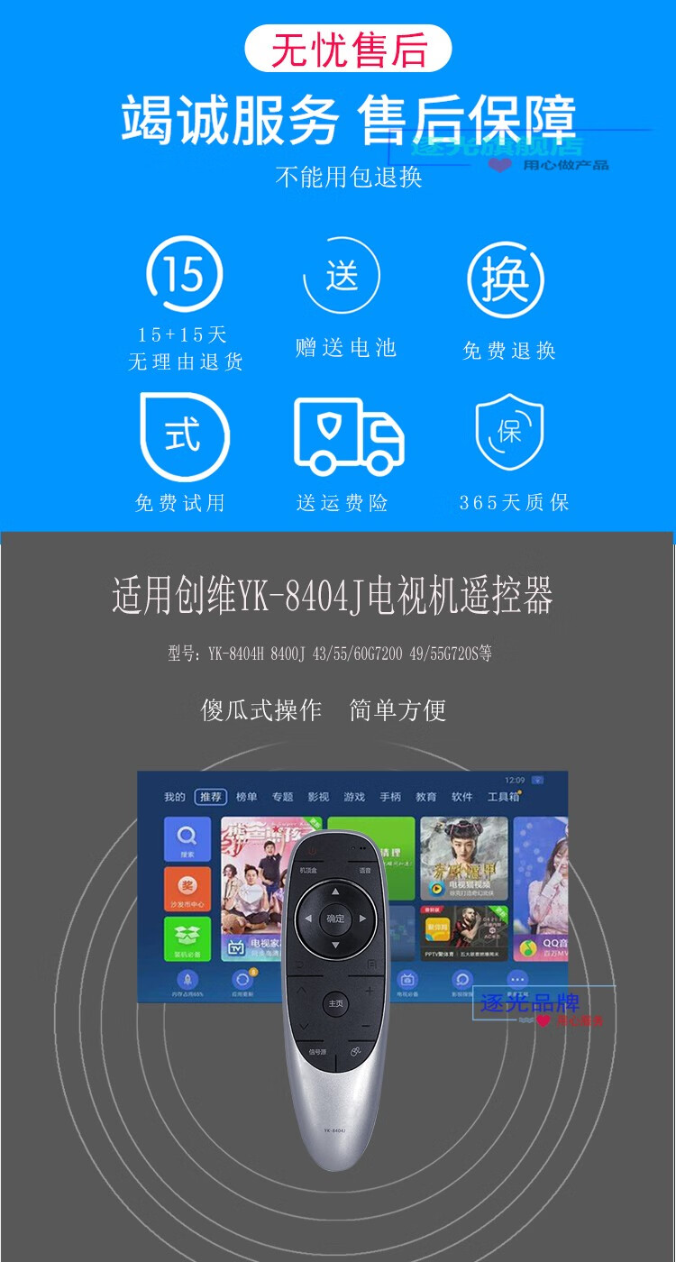 Zhuguang is suitable for Skyworth smart TV remote control YK-8404J 43G7200 pass 8404H 8400J no voice