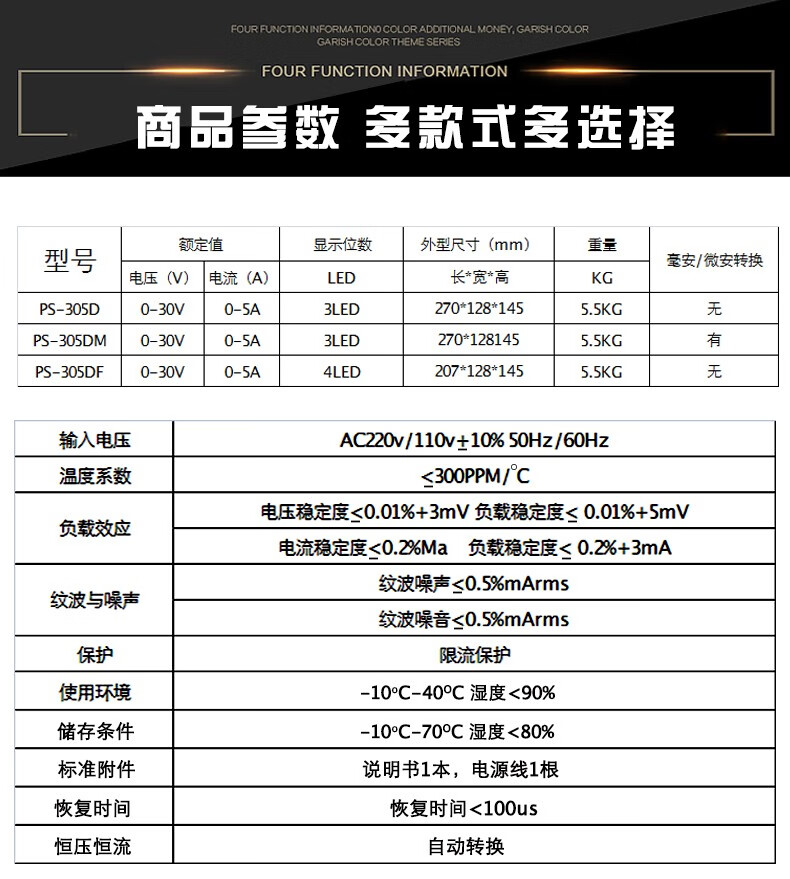 Longwei linear digital display DC regulated power supply adjustable power supply repair notebook constant current constant voltage power supply meter 30V60V5A PS-305D 30V5A