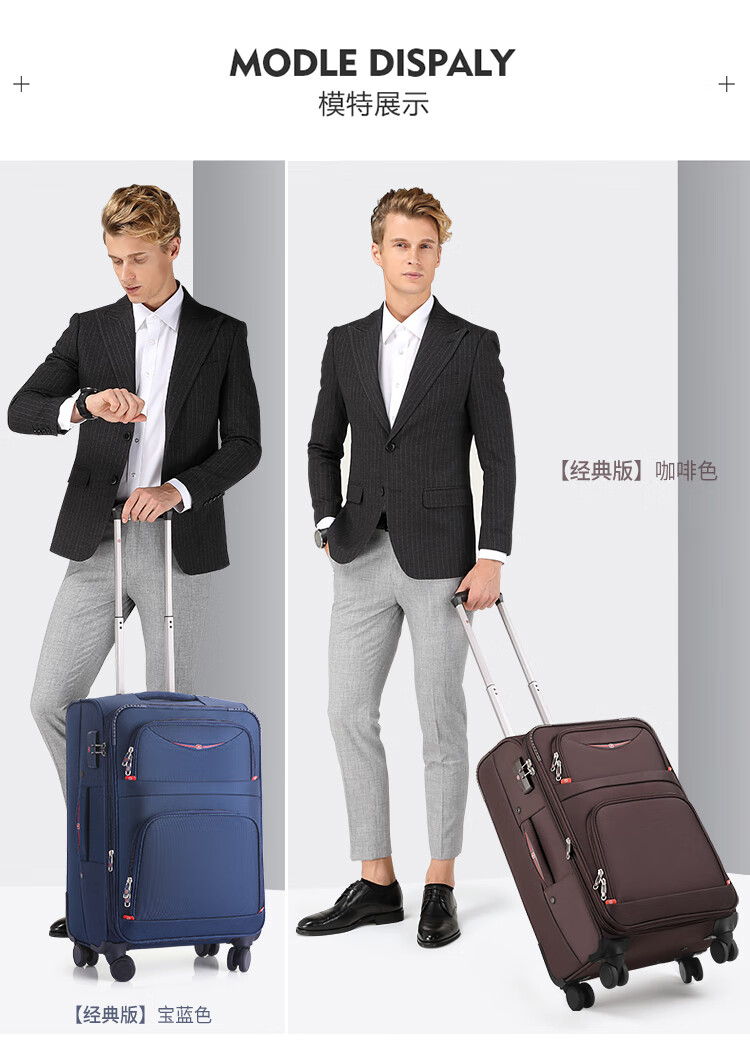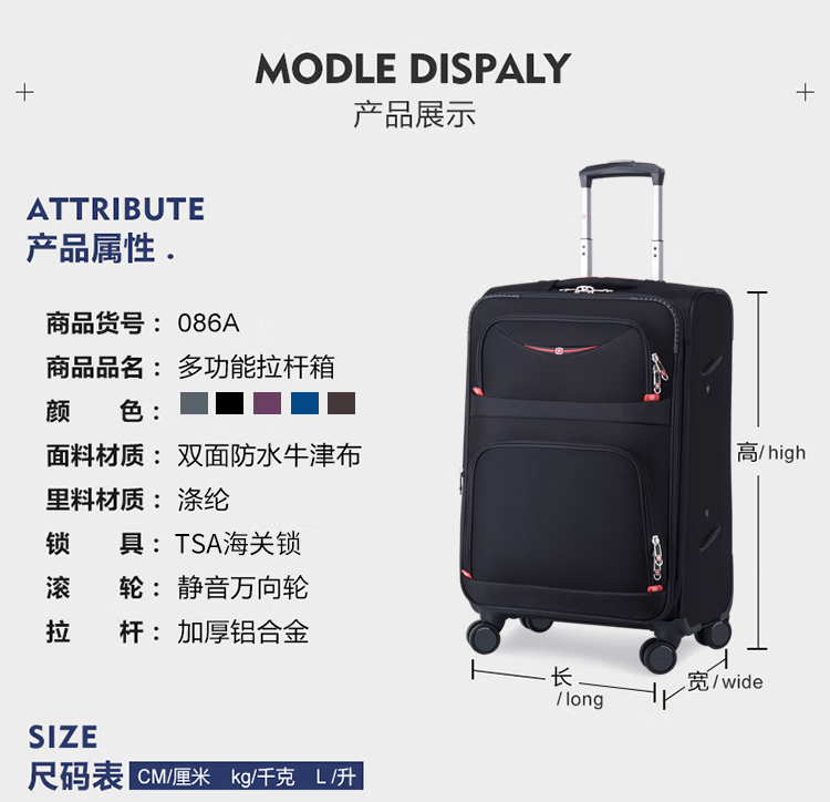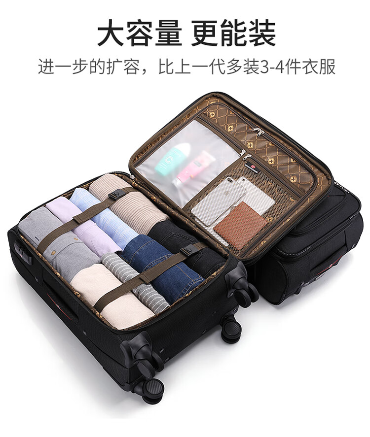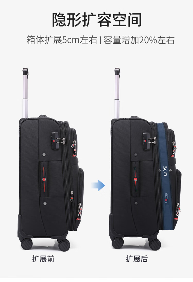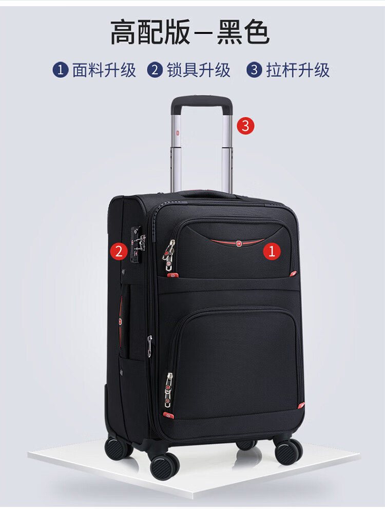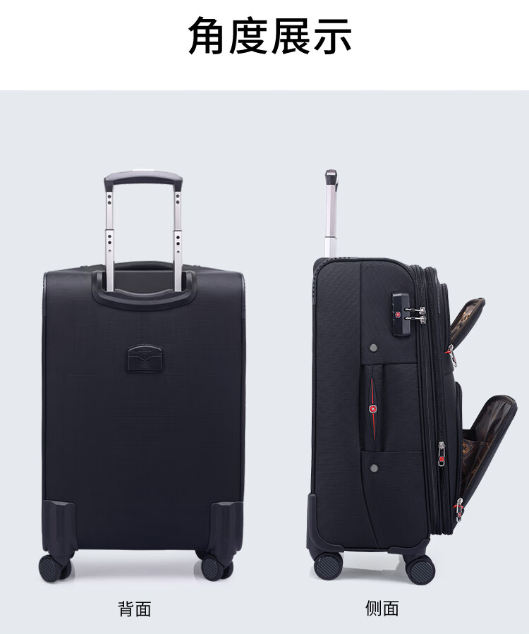 Rambo Saber suitcase, Oxford trolley case, business travel case, boarding case, canvas password box, extra large capacity case, soft case 086A black 18 inches