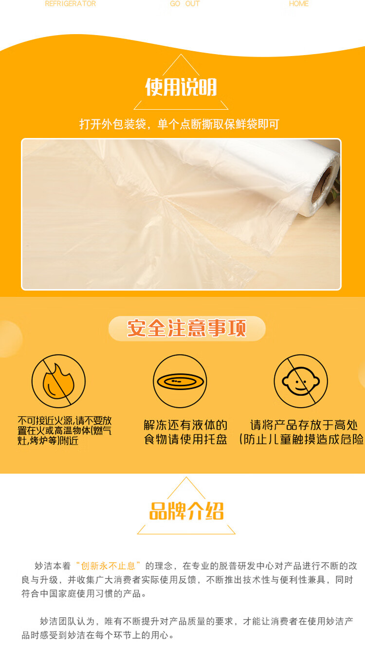 Miaojie small fresh-keeping bags 120 pieces point-break plastic food bags kitchen supermarket