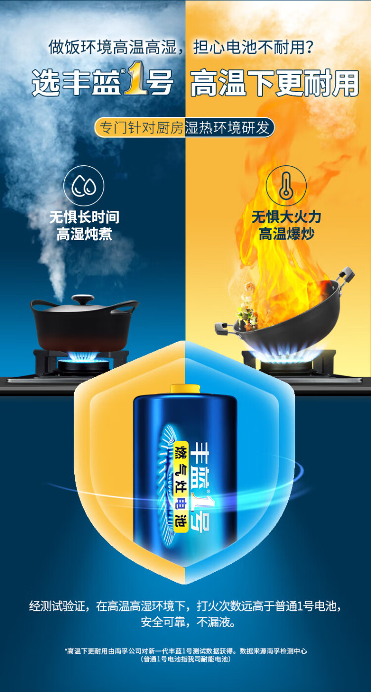 Fenglan No. 1 Little Yellow Hat Gas Stove Battery Large No. 1 Battery 2 Pack Suitable for Water Heater/Gas Stove/Water Heater/Radio/Flashlight, etc. R20P
