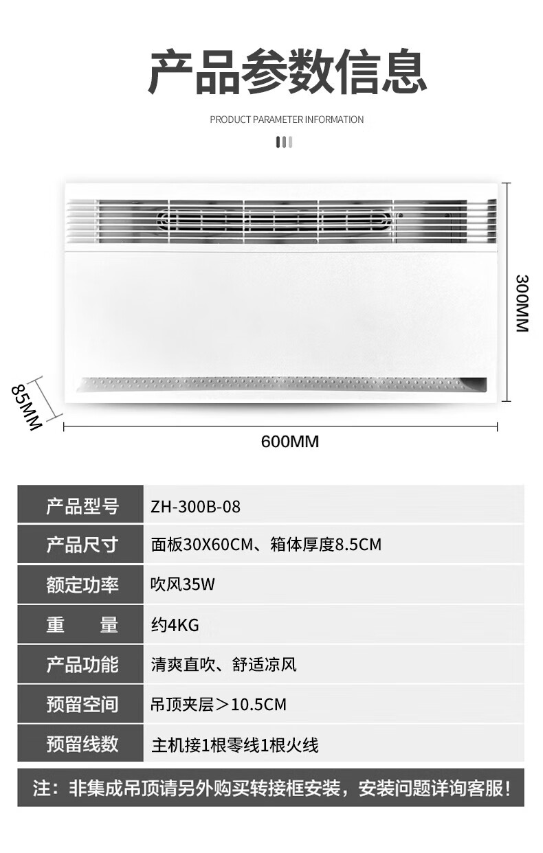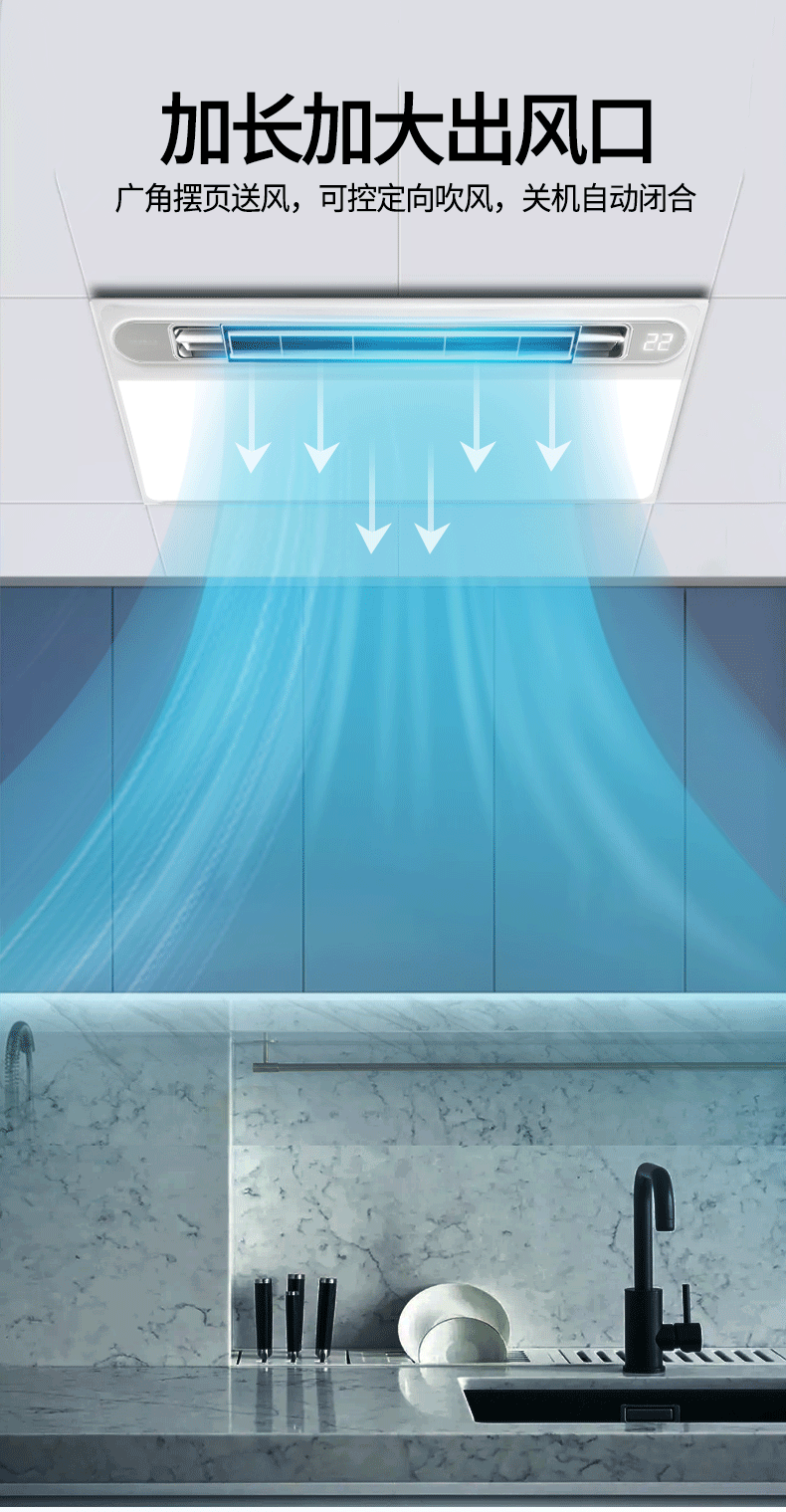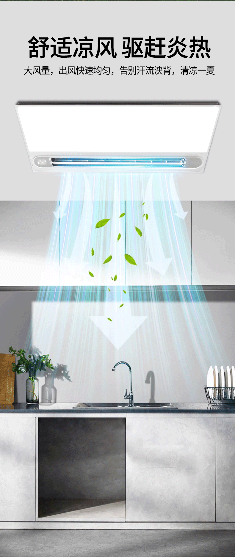Rockefeller Liangba Kitchen Special Integrated Ceiling Liangba Ceiling Embedded Cooling Fan Lighting Air Cooler Kitchen Air Conditioner Upgraded Model (Blow Dryer + Lighting + Ventilation)