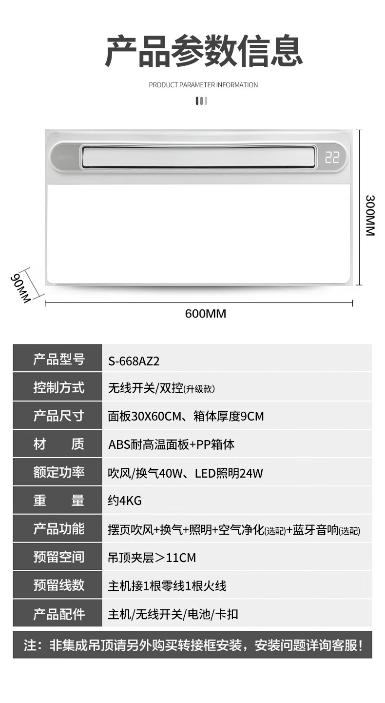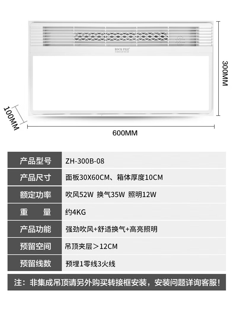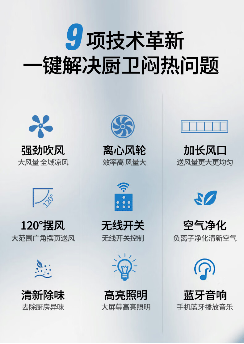 Rockefeller Liangba Kitchen Special Integrated Ceiling Liangba Ceiling Embedded Cooling Fan Lighting Air Cooler Kitchen Air Conditioner Upgraded Model (Blow Dryer + Lighting + Ventilation)