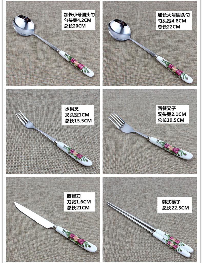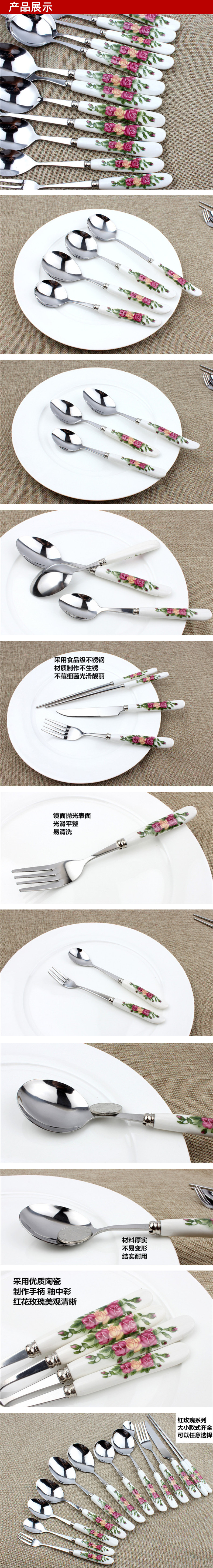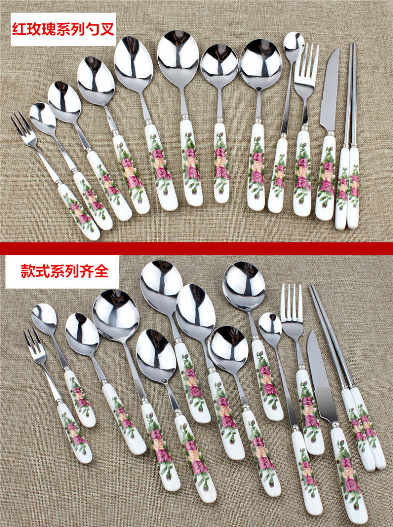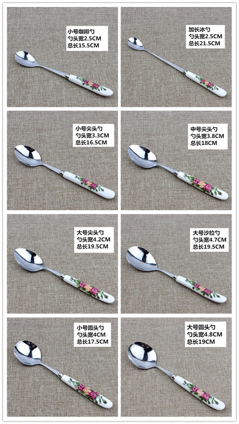 Xingyue Korean version red rose ceramic handle spoon spoon small spoon western food knife and fork fruit fork coffee small spoon long handle spoon 2 pack/red rose small coffee spoon