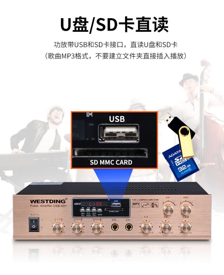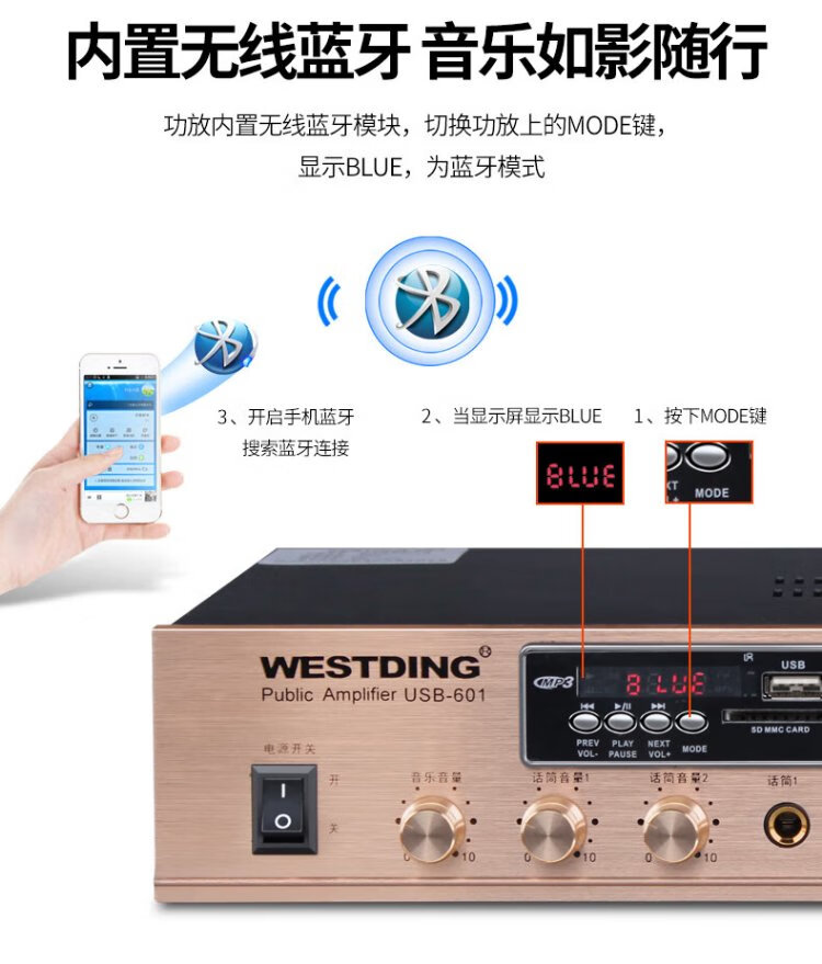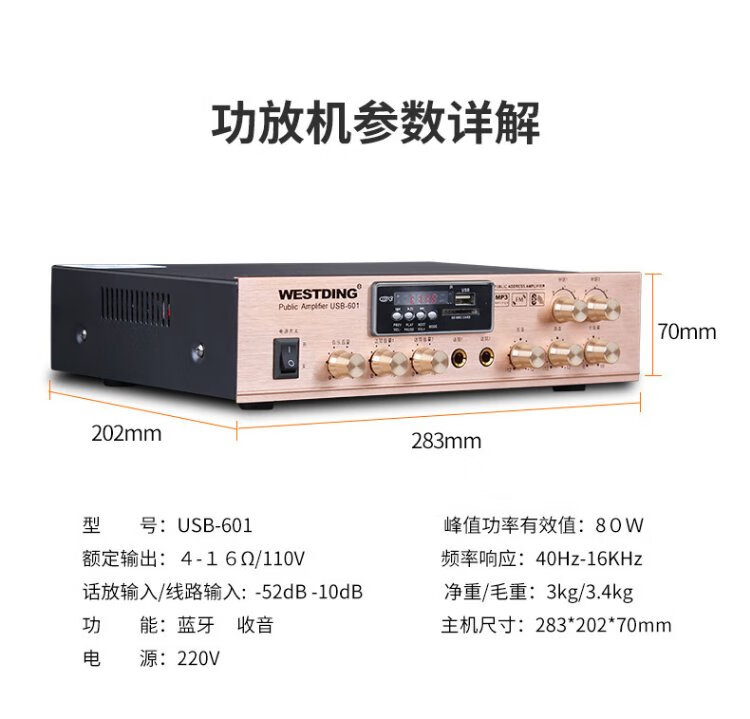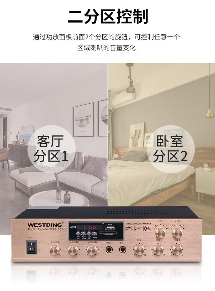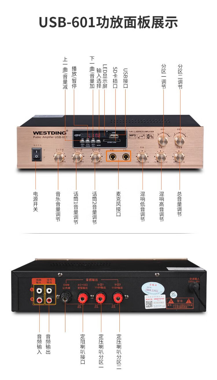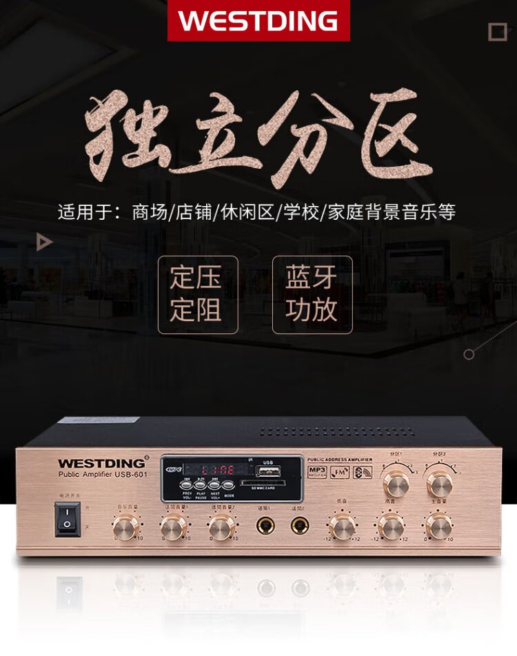 Westin constant voltage and constant resistance power amplifier, ceiling speaker, public broadcasting, Bluetooth power amplifier, background music system, 5-zone engineering power amplifier, 601 constant voltage and fixed resistance dual-purpose power amplifier