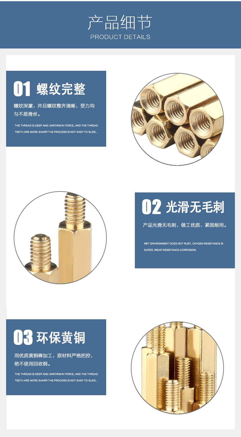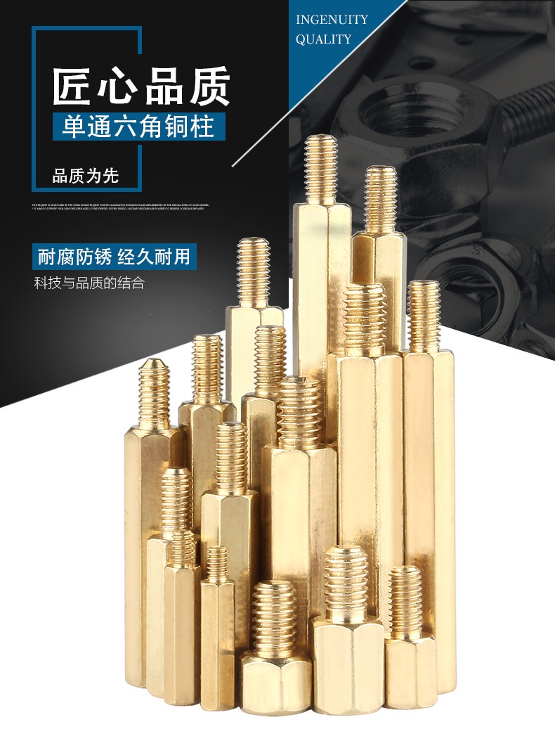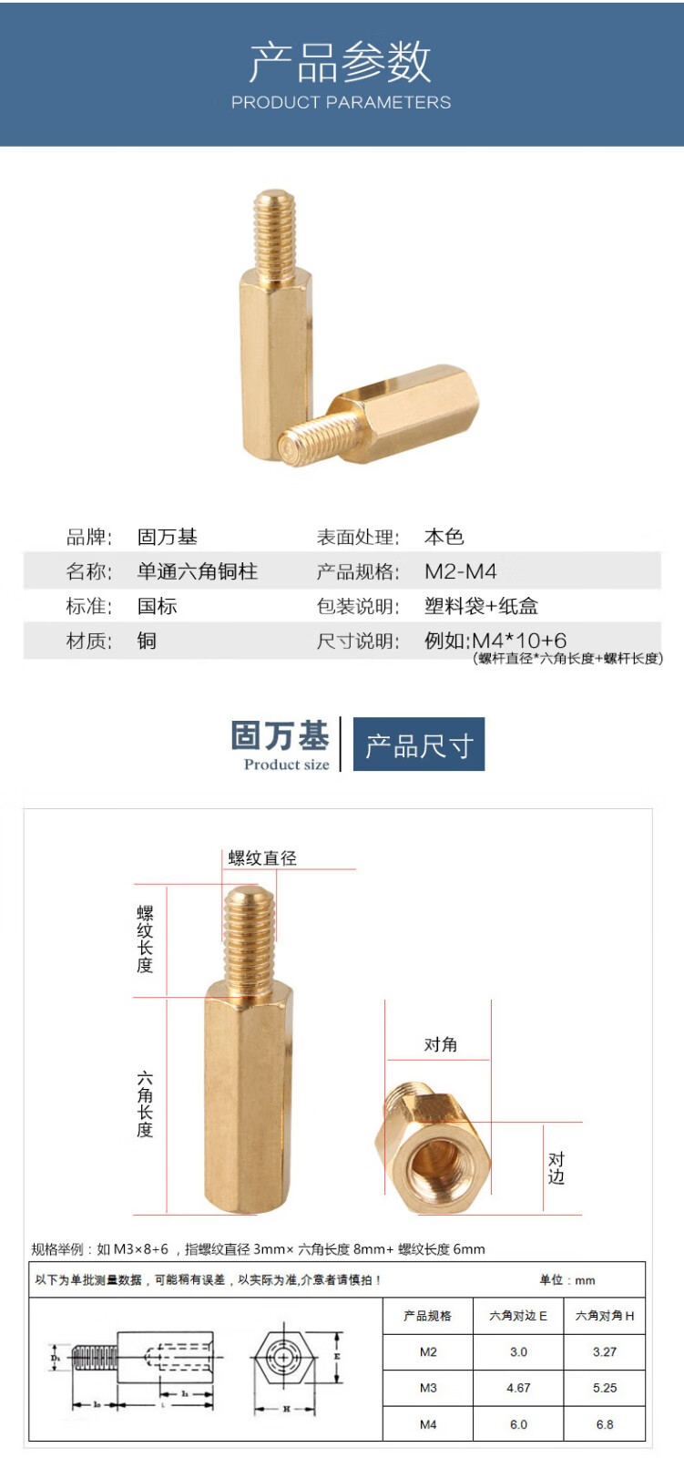 Guwanji single-pass hexagonal copper column single-head stud chassis motherboard screw isolation column circuit board wiring support column copper column M2*3.5+3 50 pieces