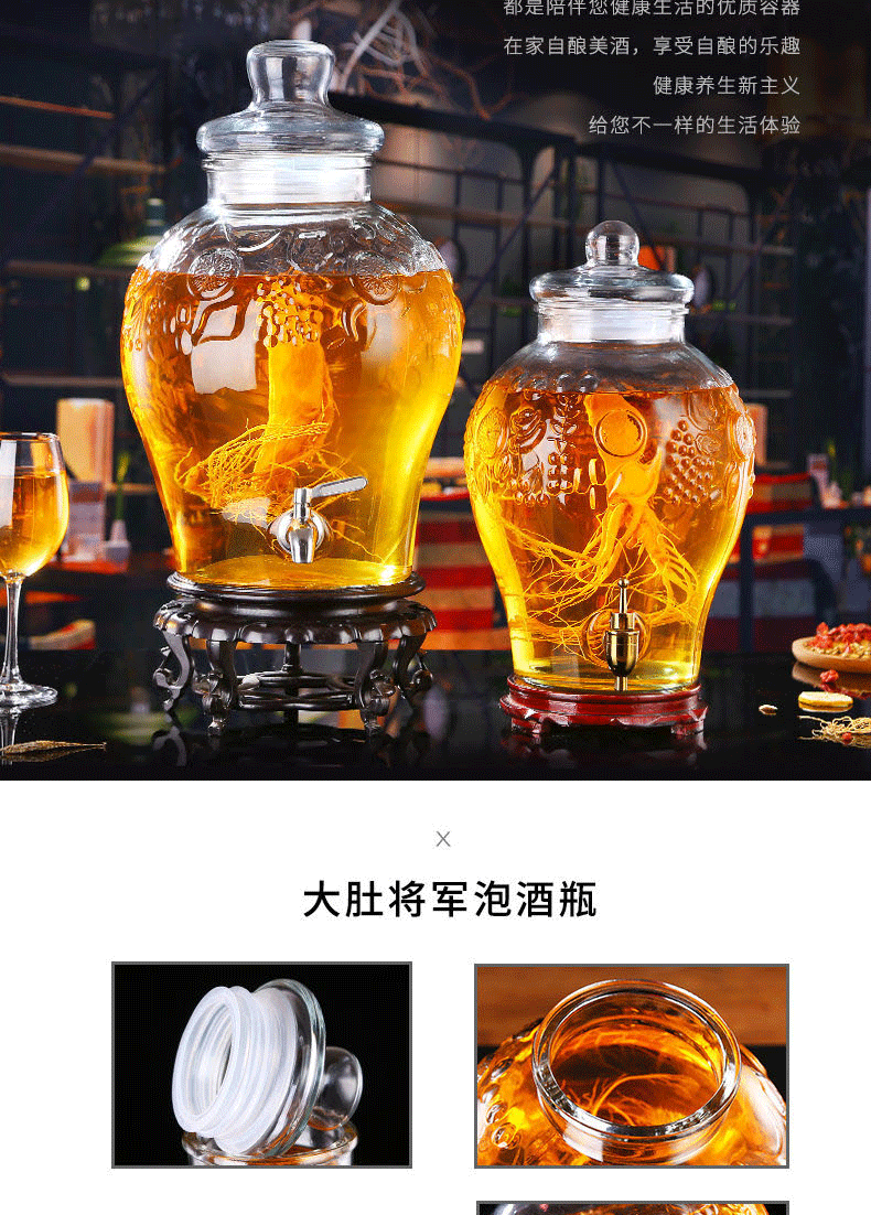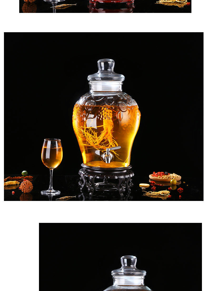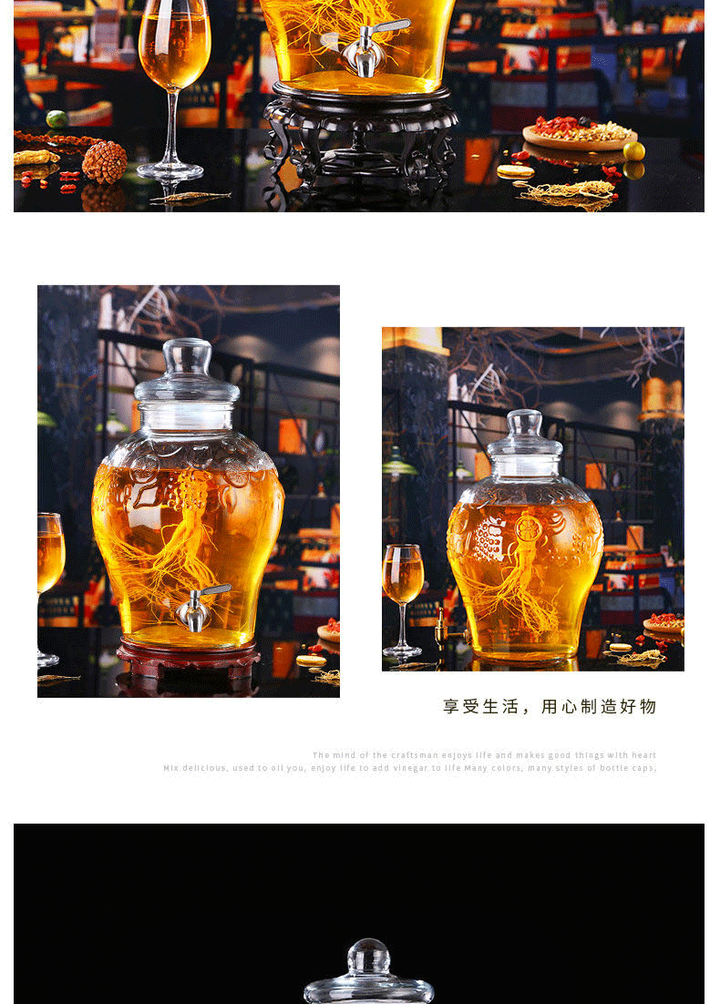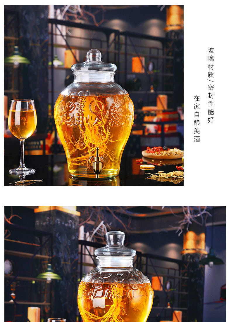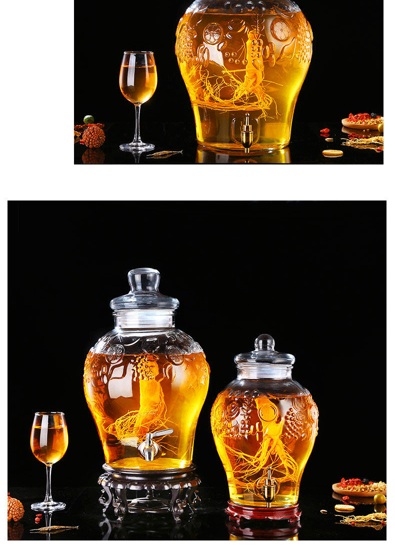 Shen Ping Eight Glass Lead-free Plus Household Wine Jar Glass Soaking Wine Bottle Faucet Soaking Wine Container Wine Jar Brewing Medicinal Wine Bottle Wine Cylinder 12 Jin General + Copper Faucet + High Base 6L
