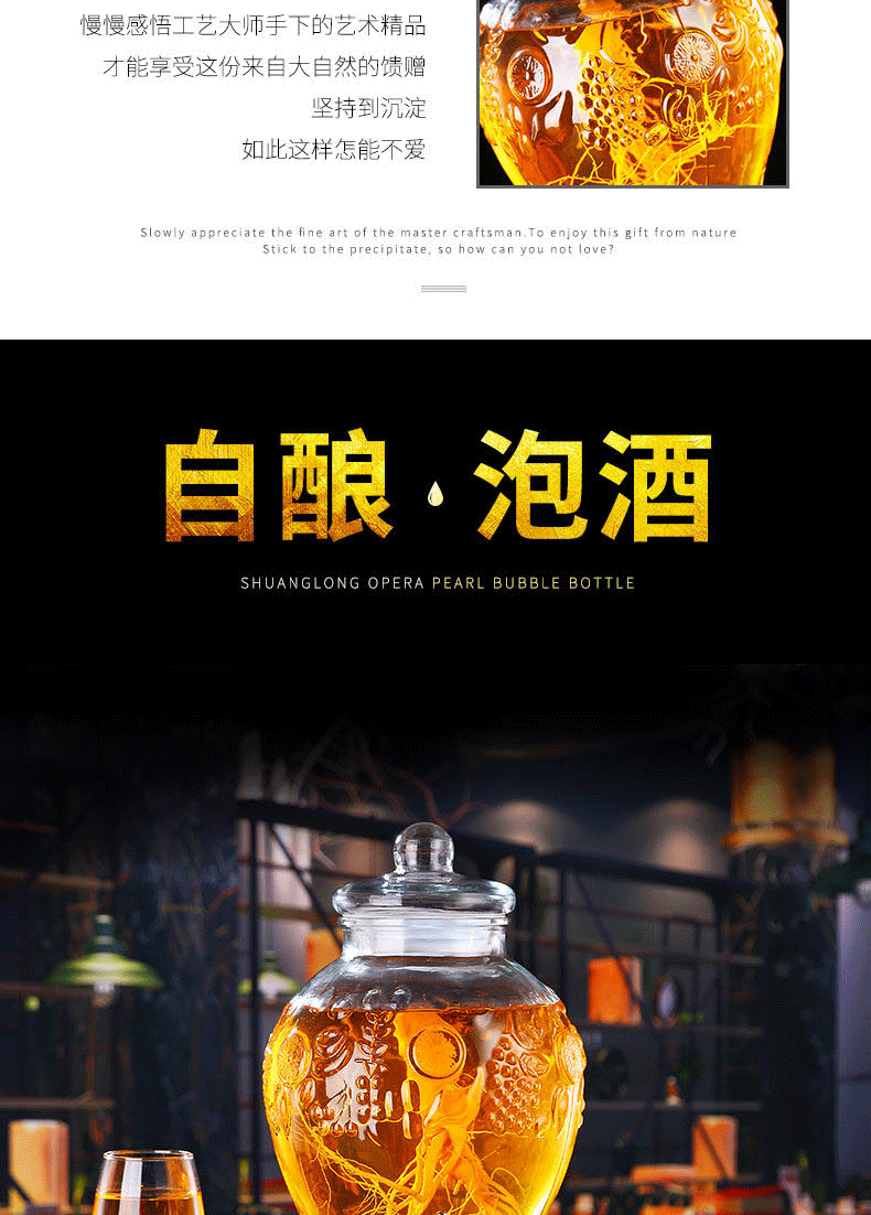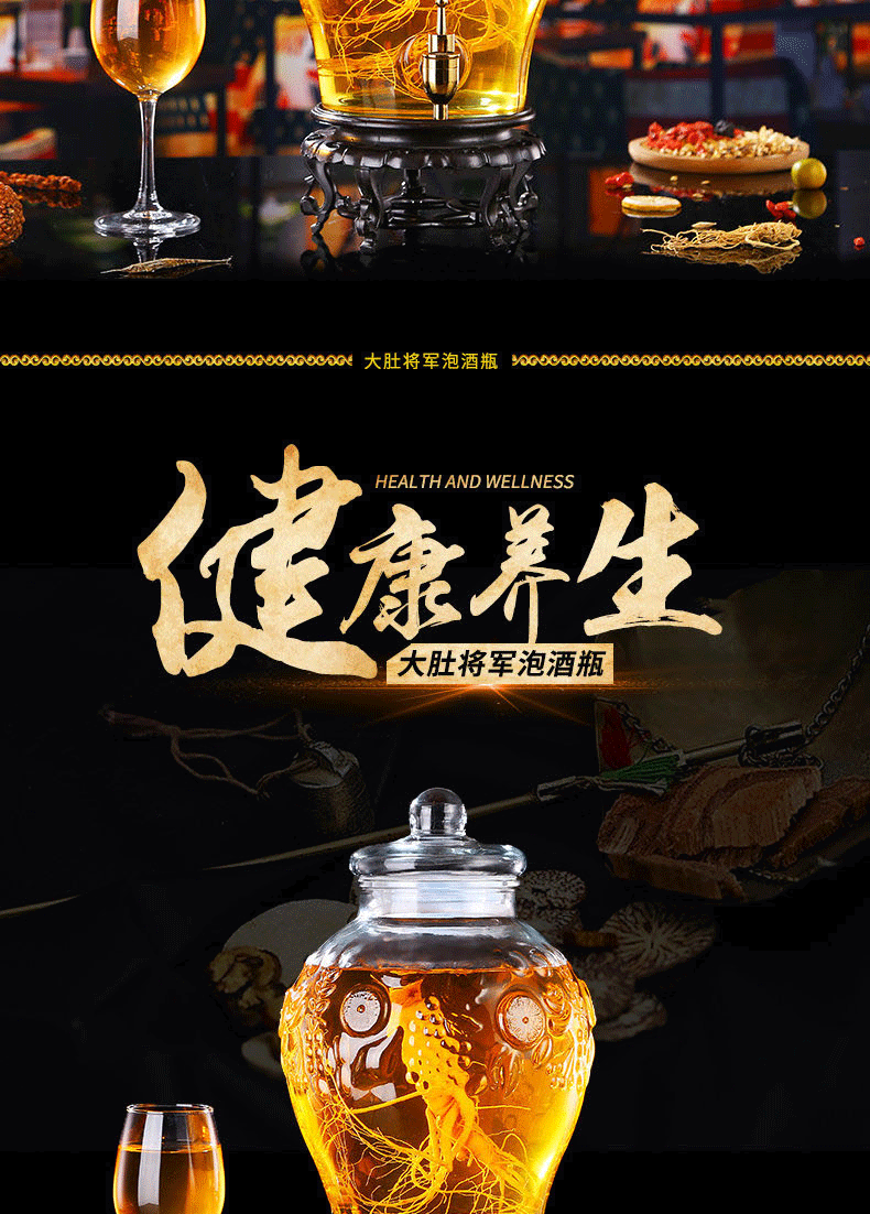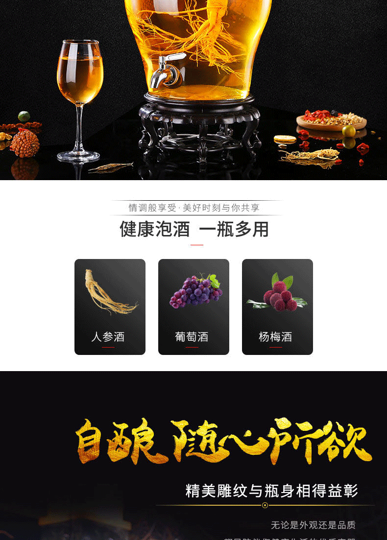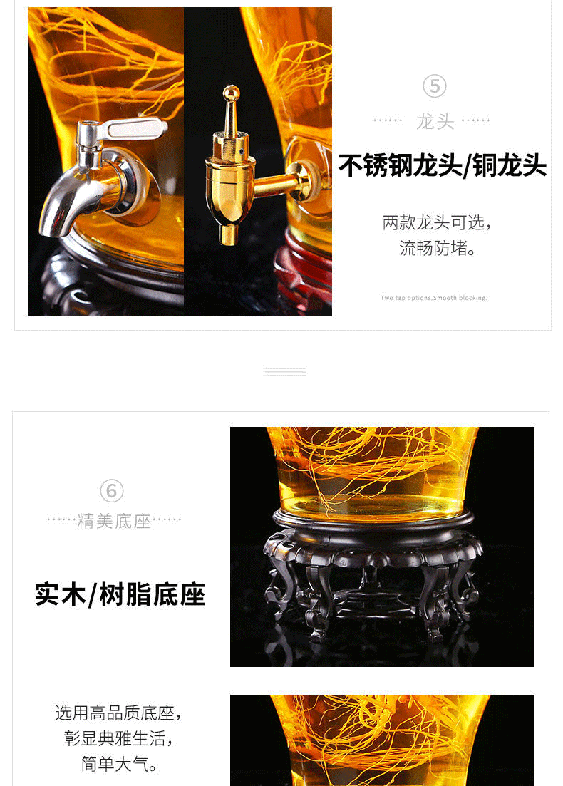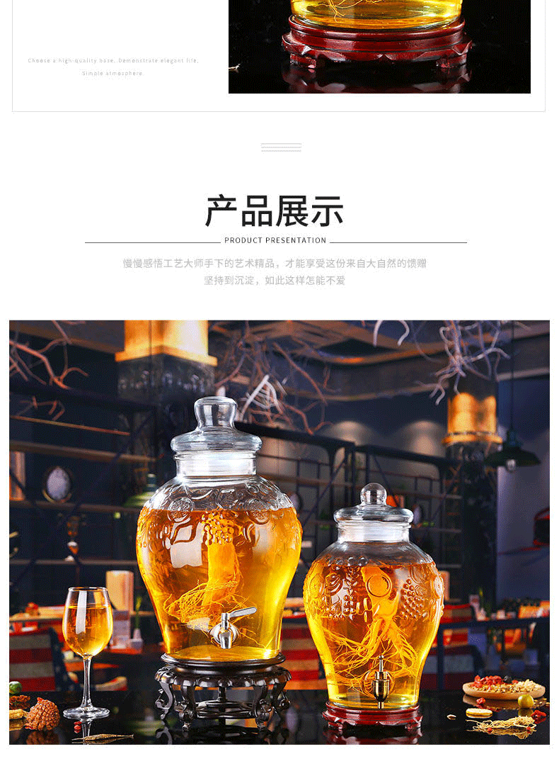 Shen Ping Eight Glass Lead-free Plus Household Wine Jar Glass Soaking Wine Bottle Faucet Soaking Wine Container Wine Jar Brewing Medicinal Wine Bottle Wine Cylinder 12 Jin General + Copper Faucet + High Base 6L
